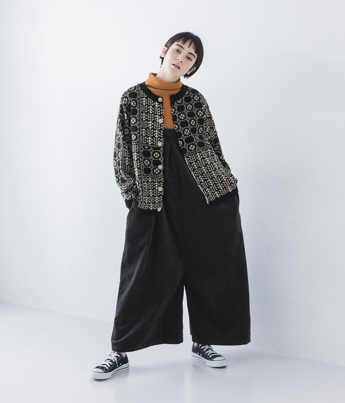 パッチワーク柄2wayカーディガンの着用コーディネート