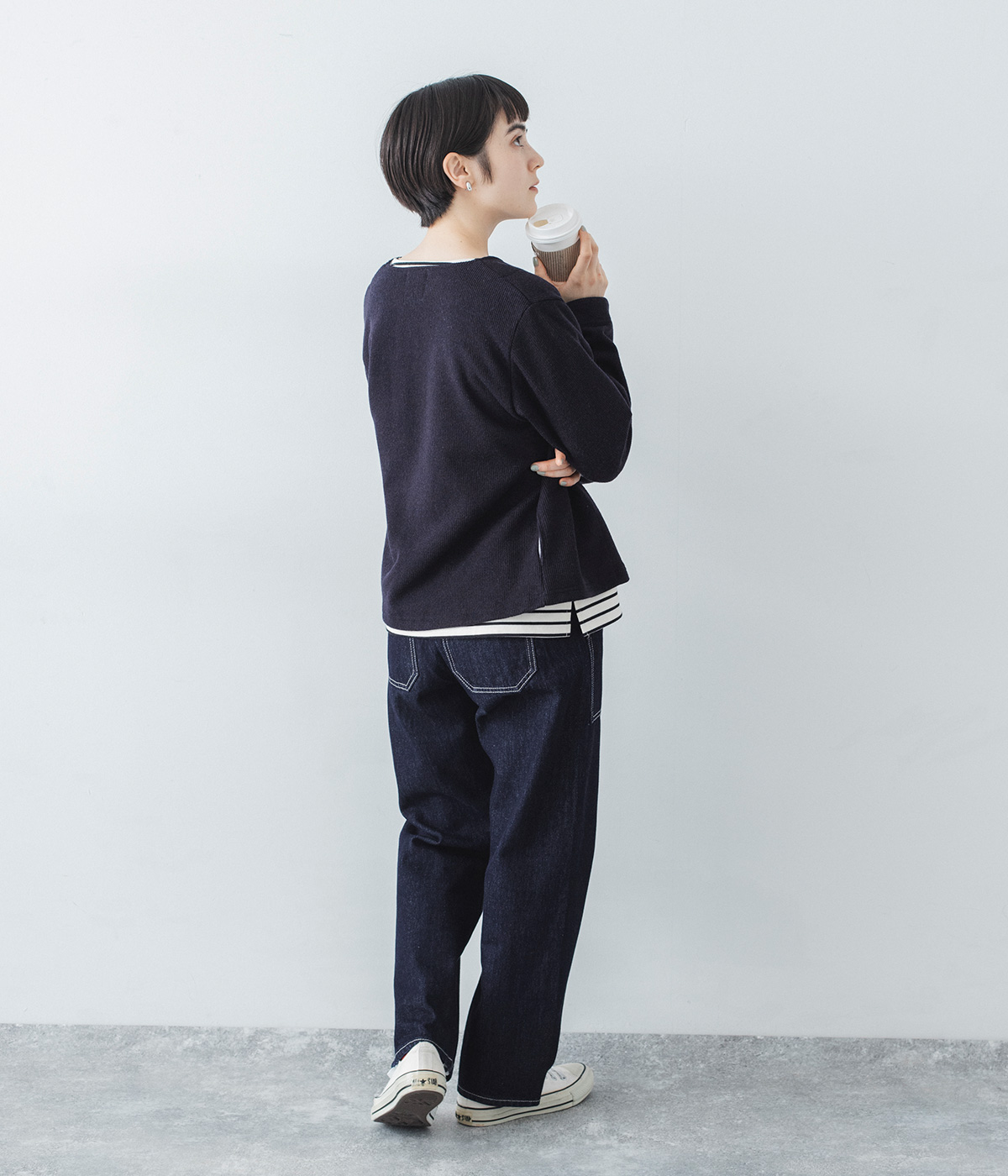 ポケットの配置や股上の深さなど、一見シンプルなようでスタイルアップ効果のある工夫が随所に散りばめられています。実際にこれを穿いていて「痩せた?」と聞かれたことのあるスタッフもいるほど、すっきり感が好評のパンツ。