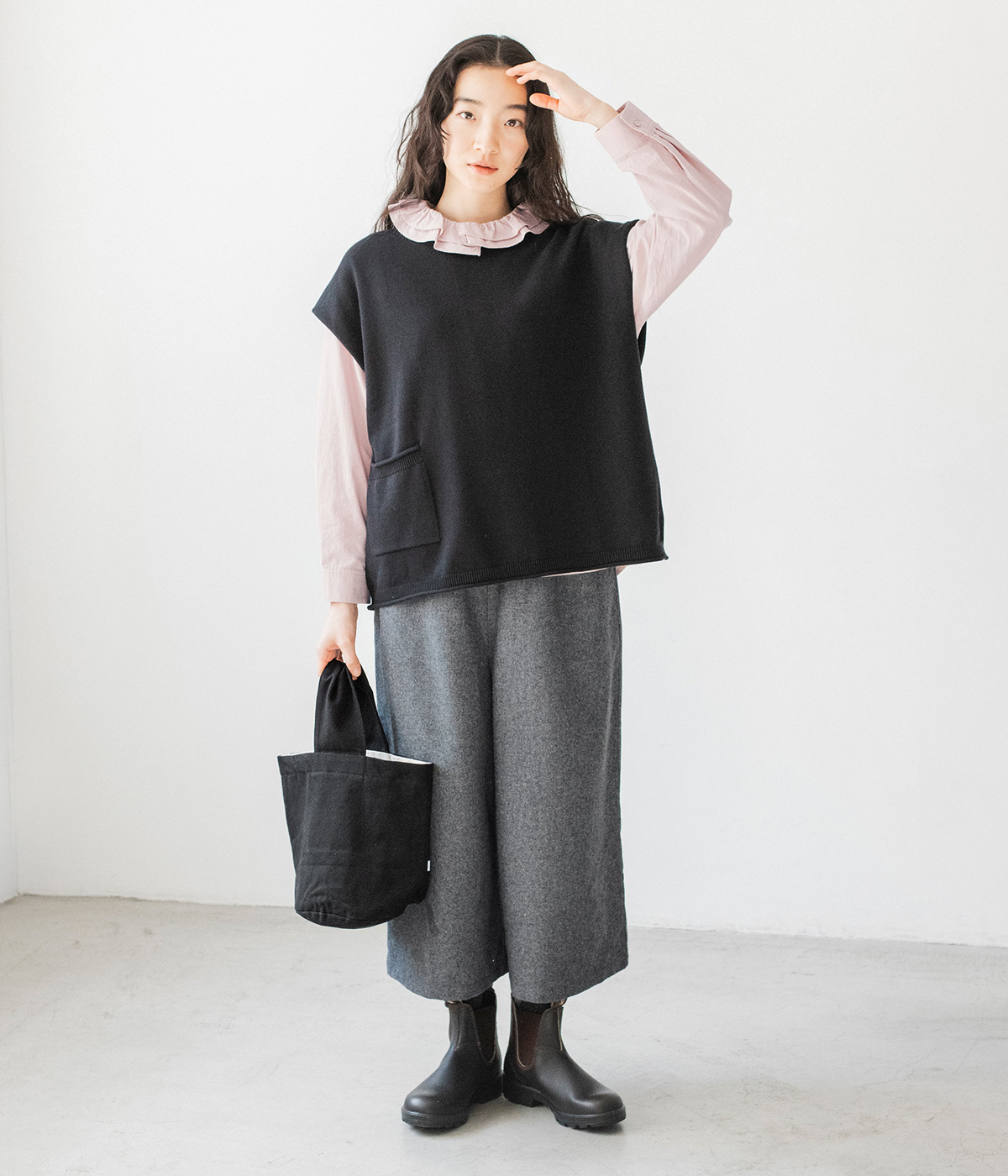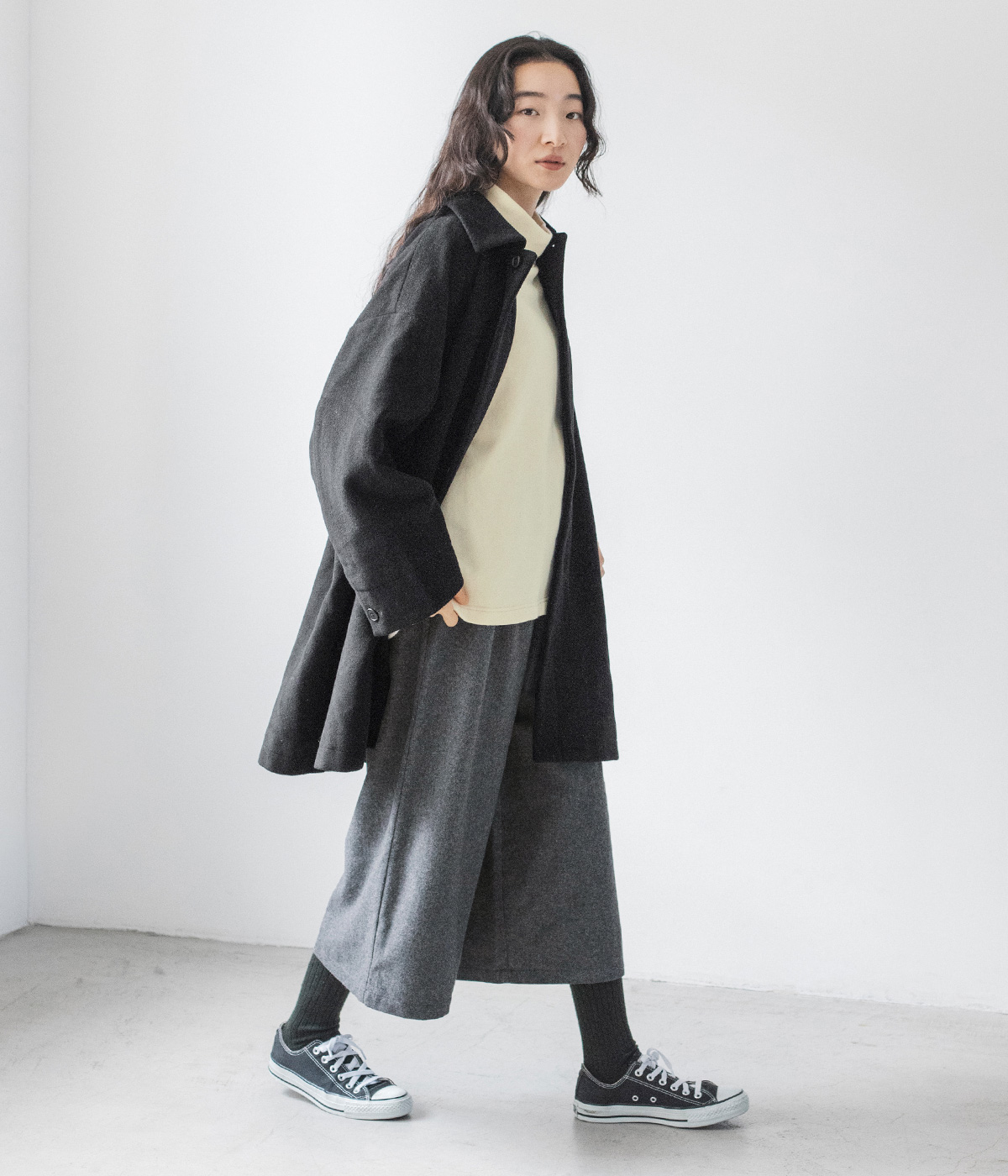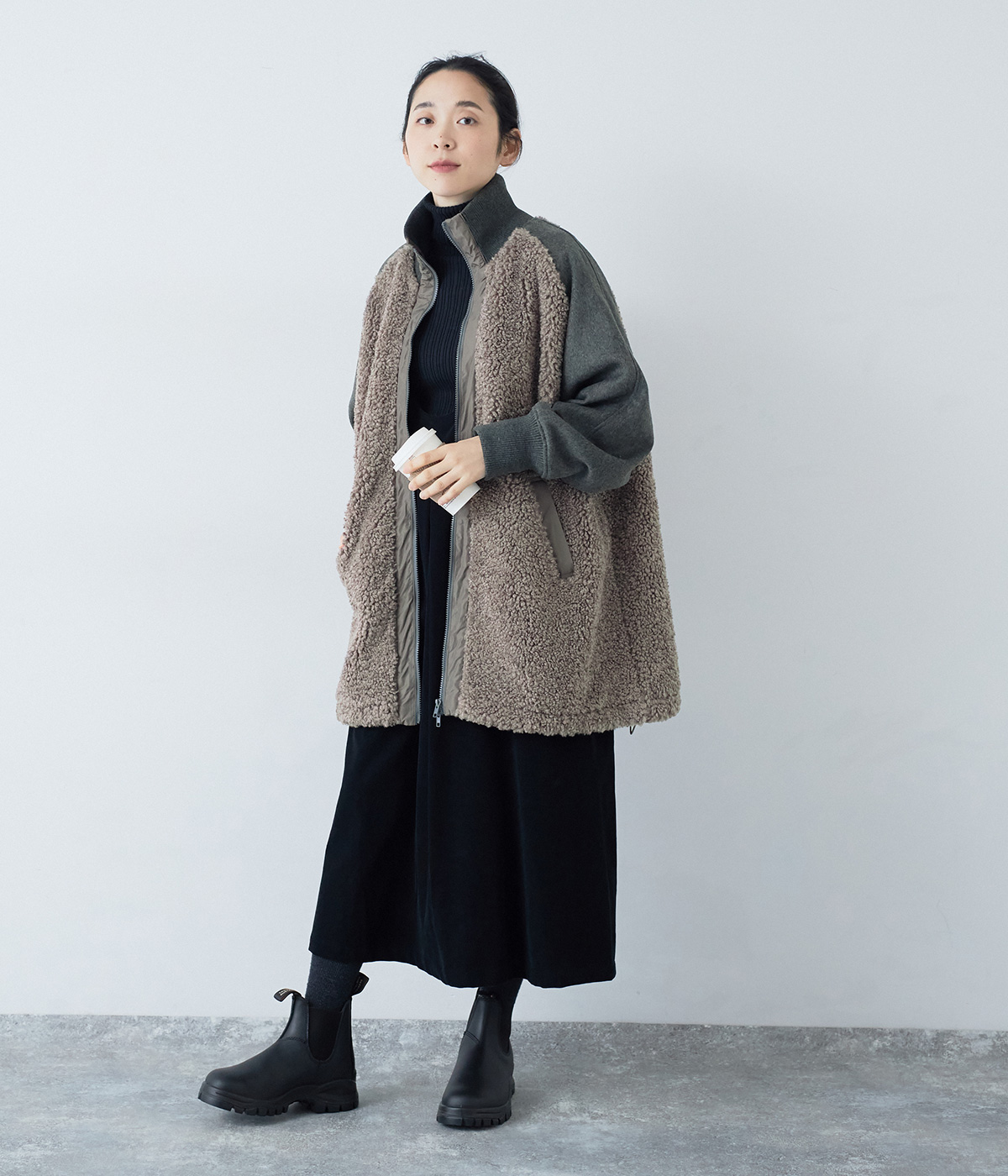 コットンリネン起毛ボリューム袖ワンピースの着用コーディネート
