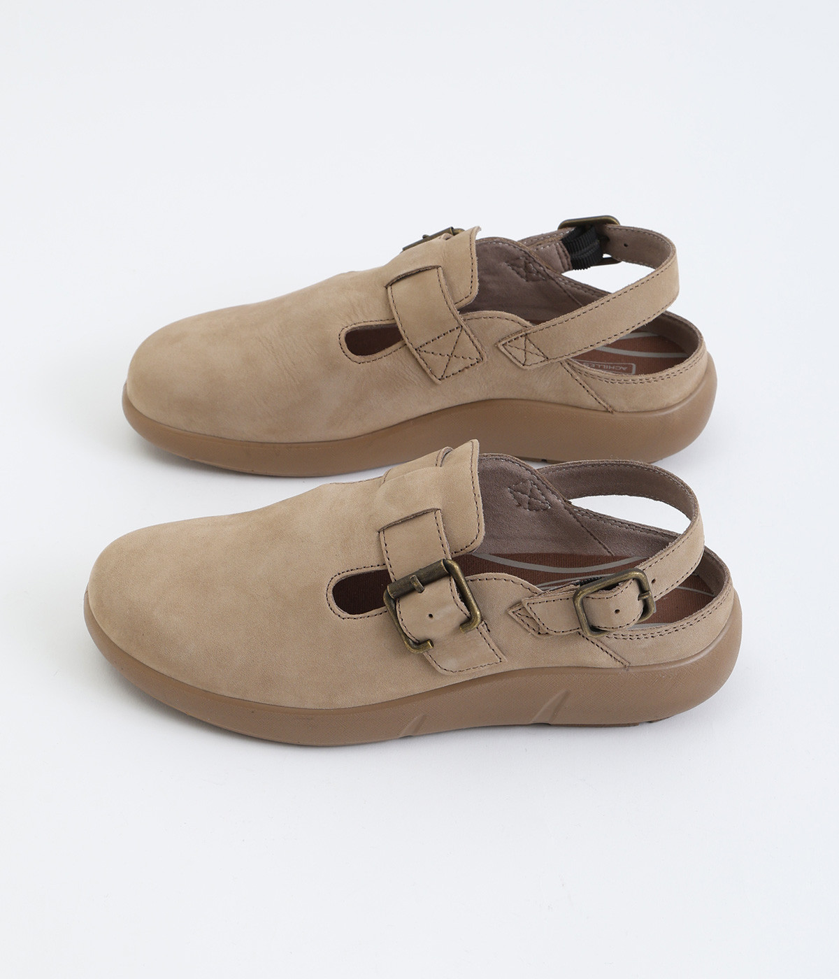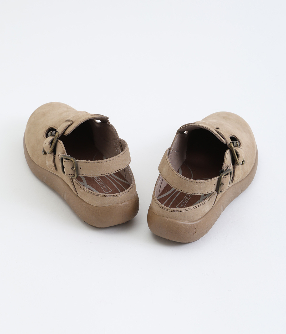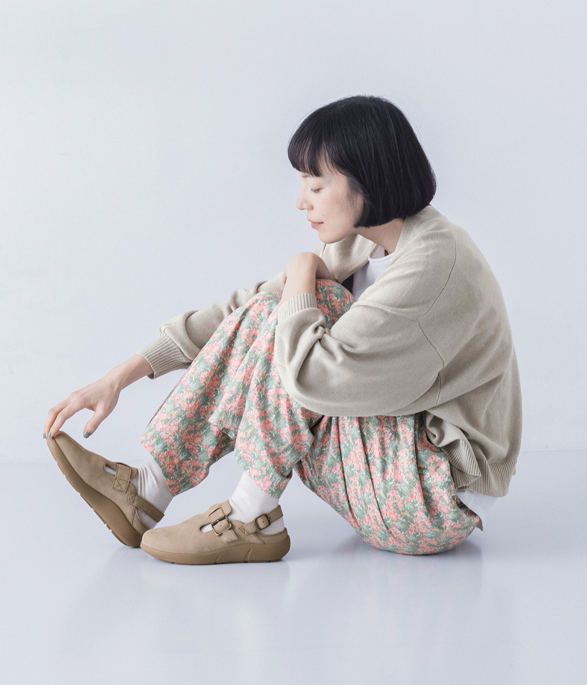 足をしっかりと覆うクロッグタイプのサンダルです。適度な丸みのあるフォルムが可愛らしく特徴的。足の形に沿ったアナトミー設計は足裏のアーチをサポートする形状になっていて、足の負担が軽くなるよう考慮されています。