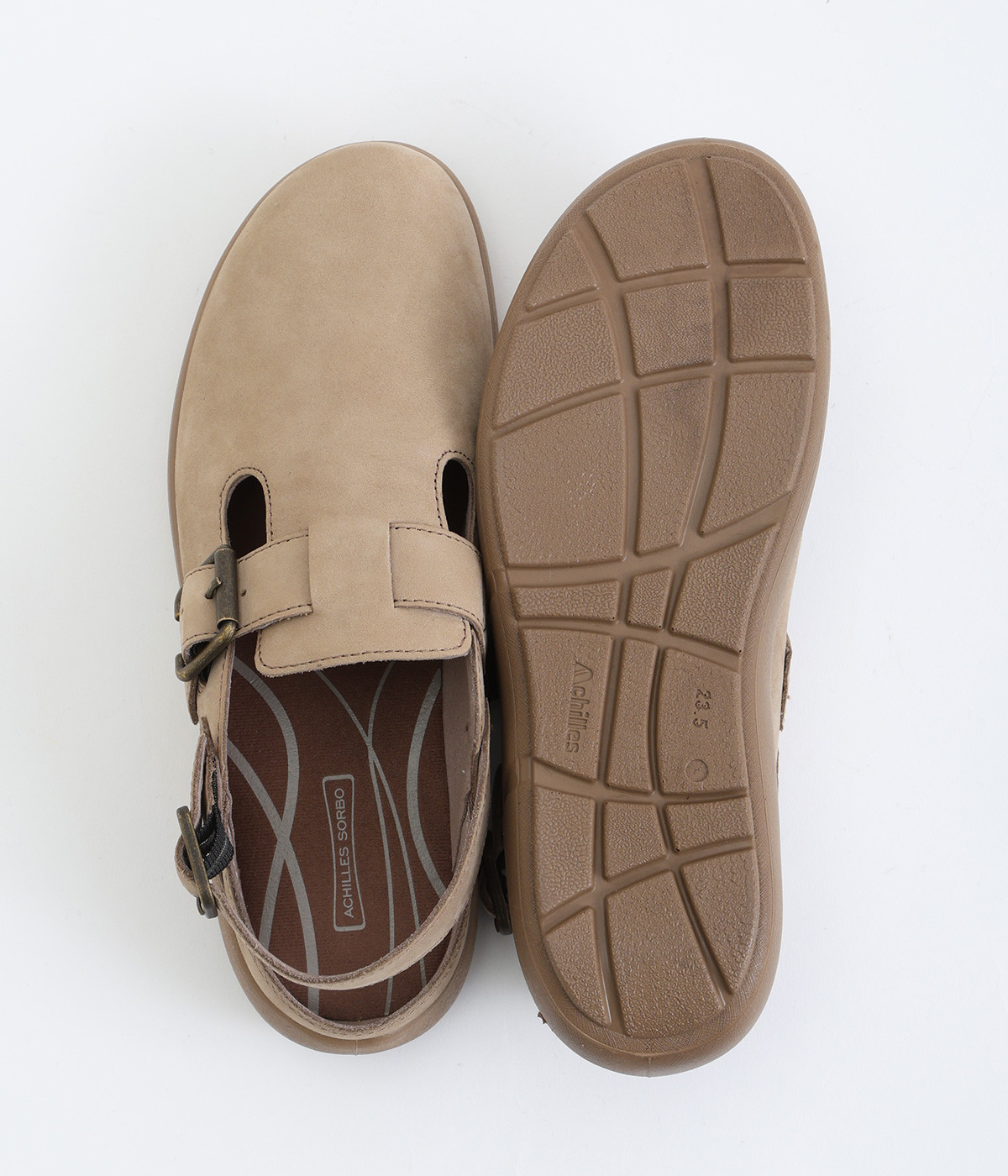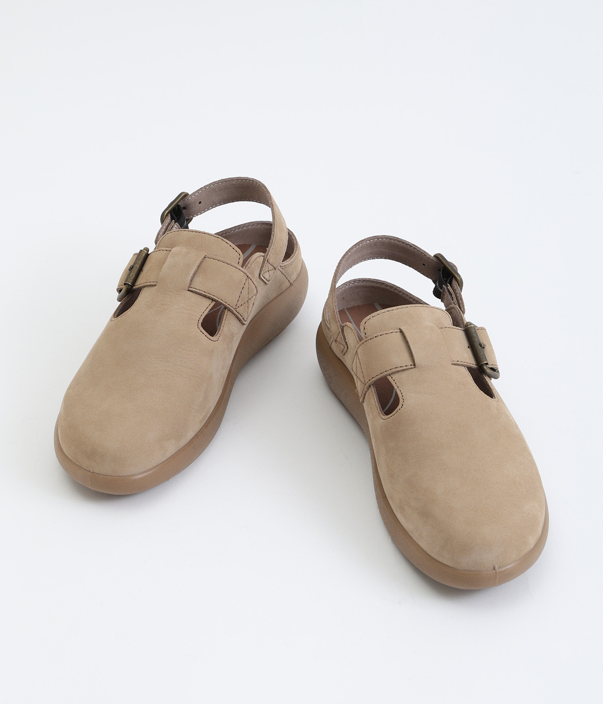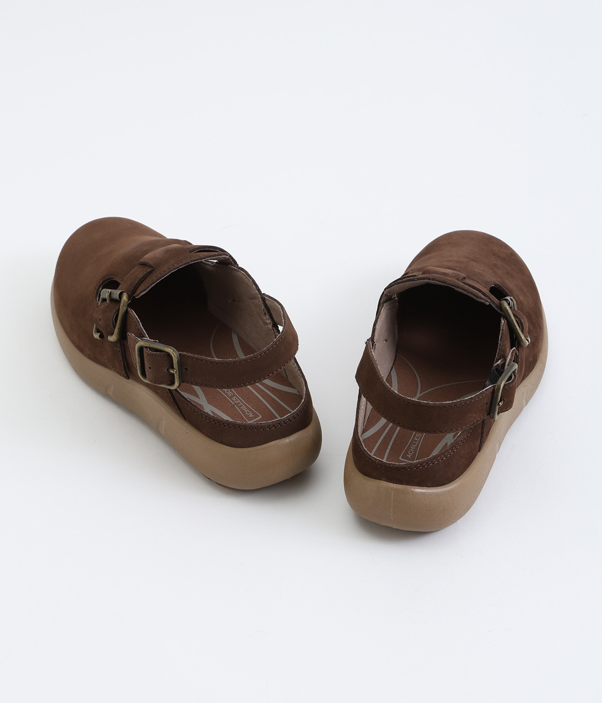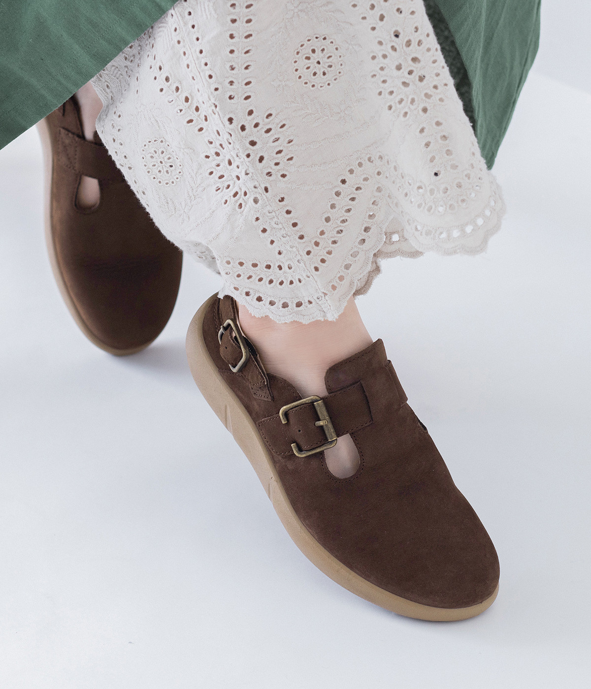 足をしっかりと覆うクロッグタイプのサンダルです。適度な丸みのあるフォルムが可愛らしく特徴的。足の形に沿ったアナトミー設計は足裏のアーチをサポートする形状になっていて、足の負担が軽くなるよう考慮されています。