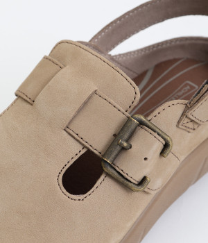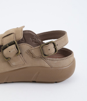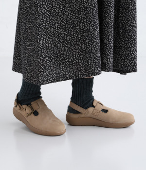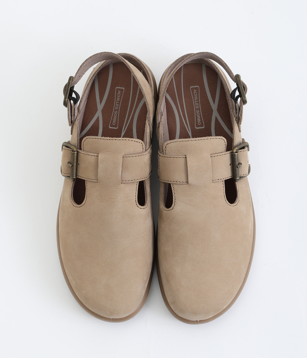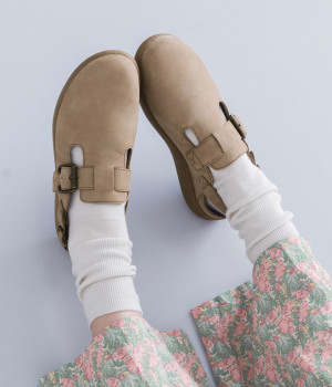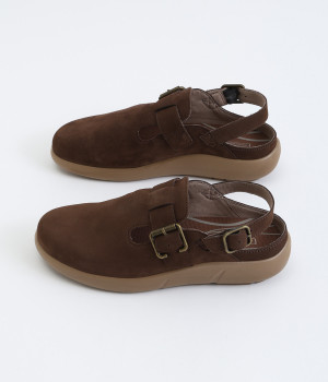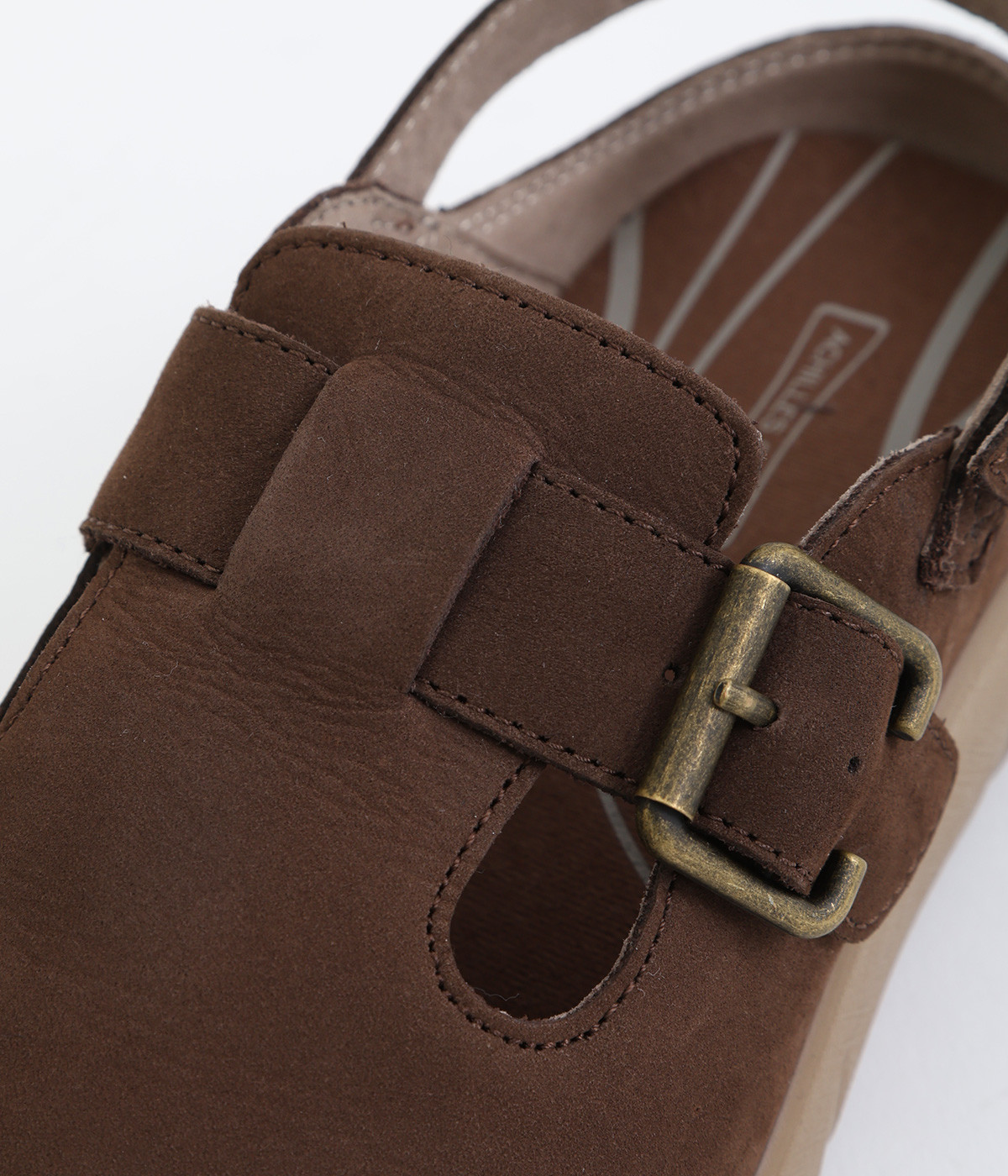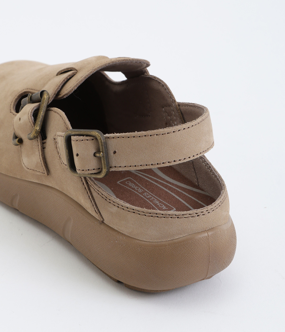 足をしっかりと覆うクロッグタイプのサンダルです。適度な丸みのあるフォルムが可愛らしく特徴的。足の形に沿ったアナトミー設計は足裏のアーチをサポートする形状になっていて、足の負担が軽くなるよう考慮されています。