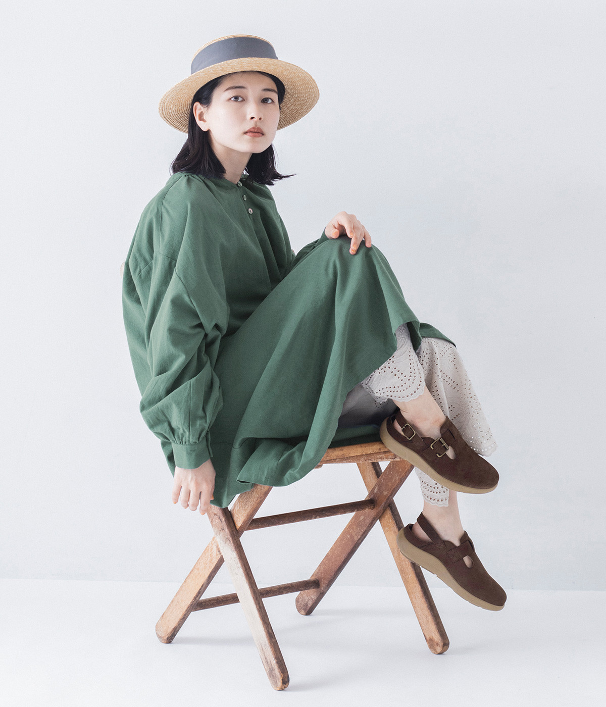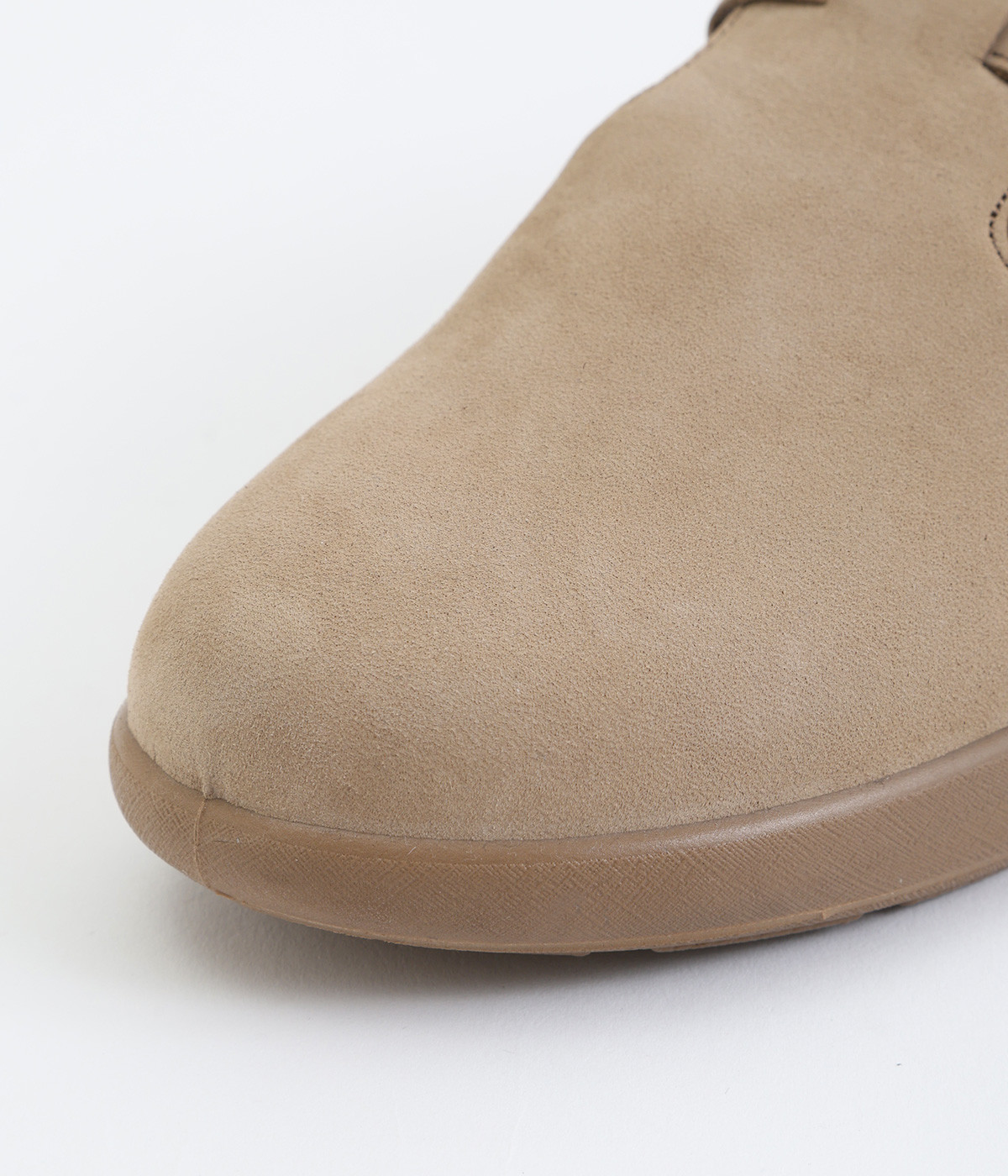 表面が起毛したふわっとした手触りのヌバック革で、あたたかみのある風合いに。手触りはやさしく、快適なはき心地へと導きます。カジュアルさの中に高級感も感じられるので大人のデイリースタイルにぴったり。
