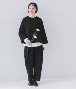 タックワイドテーパードパンツ(ブラック-ONESIZE)