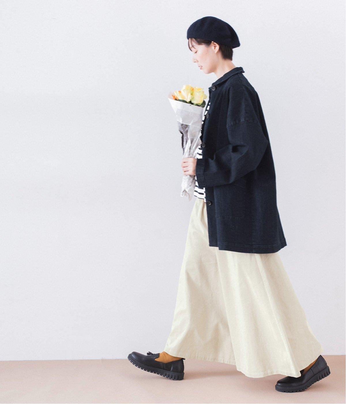 用尺たっぷりのパンツですが、やわらかな生地で軽い穿き心地。ボリュームが出すぎないのも魅力です。