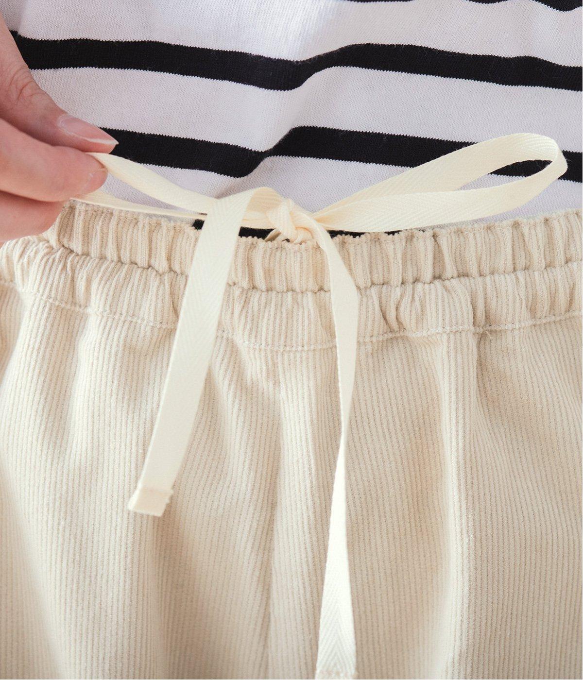 締め付け感が出ないように、ウエストはゆったり上下二段のゴム仕様。