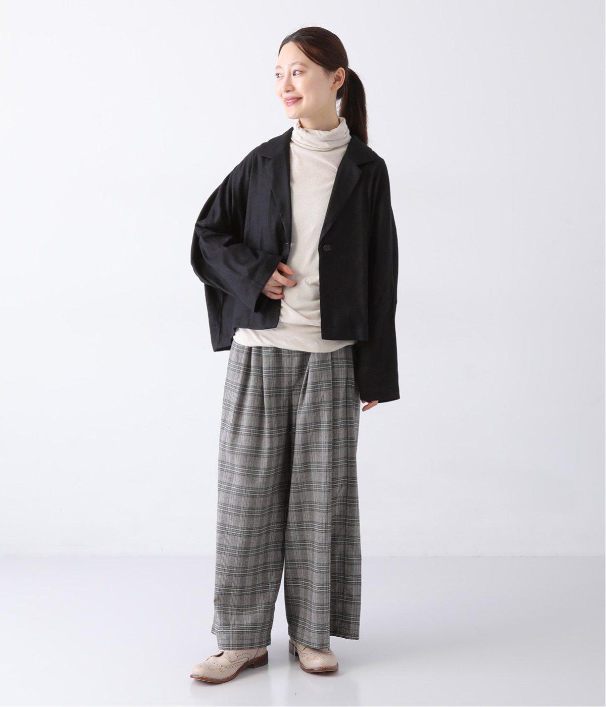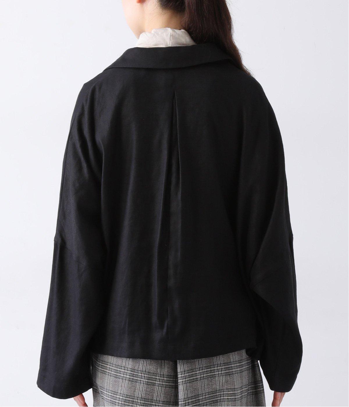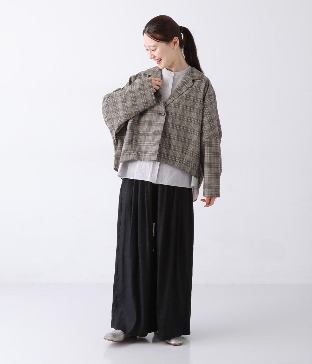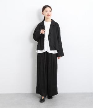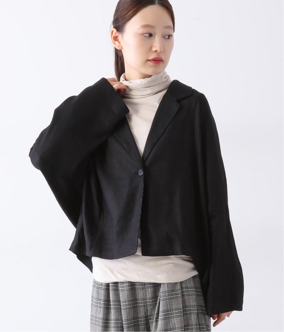 ジャケットはワイドなボトムスとも好相性な、抜け感のある前後差のついたデザイン。背中に入れたタックが、バックスタイルに立体感を添え、後ろ姿まで美しく見せてくれます。