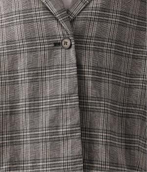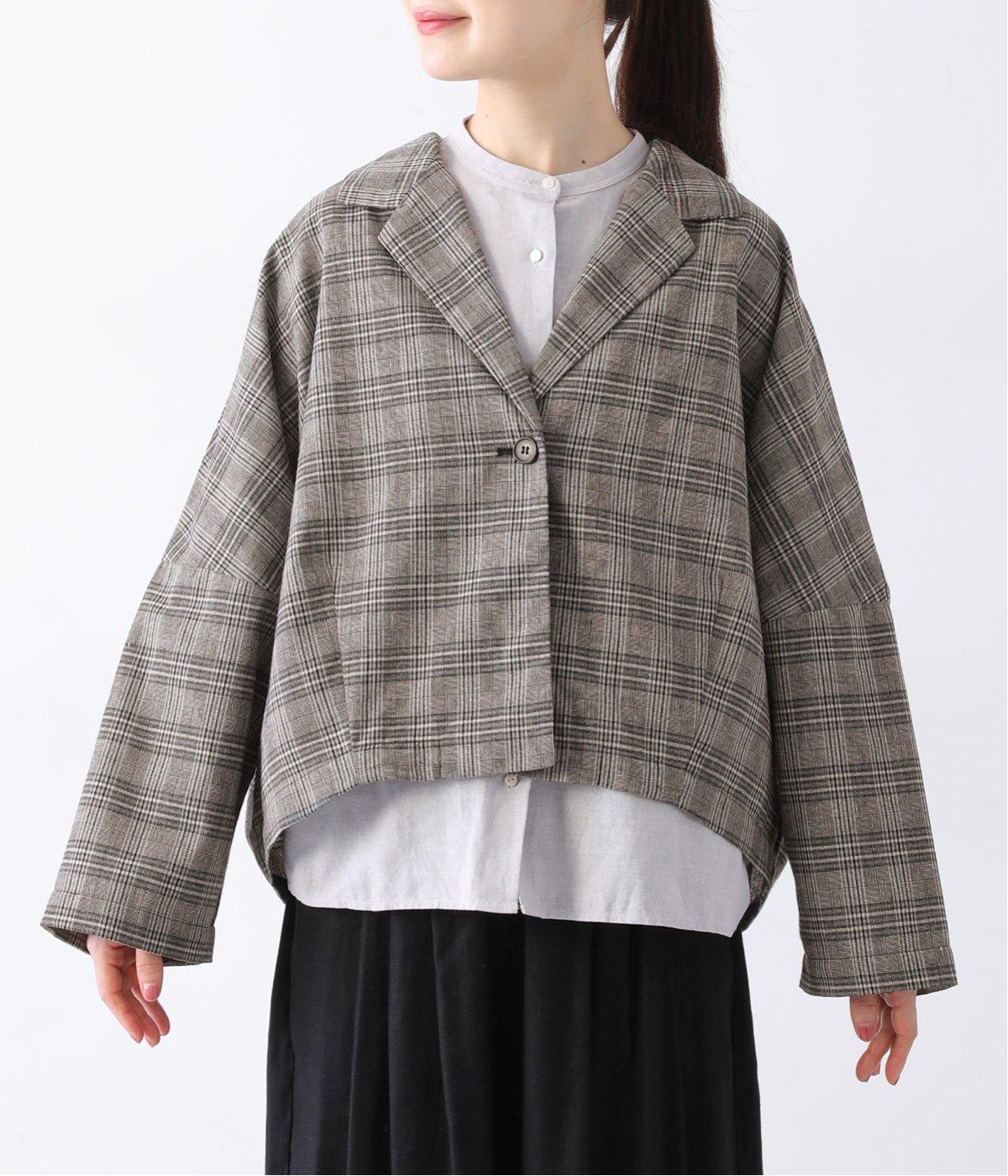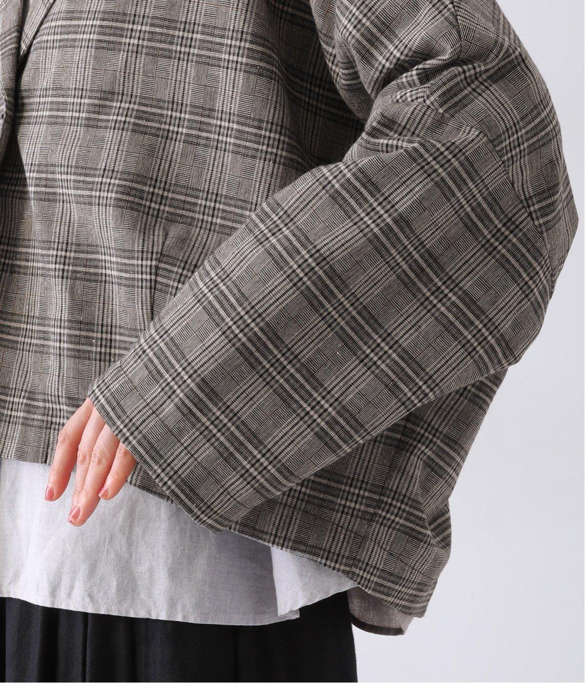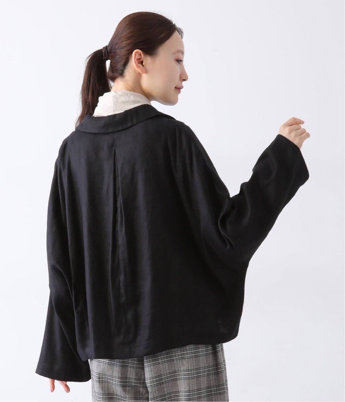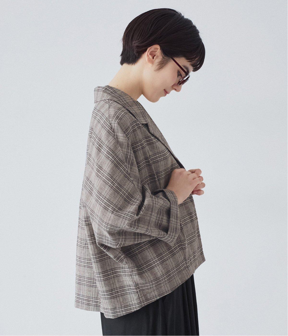 ジャケットはワイドなボトムスとも好相性な、抜け感のある前後差のついたデザイン。背中に入れたタックが、バックスタイルに立体感を添え、後ろ姿まで美しく見せてくれます。