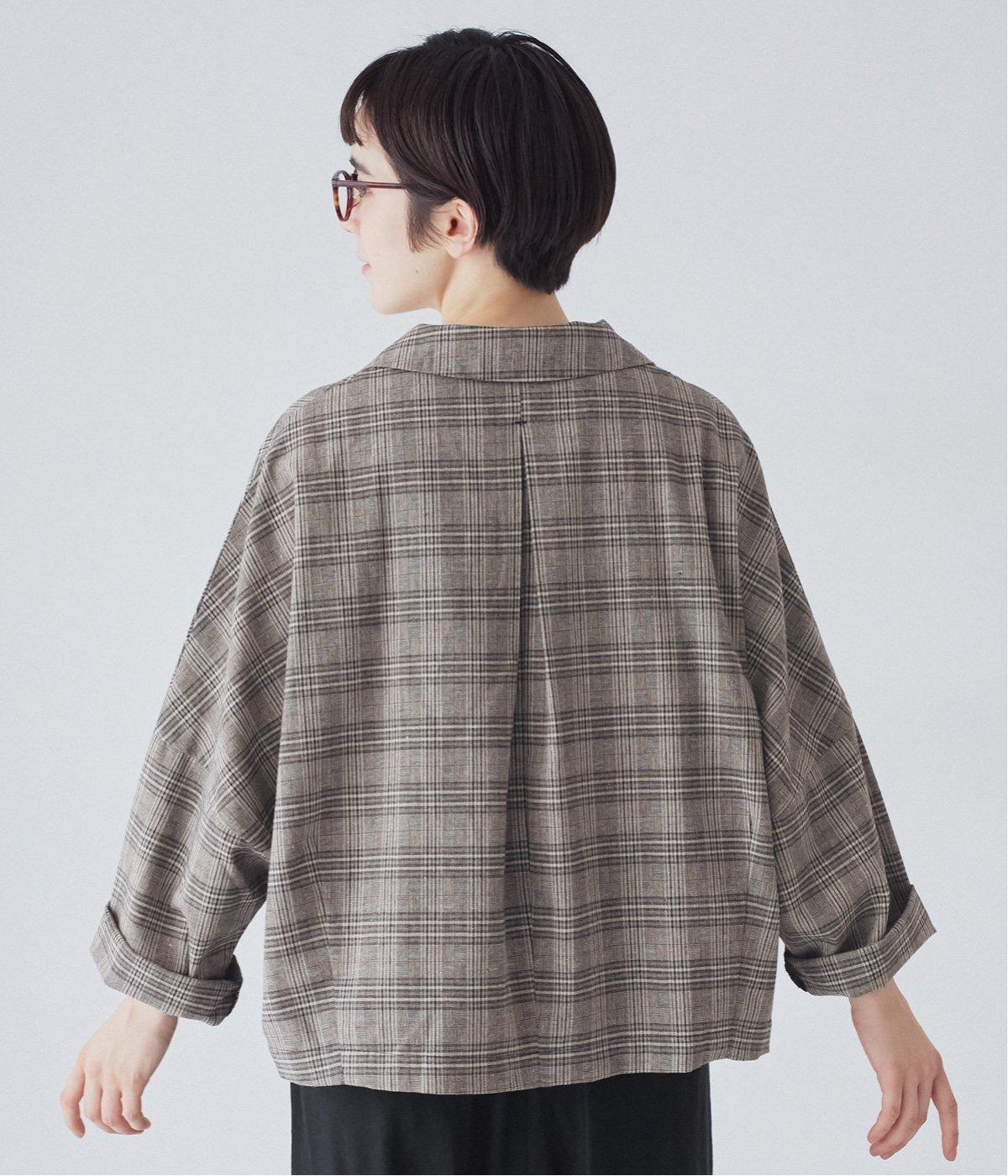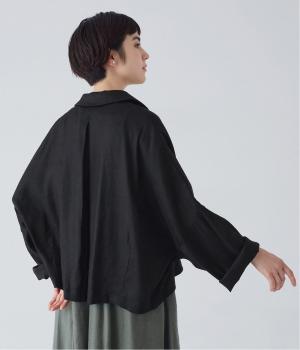 >のパンツを合わせた、おしゃれなセットアップスタイル。どちらのカラーもリネン素材を使用しているため、着こなしに統一感が生まれます。