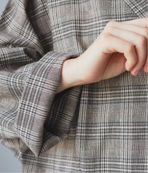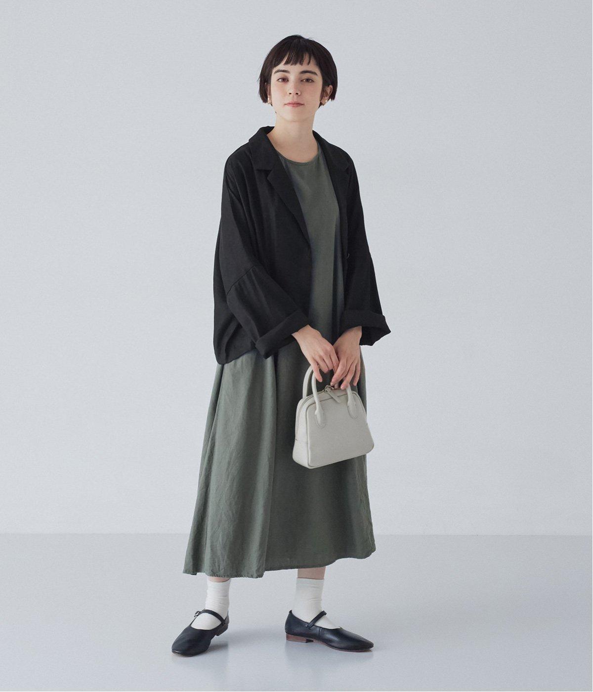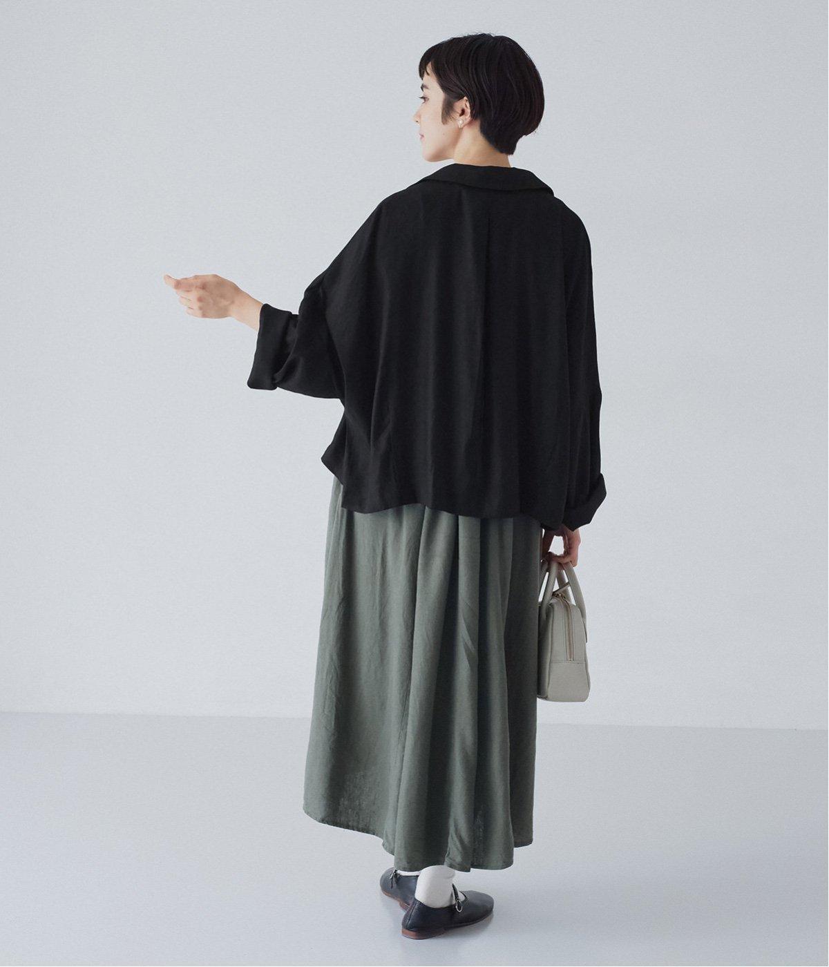 >はリネンレーヨン混の生地で、なめらかな肌ざわりとほどよい光沢感が魅力的。