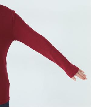 ワンピースのインナーとして合わせ、さりげなく色を効かせた上級スタイル。ほどよい厚みの生地で重ねてももたつかず、きれいなフォルムで着られます。