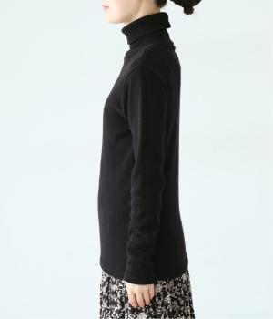 天然素材の綿麻で仕立てたタートルネック。適度な通気性と吸湿性を備え、ちくちく感のないやわらかな肌触り。静電気も起こりにくく、毎日手に取りたくなる一枚です。