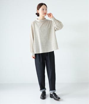 ゆったりとした身幅ながらも、しなやかな生地から生まれる落ち感で、すっきりと着こなせます。リラックスした着心地と、品のいいルックスを両立。