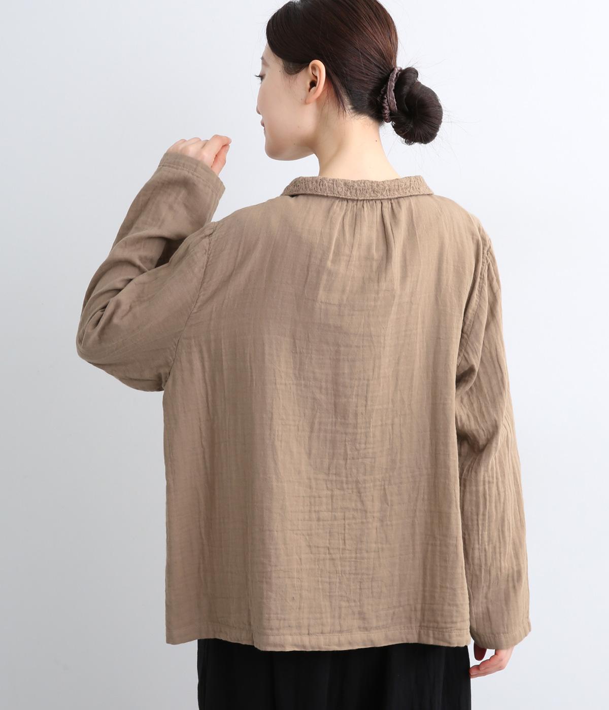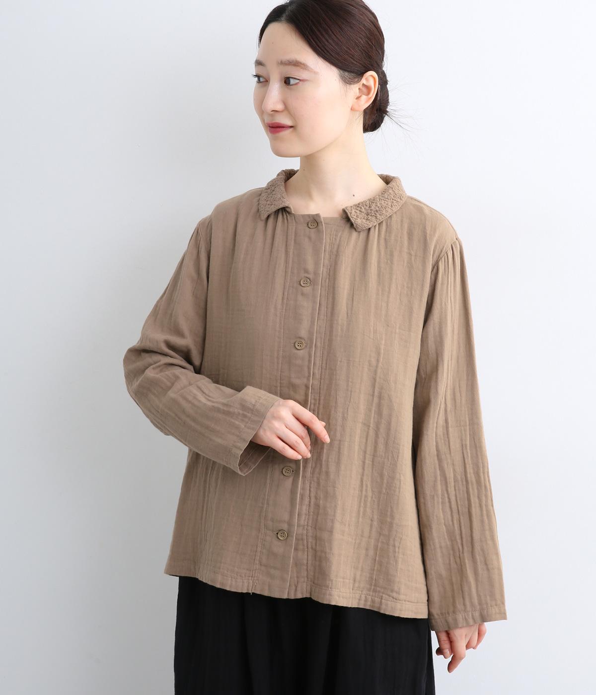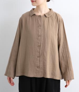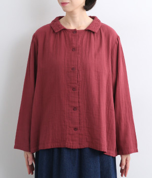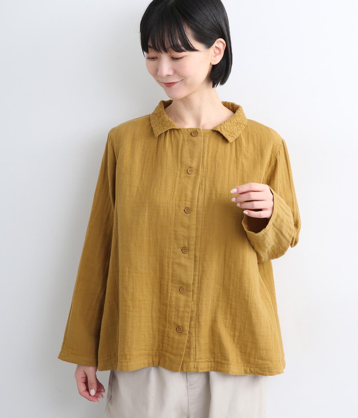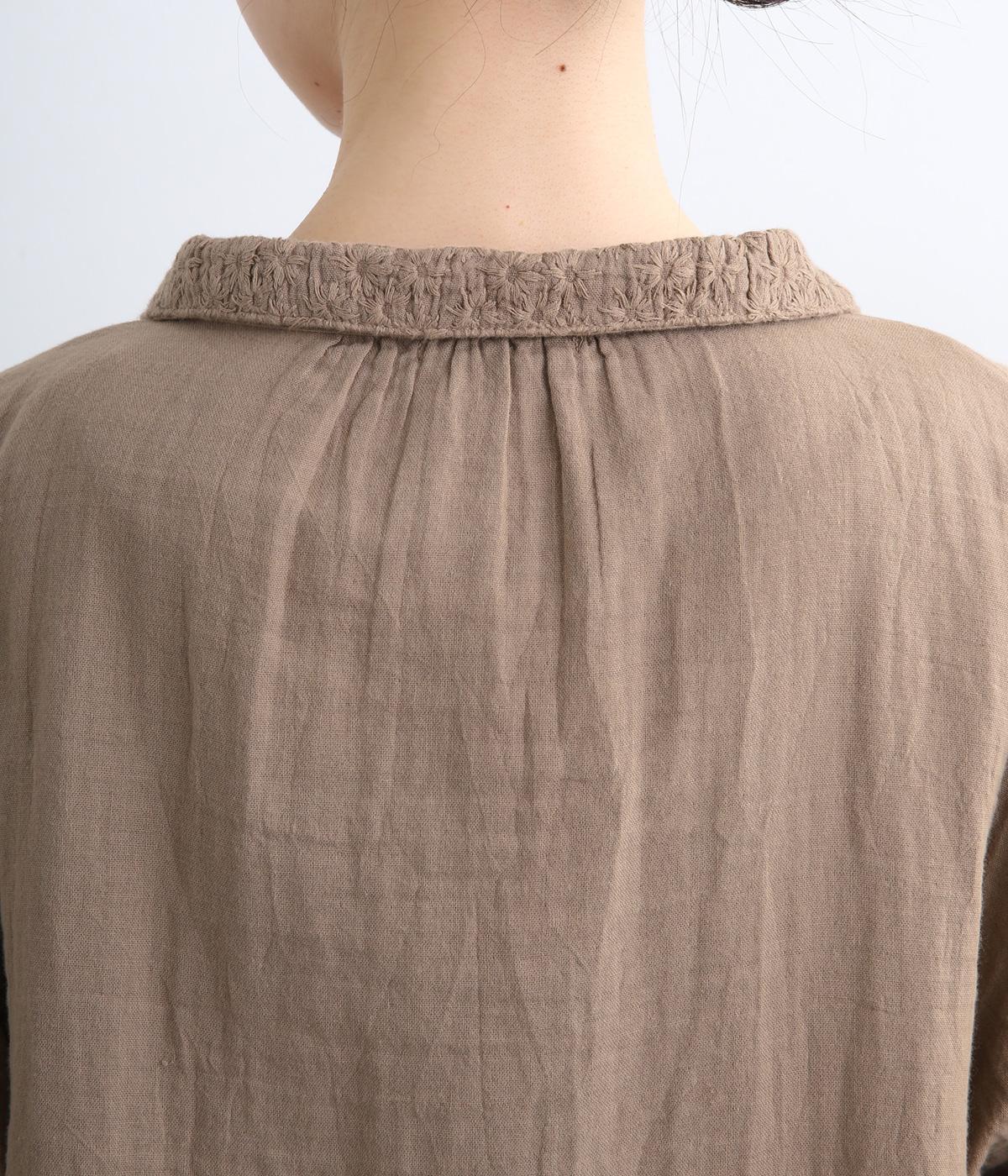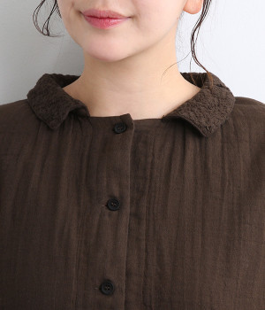 ガーゼのやさしい雰囲気にマッチした襟刺しゅうデザインが特徴的なブラウス。大人ガーリーな雰囲気に仕上がっていて、カジュアルなアイテム合わせもナチュラルにまとめてくれます。ボタンあき仕様なのであたたかな季節は羽織り使いもおすすめ。