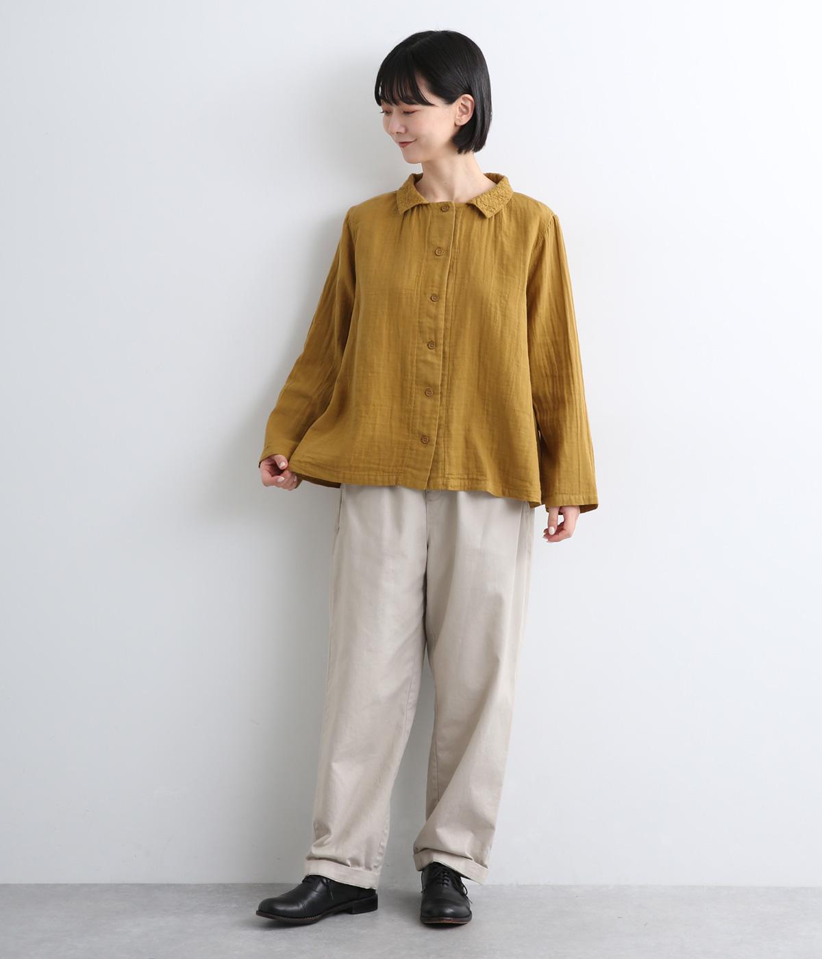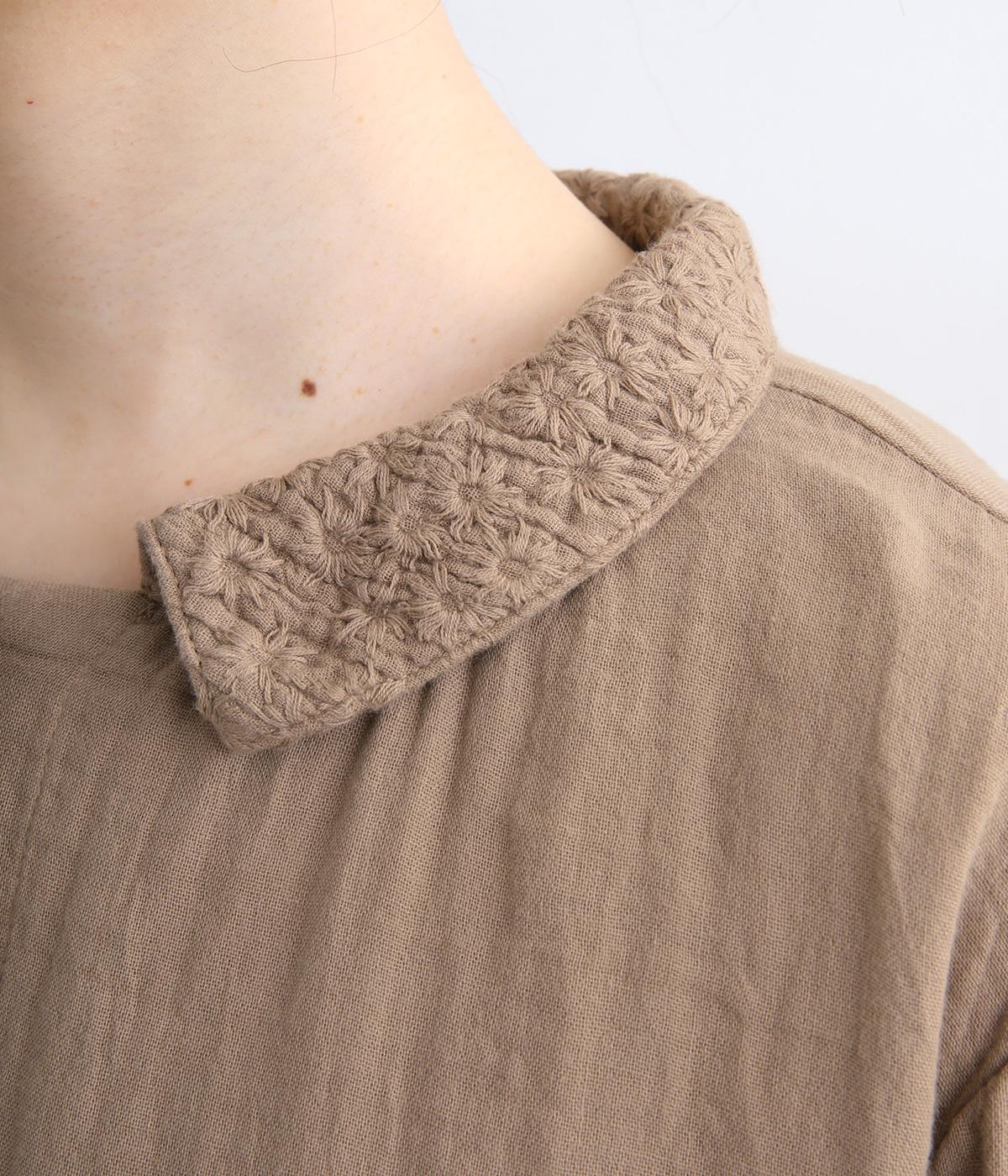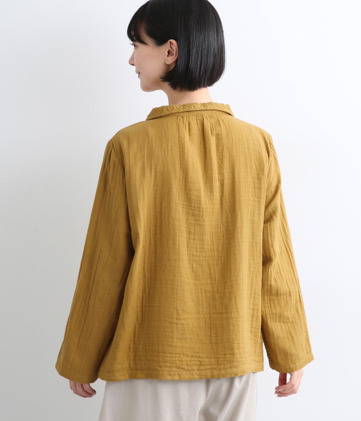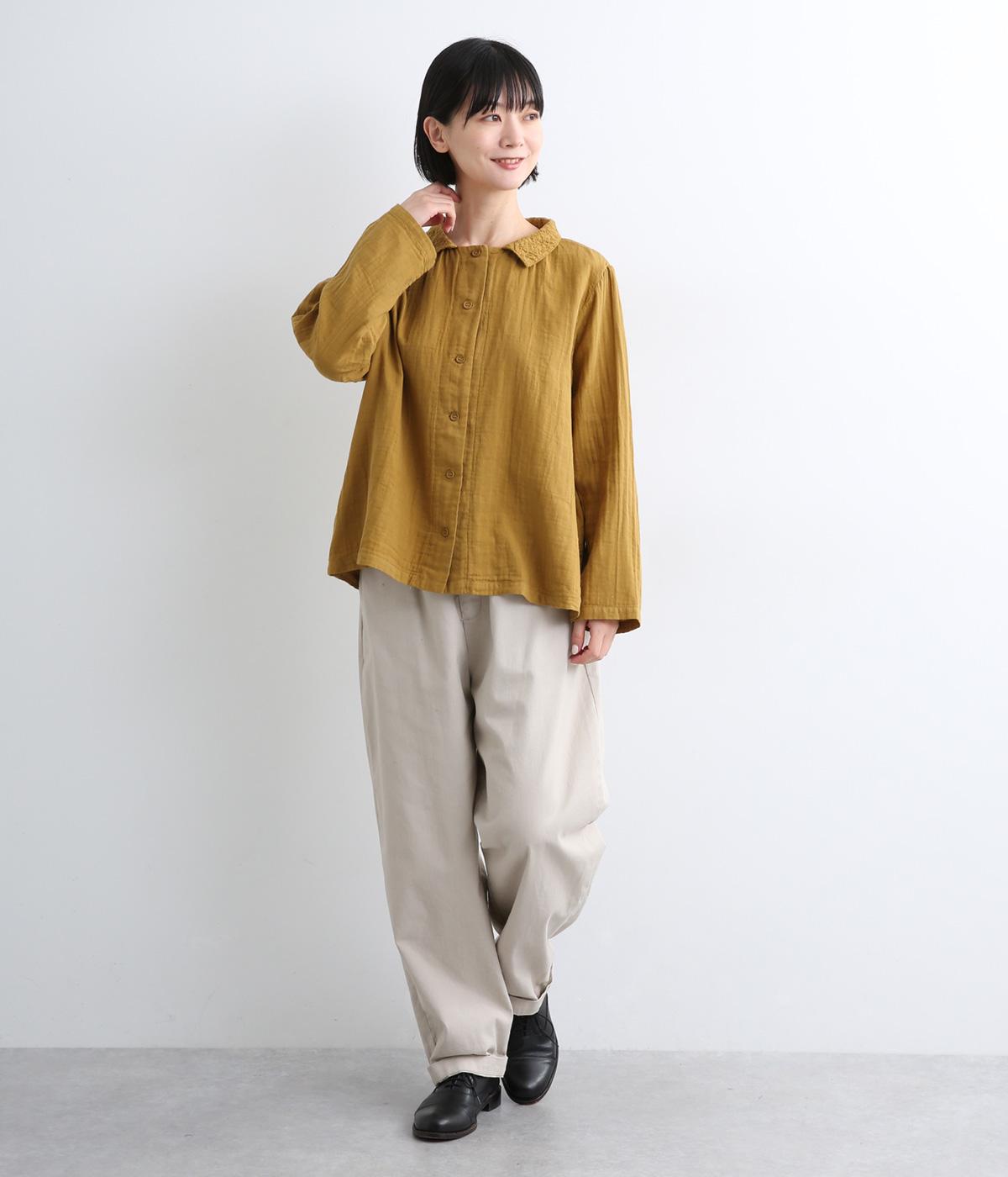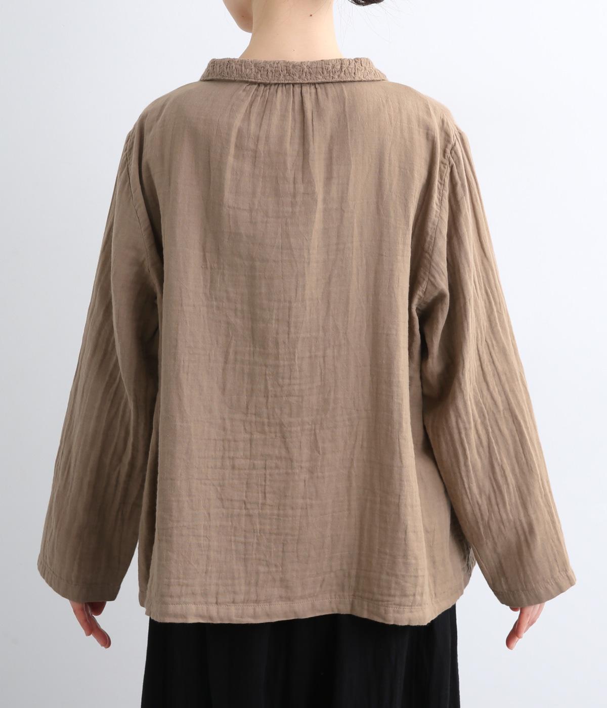 ガーゼのやさしい雰囲気にマッチした襟刺しゅうデザインが特徴的なブラウス。大人ガーリーな雰囲気に仕上がっていて、カジュアルなアイテム合わせもナチュラルにまとめてくれます。ボタンあき仕様なのであたたかな季節は羽織り使いもおすすめ。