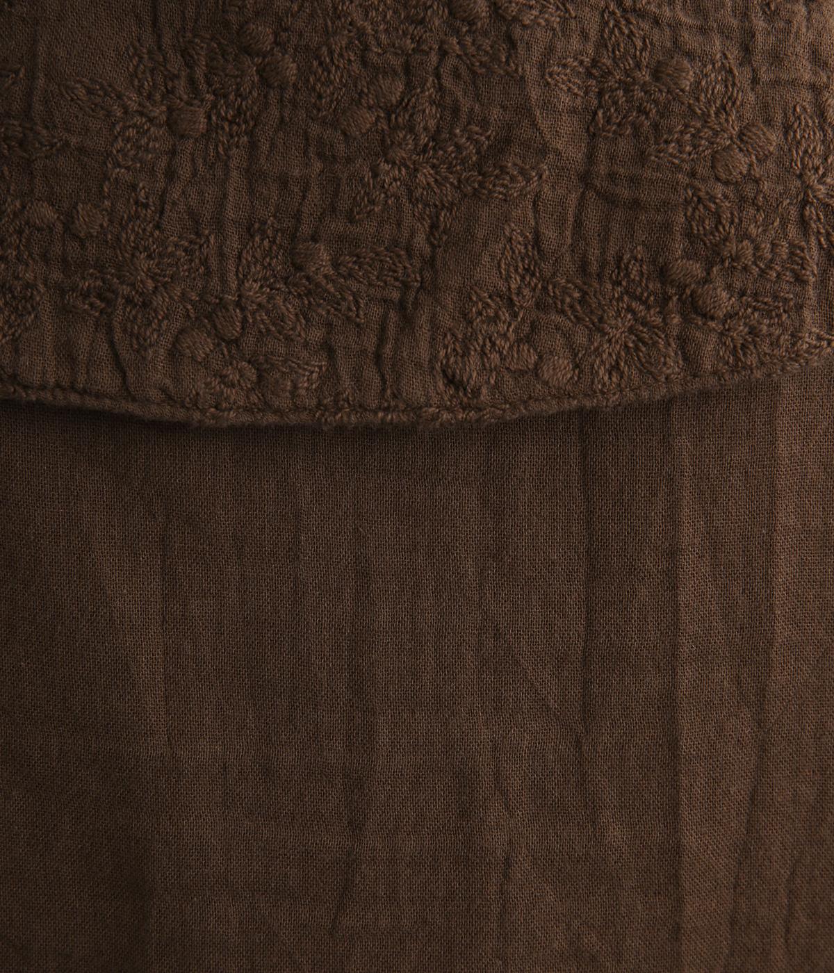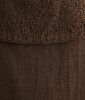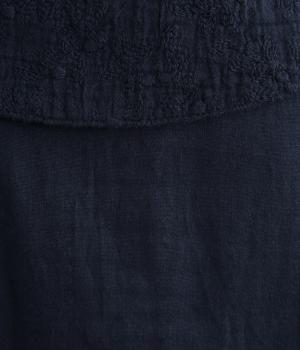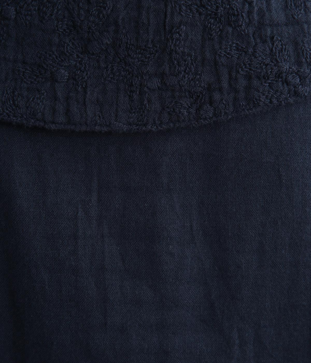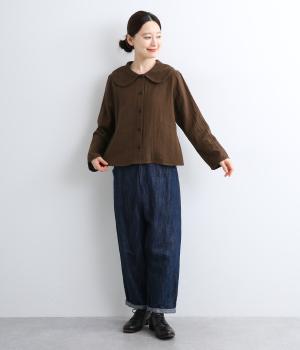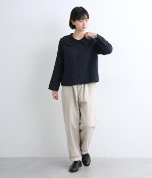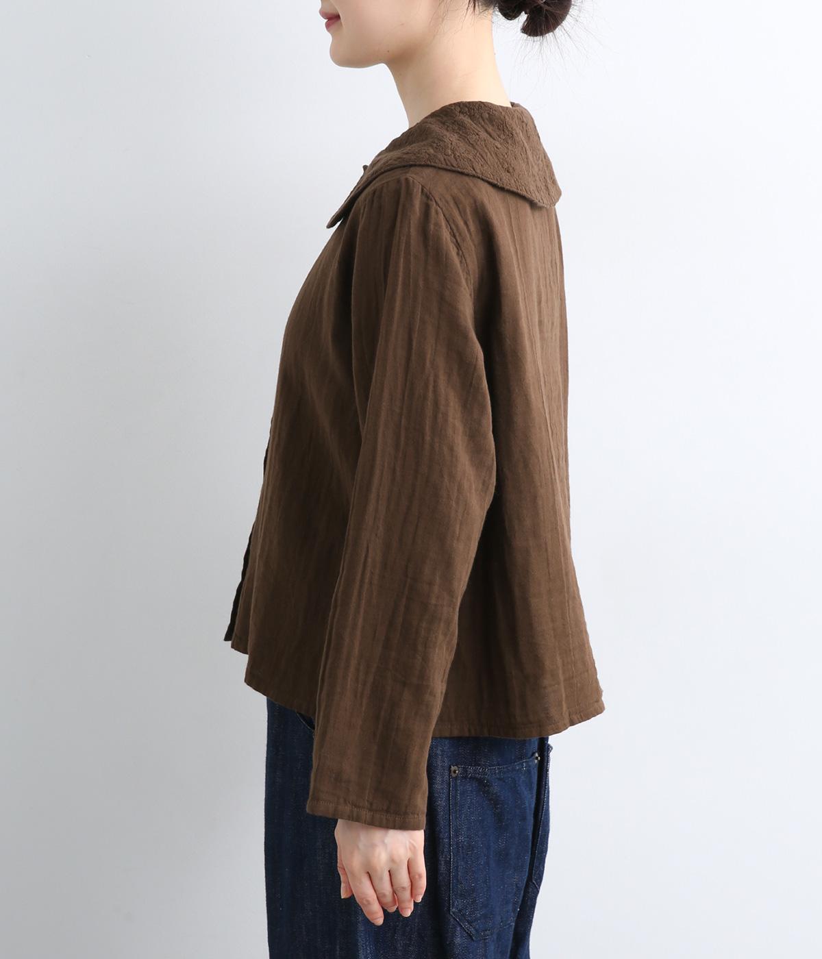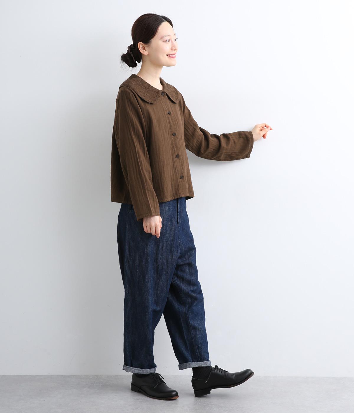 さり気なく刺しゅうをほどこした、大きな丸襟が目を惹くブラウスです。ガーゼのやさしい雰囲気にマッチした大人ガーリーな仕上がりで、甘すぎずデイリーに着まわしやすい一枚。ボタンあき仕様なので羽織り使いもおすすめです。