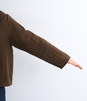 ふんわりとした肌あたりにやさしい表情が魅力的なコットンダブルガーゼで仕立てました。吸湿・速乾・通気性に優れた薄めの中厚手生地でロングシーズン活躍します。