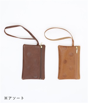 何かと便利なポーチには、環境に配慮した残皮を使用。レザーの風合いを活かしたエンボス加工が、さりげないアクセントになっています。
