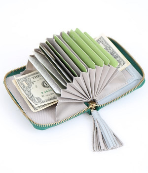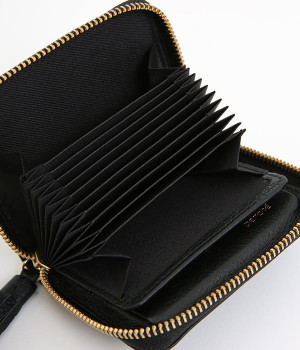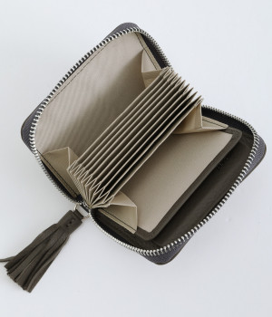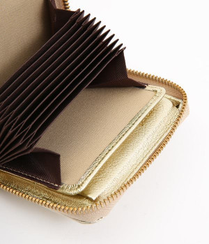 カード、お札、小銭をコンパクトに収納する、長財布とミニ財布の良いところを掛け合わせたウォレットです。小荷物派にうれしい、ミニショルダーやハンドバッグ、ポケットにも入るサイズ設計。ドット型押しを施した牛革を使用しており、大人にふさわしいポップ感を表現しました。出し入れしやすいジャバラ式のカードポケットが備わり、カード類をコンパクトに収納可能。ジャバラポケット下はお札を折らずに収納できるよう、スリップ式になっているのもポイント。本体にスキミング防止シートが内蔵されており、安全面にも気配りを。箱入れでお届けするのでプレゼントにもおすすめです。