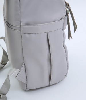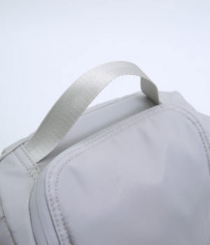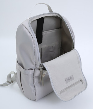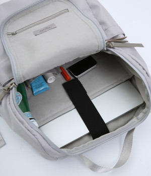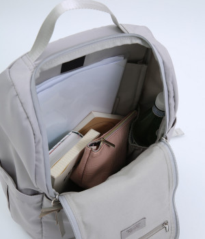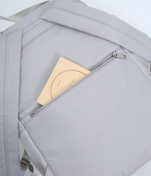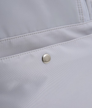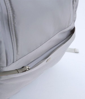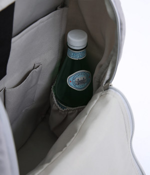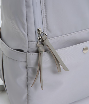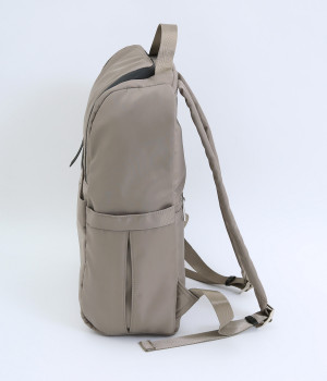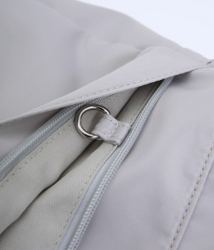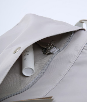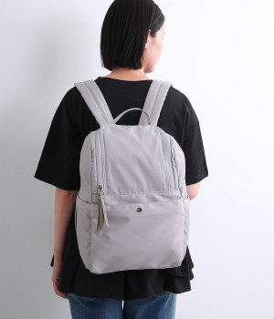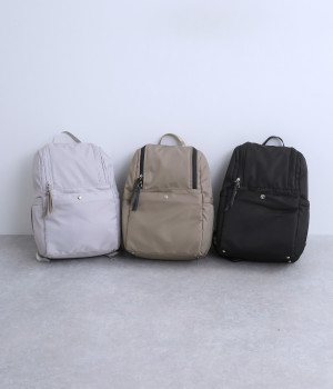 撥水加工をほどこしてアクティブシーンでも頼れる生地感にしています。ファスナーも防水加工で、多少の雨なら内側は濡れず快適に使用できます。