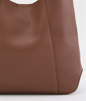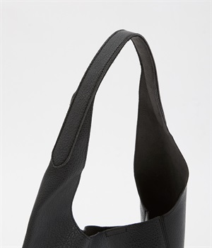 シックで大人顔なホーボーバッグは、A4サイズも入る使い勝手のいい仕立てです。肩入れもスムーズにできるワンショルダーでシンプルにまとめました。内側の配色ポケットもさり気ないお洒落ポイントに。