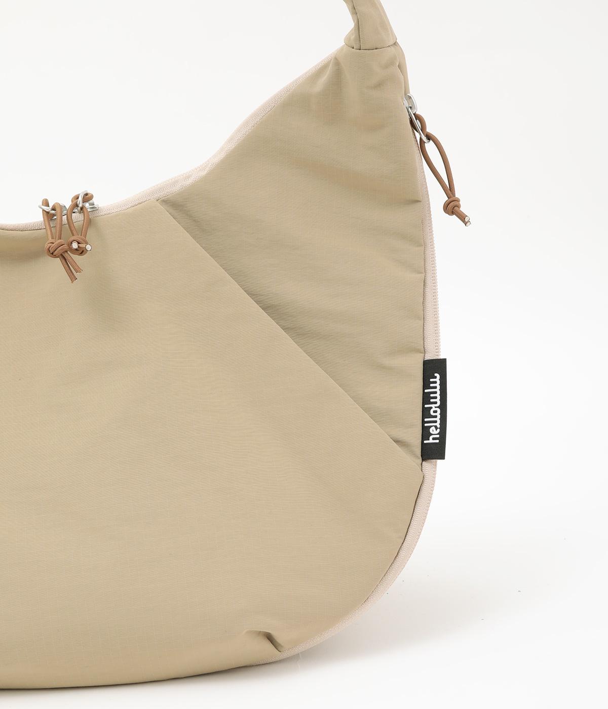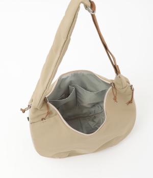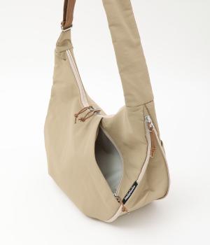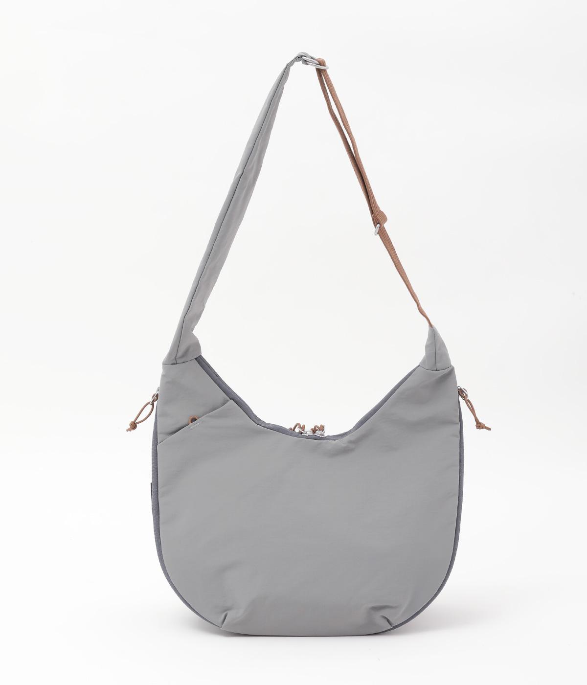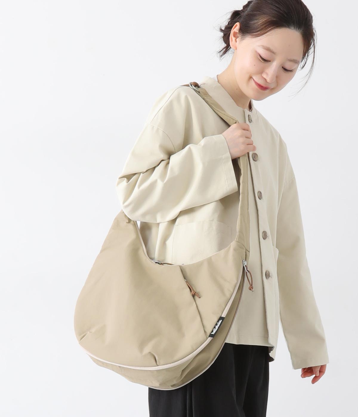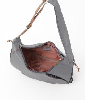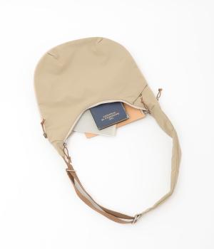 体に心地よく沿う三日月のような丸みを帯びたフォルムが特徴のホーボーバッグ。下のファスナーを開けるとマチが出現し、収納力がアップします。小物をさっと出し入れしやすい、斜めに開けたポケットもポイント。ショルダーベルトは長さ調整でき、肩掛けや斜め掛けを選べます。