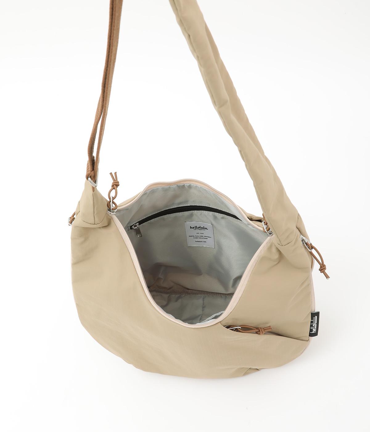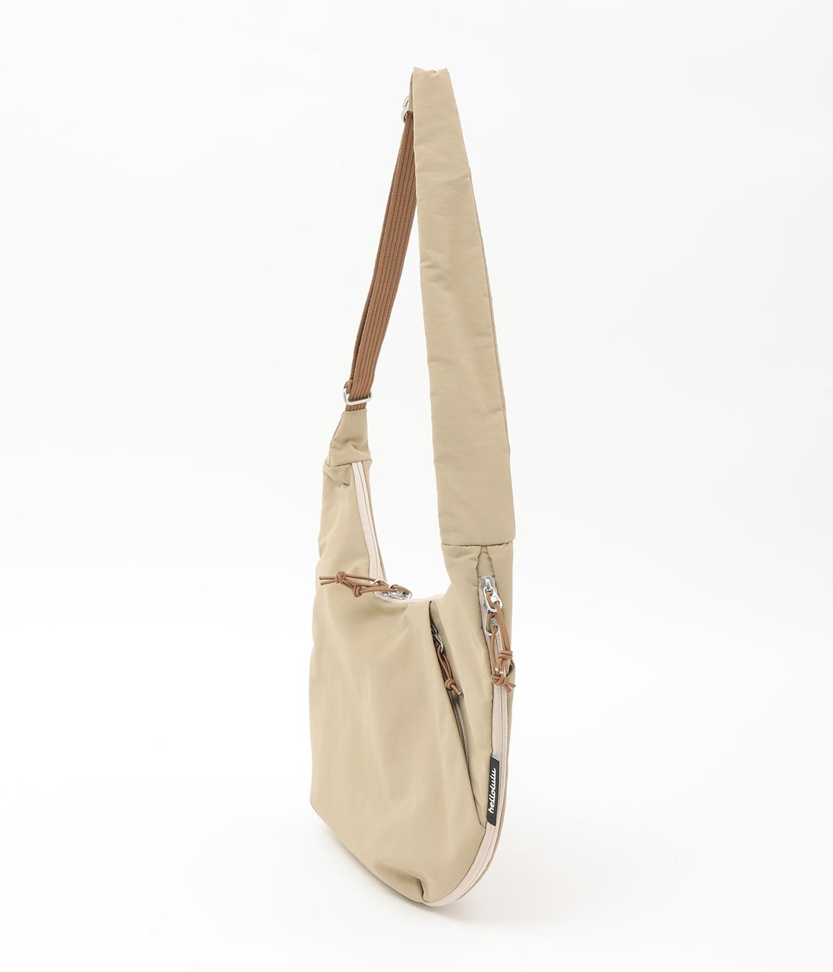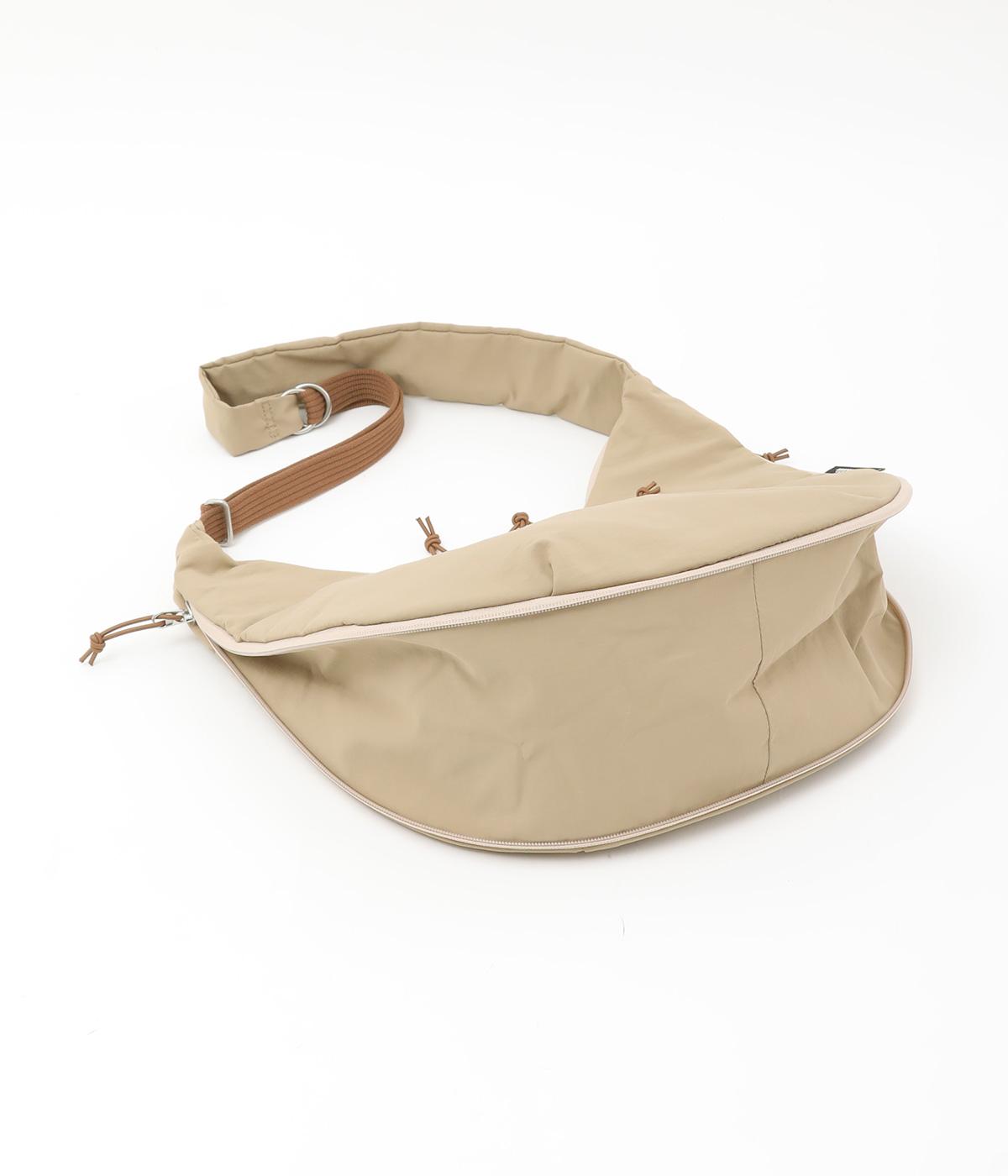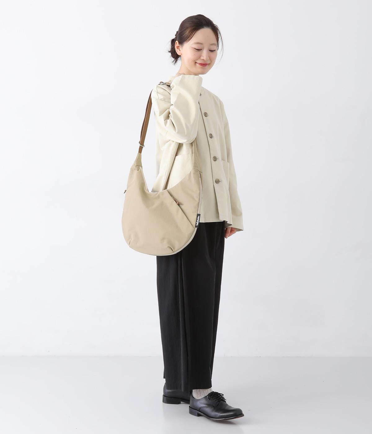 体に心地よく沿う三日月のような丸みを帯びたフォルムが特徴のホーボーバッグ。下のファスナーを開けるとマチが出現し、収納力がアップします。小物をさっと出し入れしやすい、斜めに開けたポケットもポイント。ショルダーベルトは長さ調整でき、肩掛けや斜め掛けを選べます。