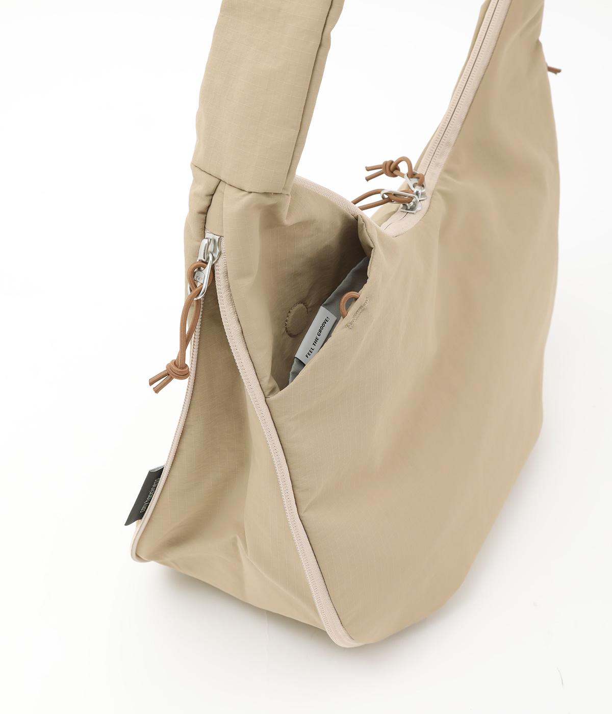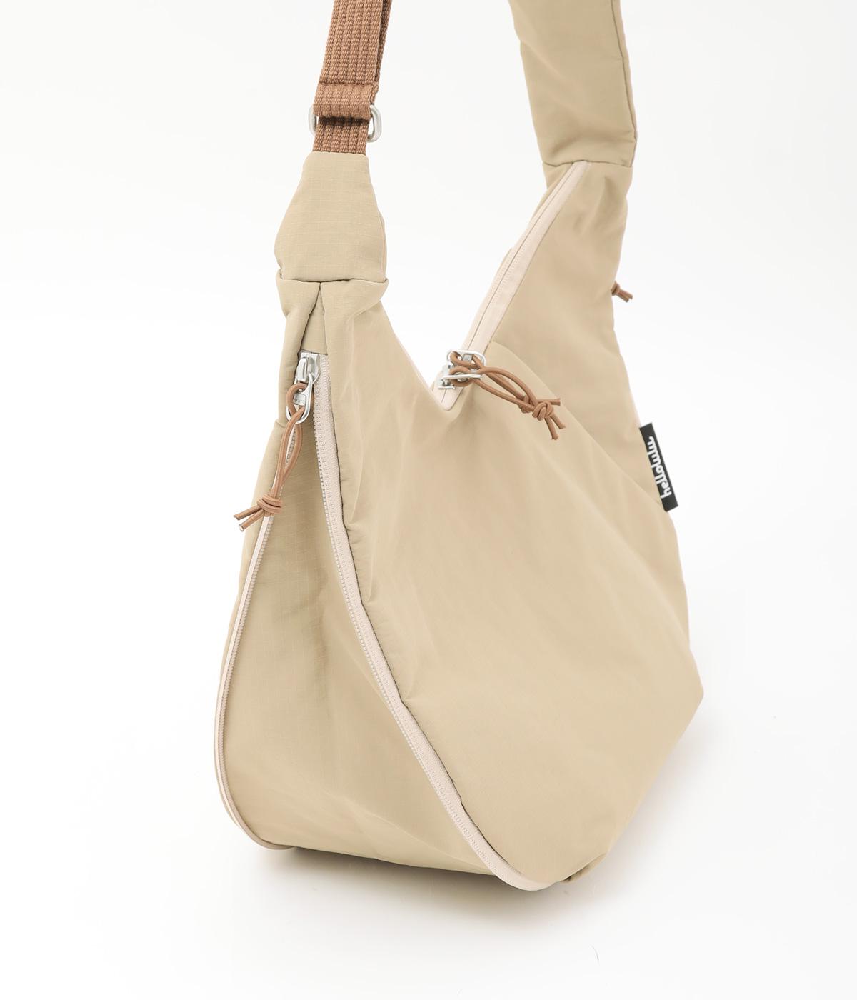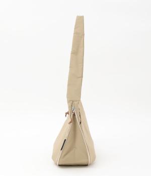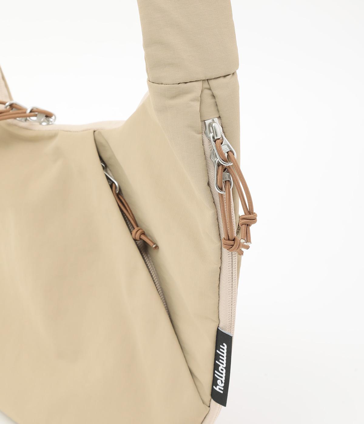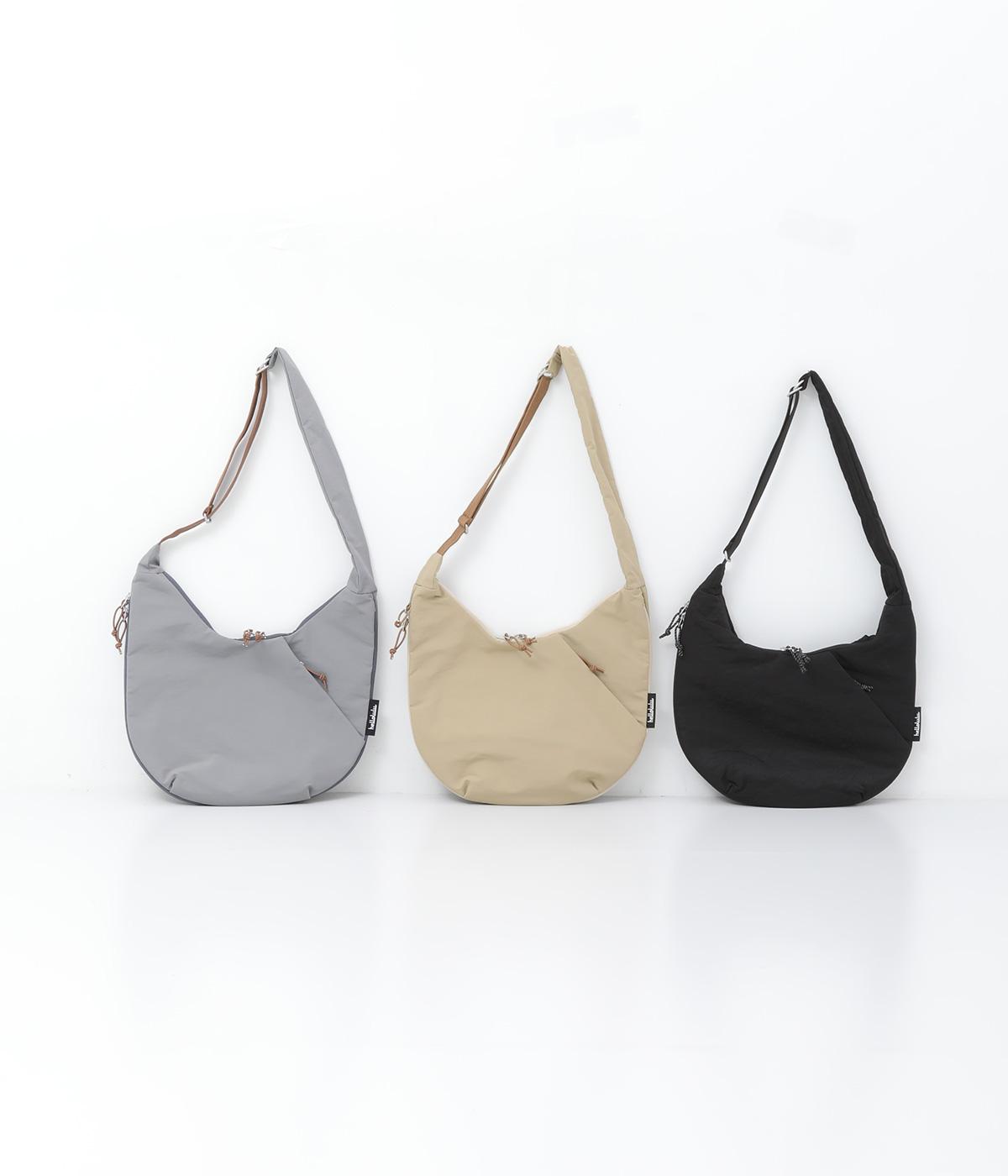体に心地よく沿う三日月のような丸みを帯びたフォルムが特徴のホーボーバッグ。下のファスナーを開けるとマチが出現し、収納力がアップします。小物をさっと出し入れしやすい、斜めに開けたポケットもポイント。ショルダーベルトは長さ調整でき、肩掛けや斜め掛けを選べます。