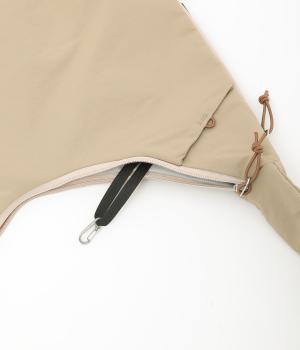 ジェイドブラックはふっくらとしたキルティング仕様のナイロン生地。サンドカーキとパールグレーは軽量でタフなリップストップナイロン生地を使用しています。