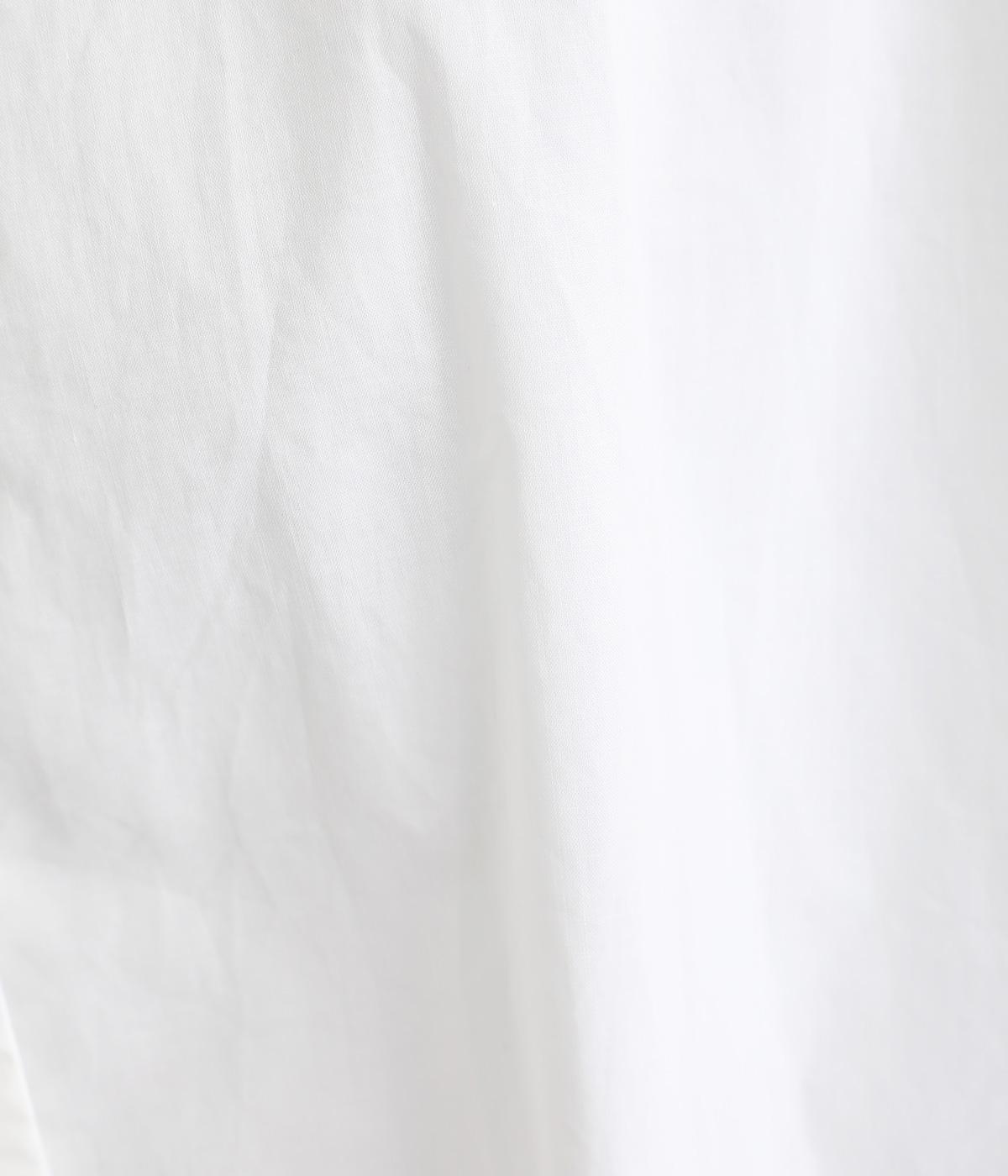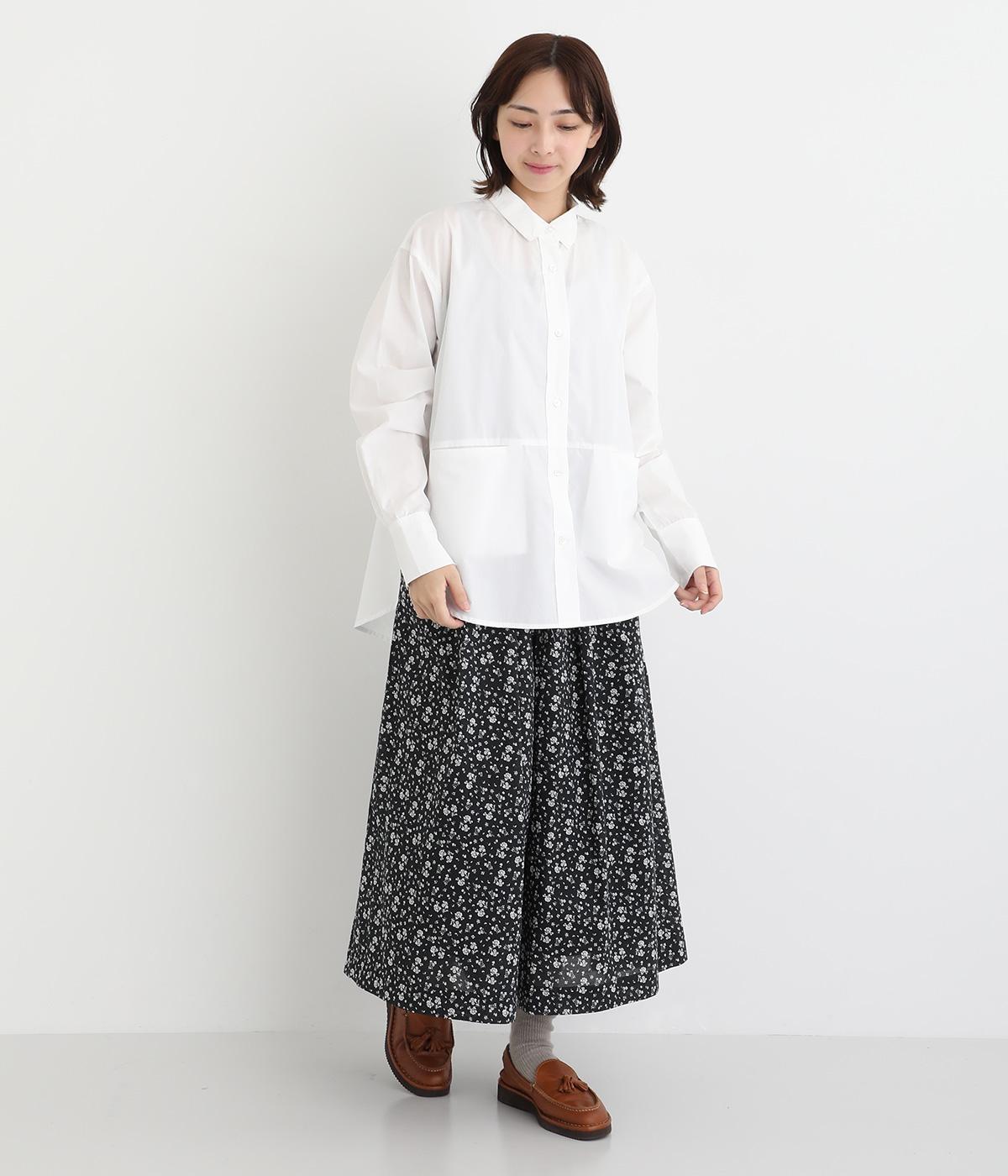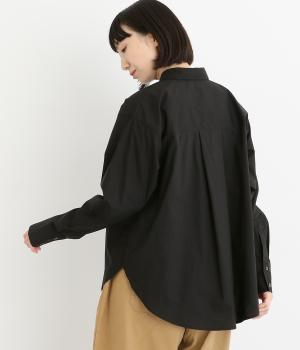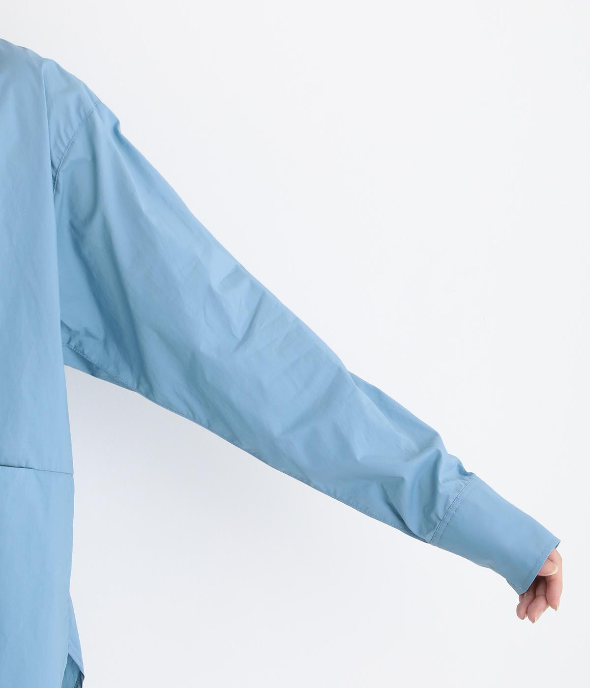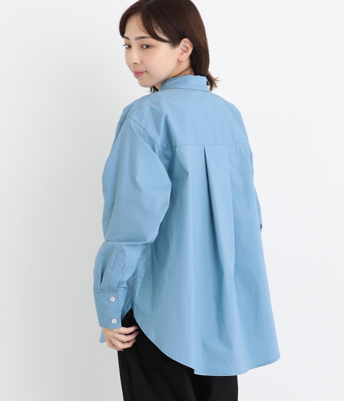 シャツのきちんと感はそのままに、身幅とアームホールを広めにとってリラクシーに仕上げました。フロントに切り替えを入れ、そこに沿うようにさりげなくポケットを配置。シルエットを間延びさせないアクセントになりつつ、実用性も◎です。