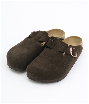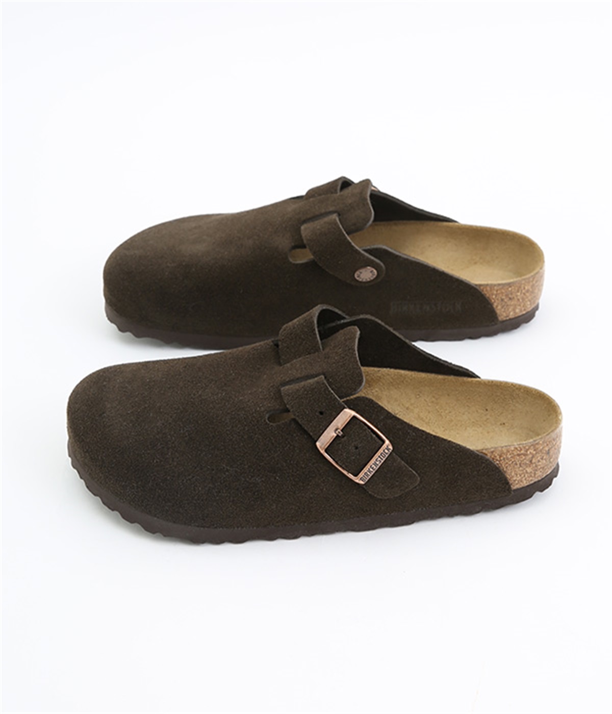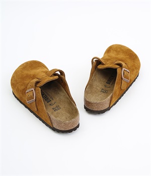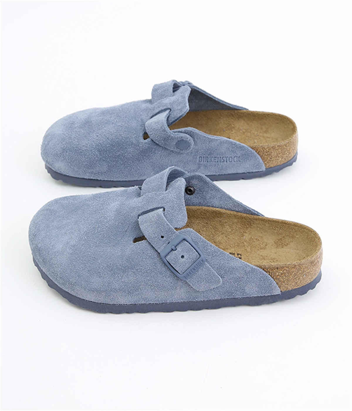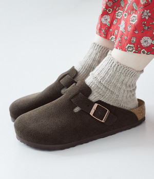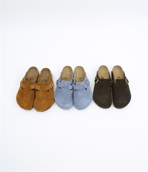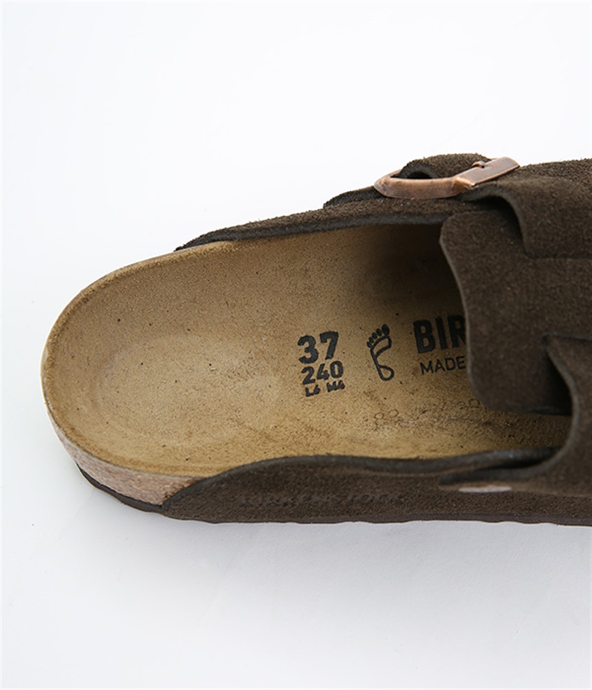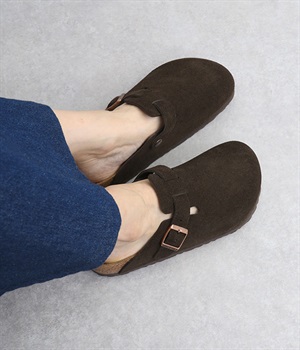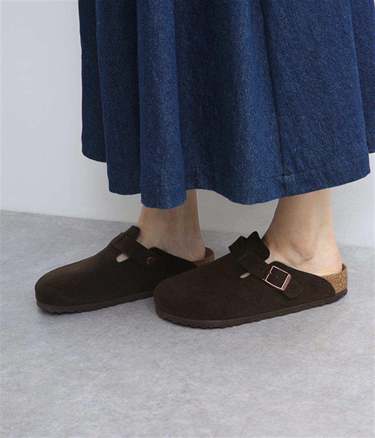 ドイツ発のBIRKENSTOCKを代表するBostonモデル。洗練された丸みのある美しいフォルムが魅力を放ちます。なじみの良いソフトな風合いのベロアレザーを使用し、ベルトでフィット感の調整が可能です。100年以上かけて開発し続けてきた、足の形状を考慮したフットべッドが自然な歩行をアシスト。暑い季節は素足で、寒い季節にはソックスを合わせて、オールシーズン足元に彩りを添える一足です。