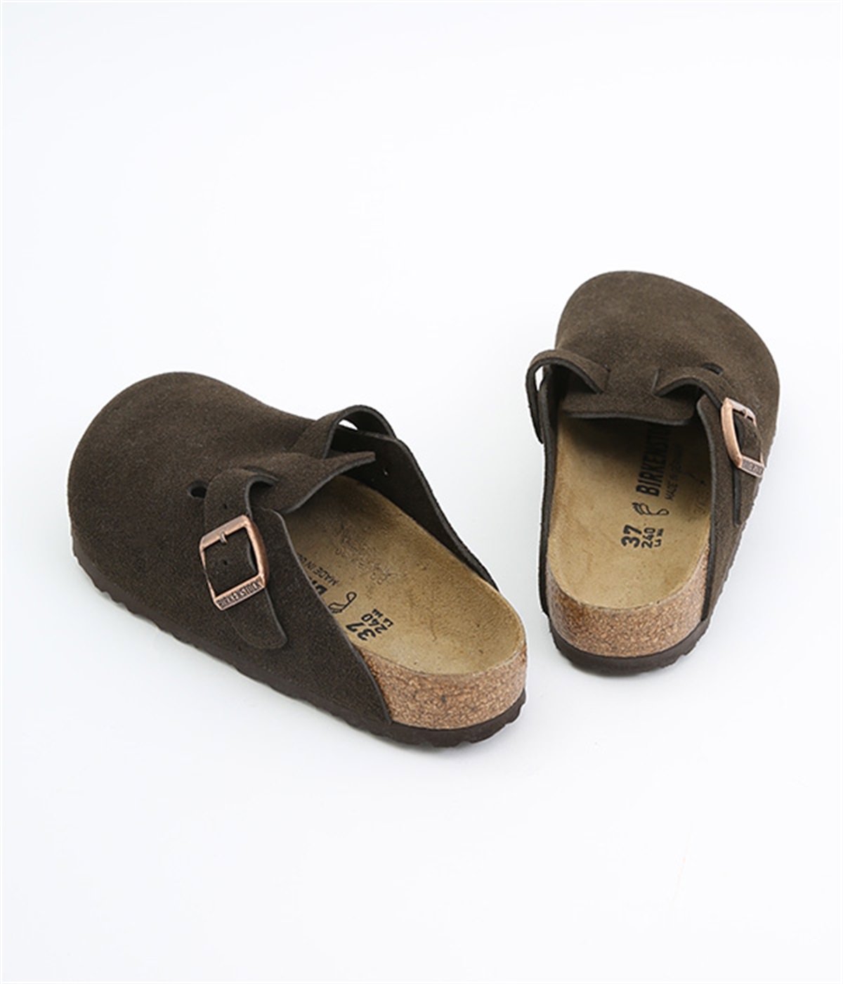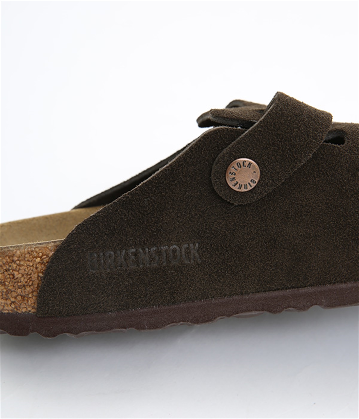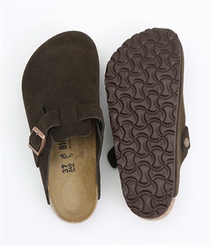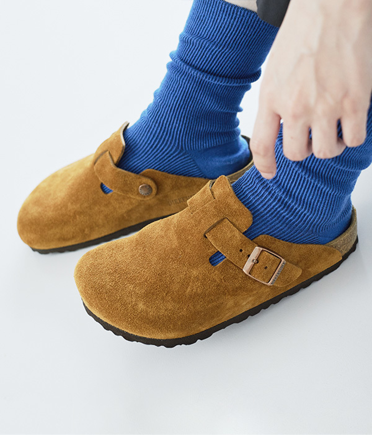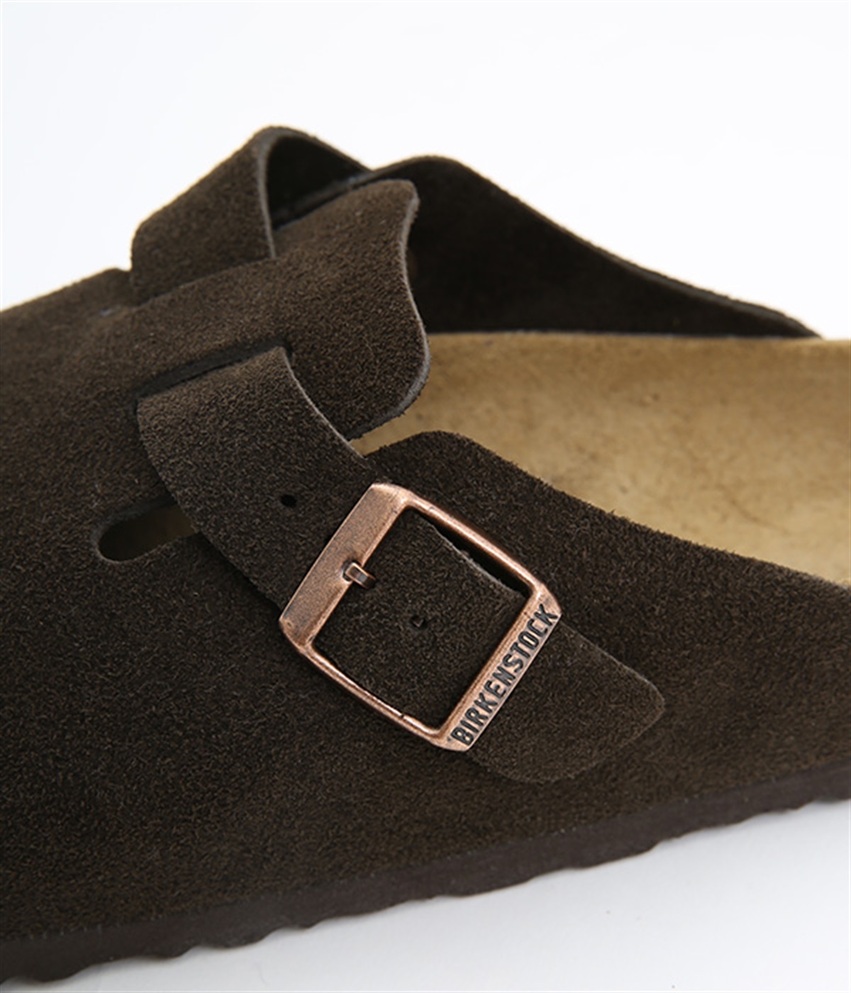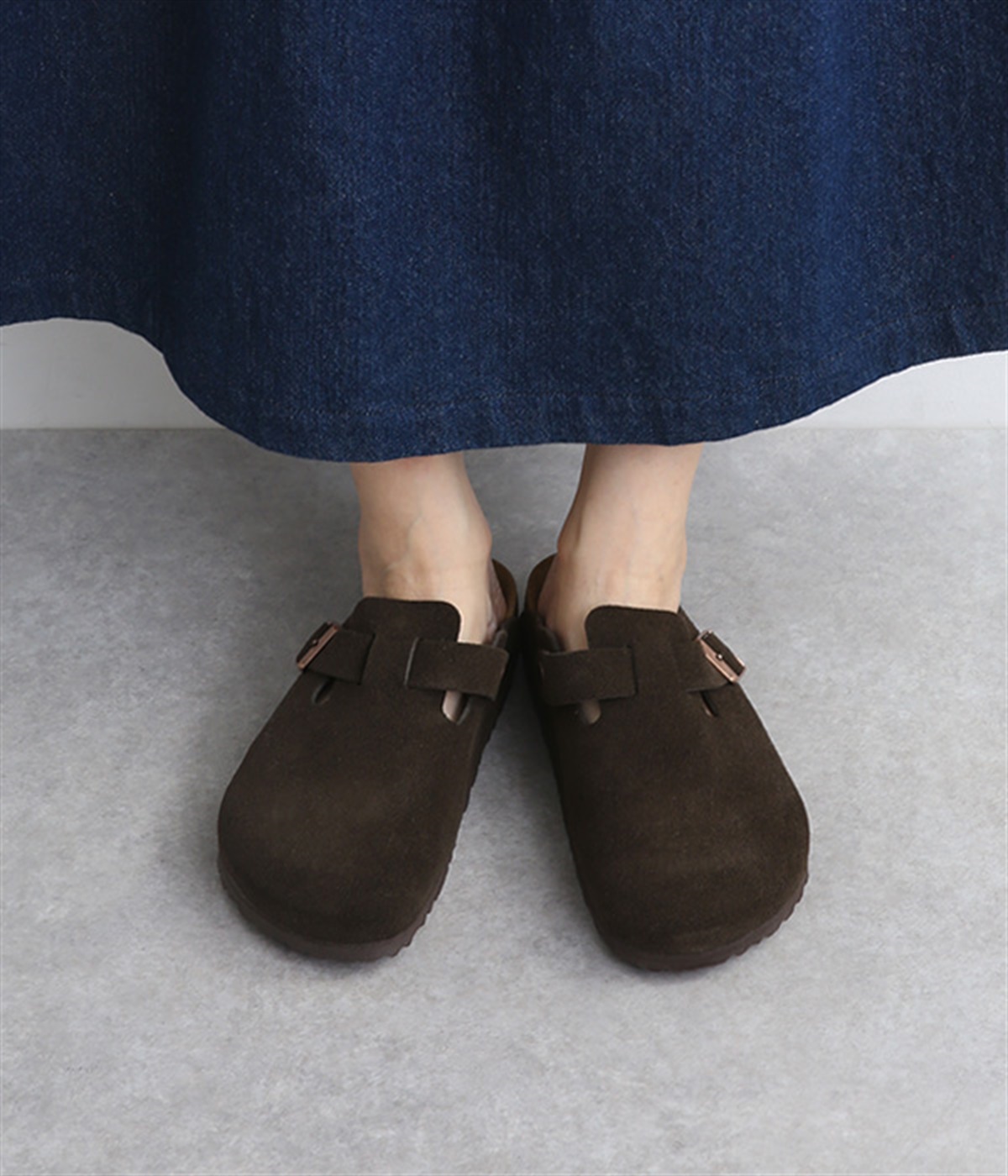 ドイツ発のBIRKENSTOCKを代表するBostonモデル。洗練された丸みのある美しいフォルムが魅力を放ちます。なじみの良いソフトな風合いのベロアレザーを使用し、ベルトでフィット感の調整が可能です。100年以上かけて開発し続けてきた、足の形状を考慮したフットべッドが自然な歩行をアシスト。暑い季節は素足で、寒い季節にはソックスを合わせて、オールシーズン足元に彩りを添える一足です。