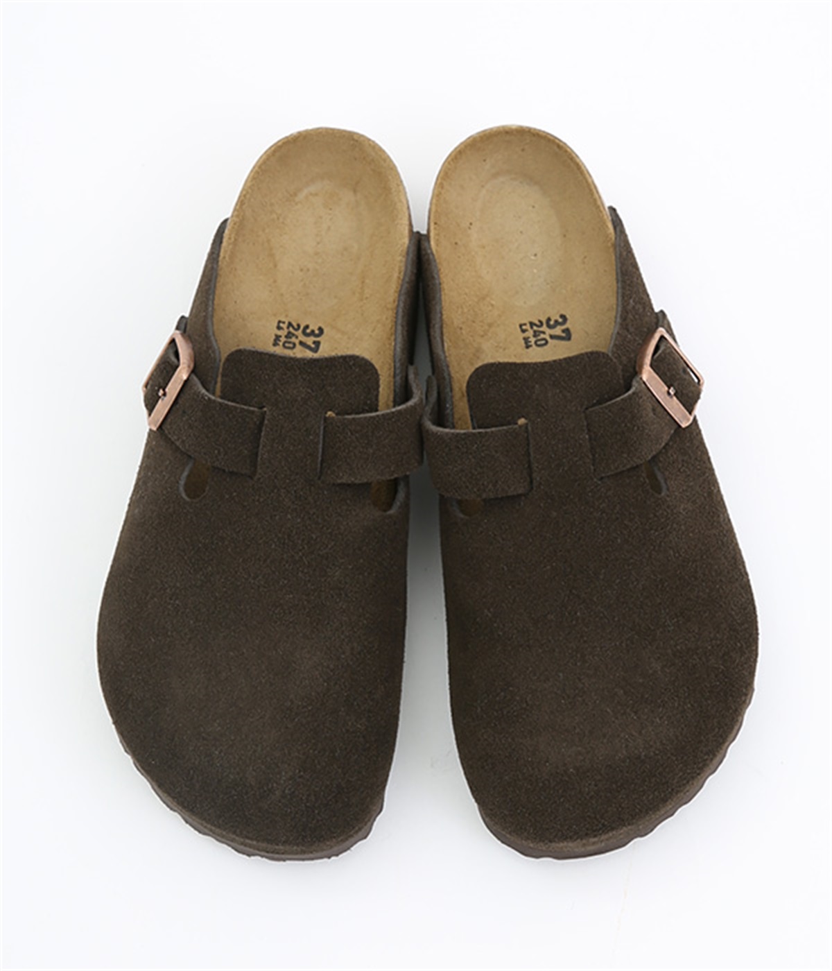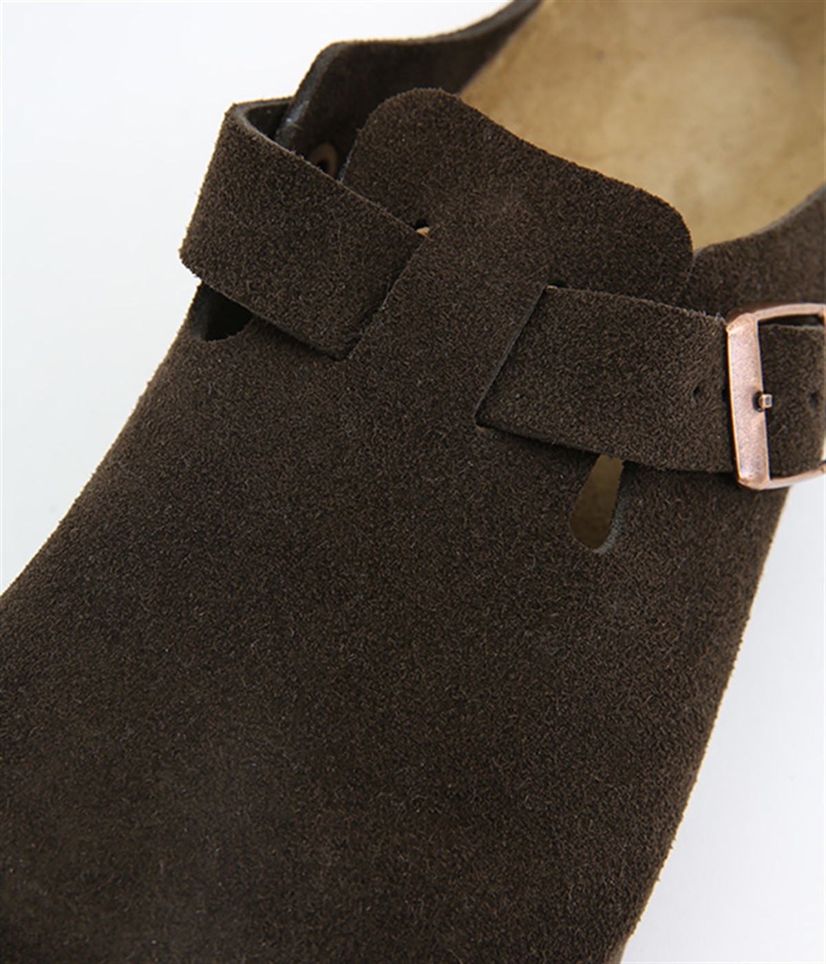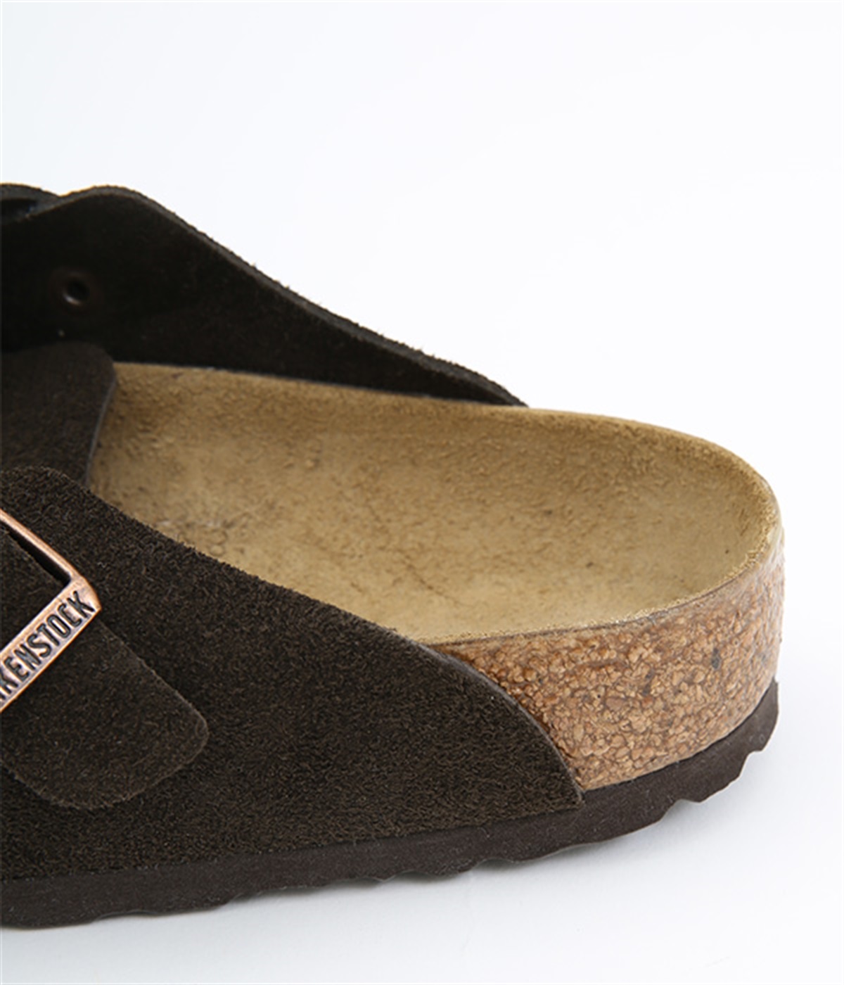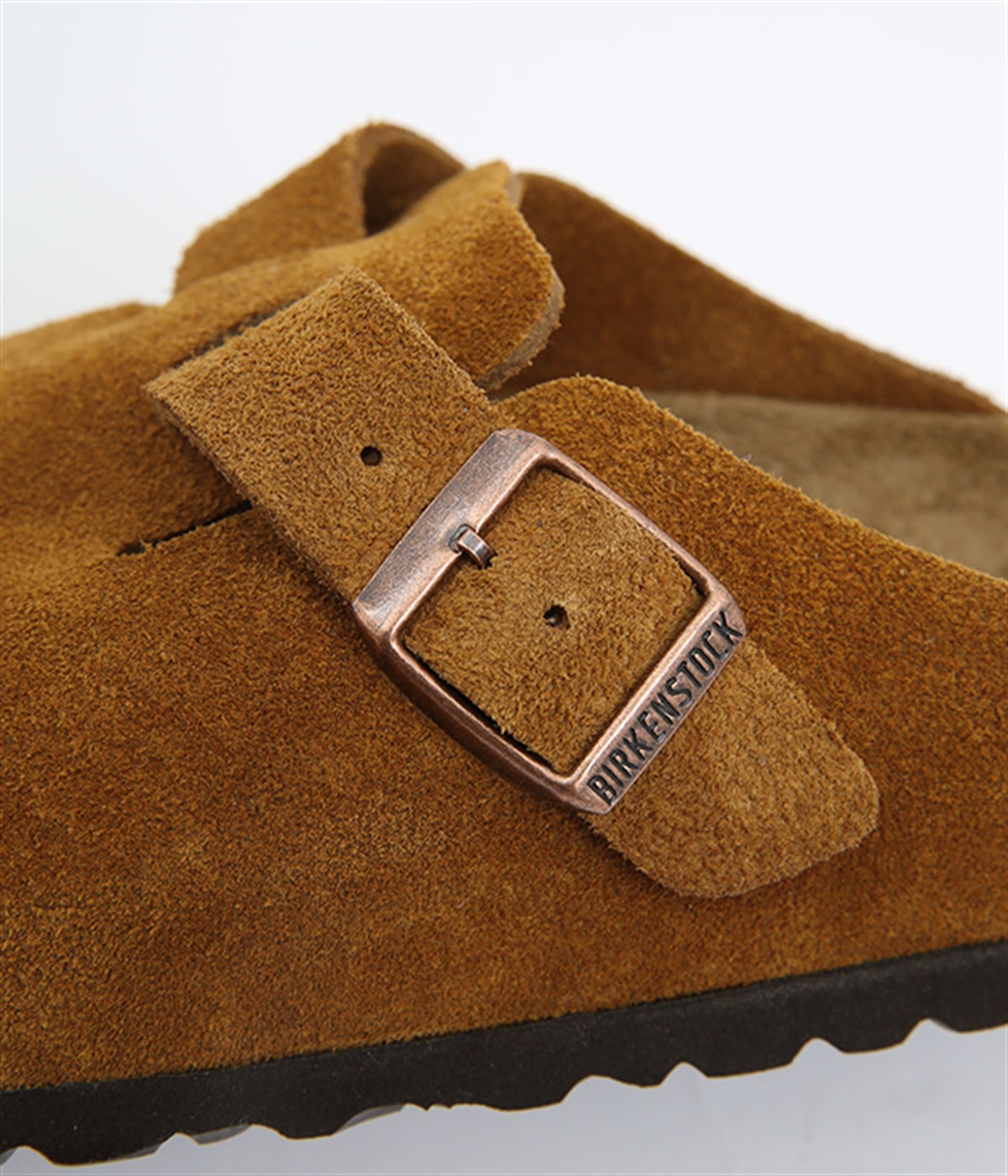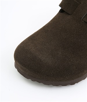 ドイツ発のBIRKENSTOCKを代表するBostonモデル。洗練された丸みのある美しいフォルムが魅力を放ちます。なじみの良いソフトな風合いのベロアレザーを使用し、ベルトでフィット感の調整が可能です。100年以上かけて開発し続けてきた、足の形状を考慮したフットべッドが自然な歩行をアシスト。暑い季節は素足で、寒い季節にはソックスを合わせて、オールシーズン足元に彩りを添える一足です。