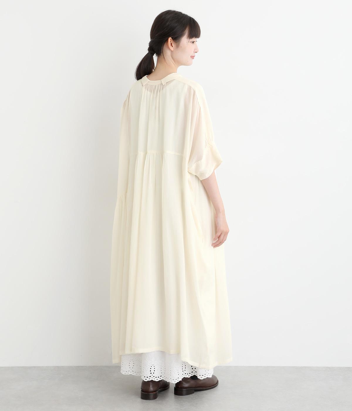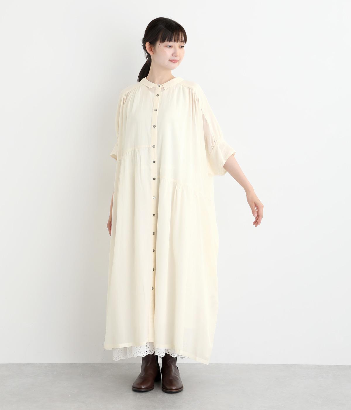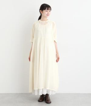 ギャザーをたっぷりほどこしたゆったりシルエットの2way仕様のワンピース。軽やかな生地感で重たく見えず、切り替えから生まれる落ち感が女性らしい上品さをプラス。お出かけにもデイリーにも取り入れやすい一枚です。