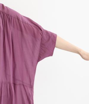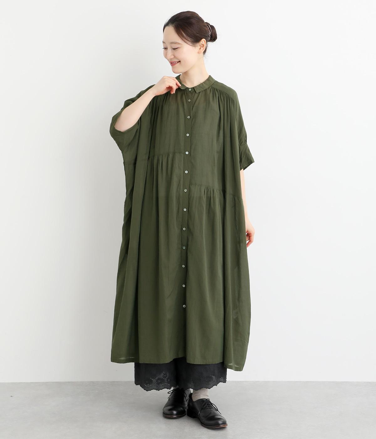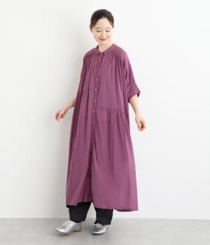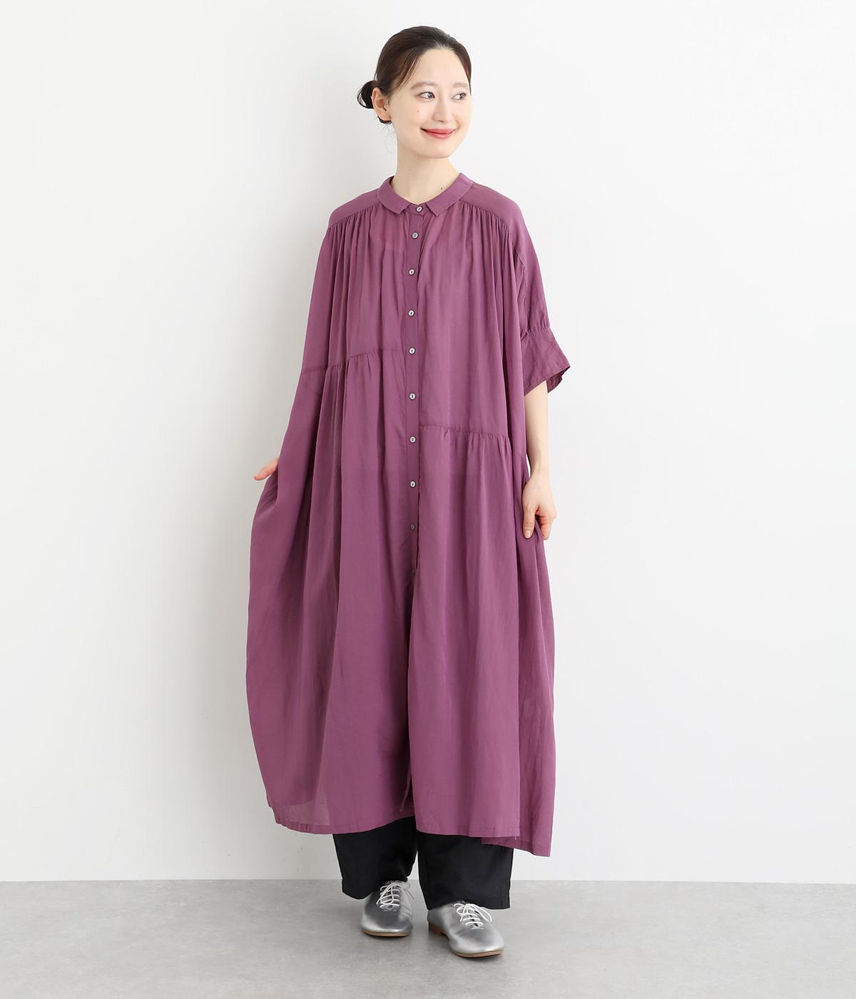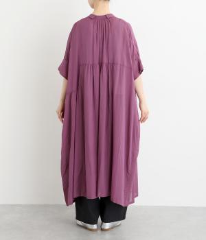 軽やかでさらりと纏えるレーヨンとコットンのミックス素材です。ほどよい透け感のある薄手の生地で、肌ばなれのよい着心地と自然な風合いが魅力です。