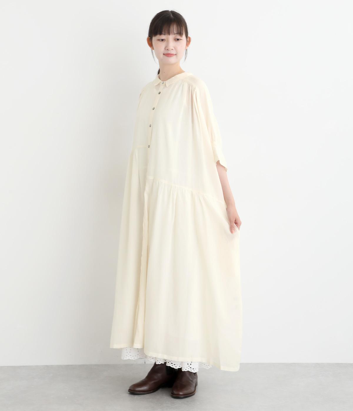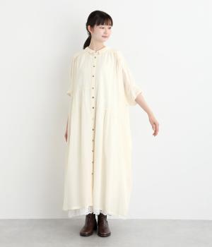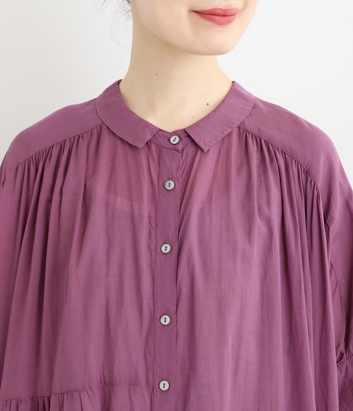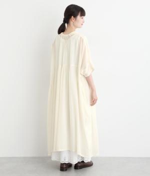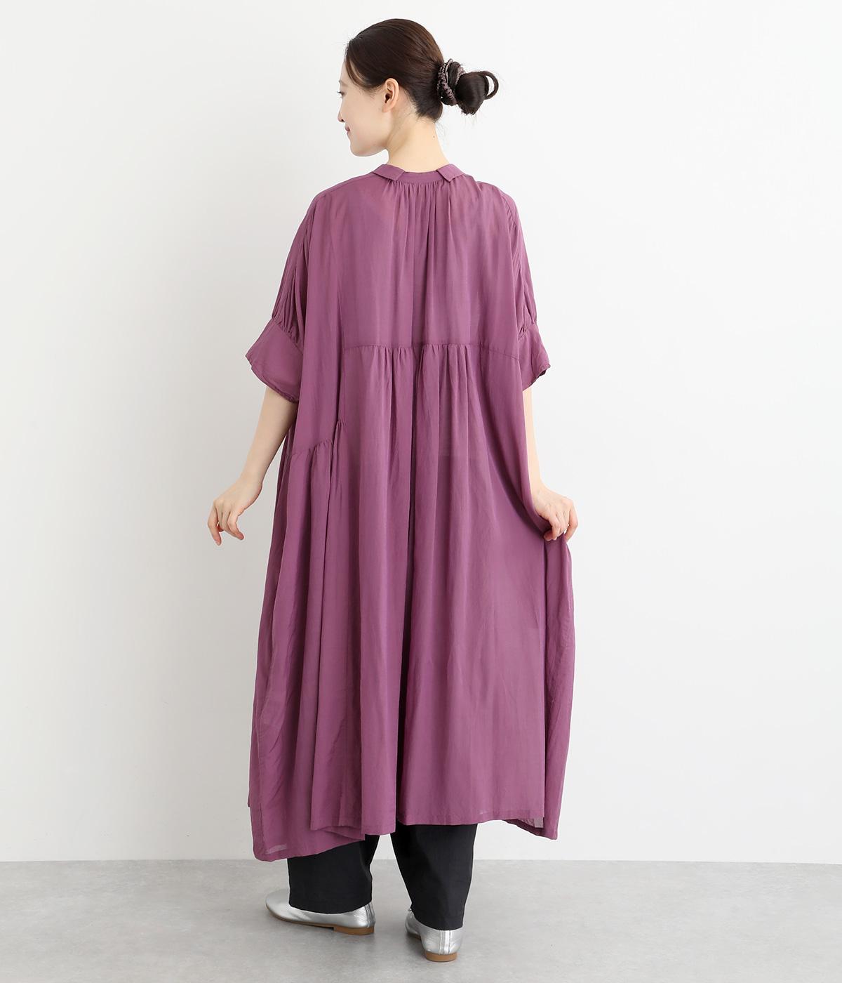 軽やかでさらりと纏えるレーヨンとコットンのミックス素材です。ほどよい透け感のある薄手の生地で、肌ばなれのよい着心地と自然な風合いが魅力です。