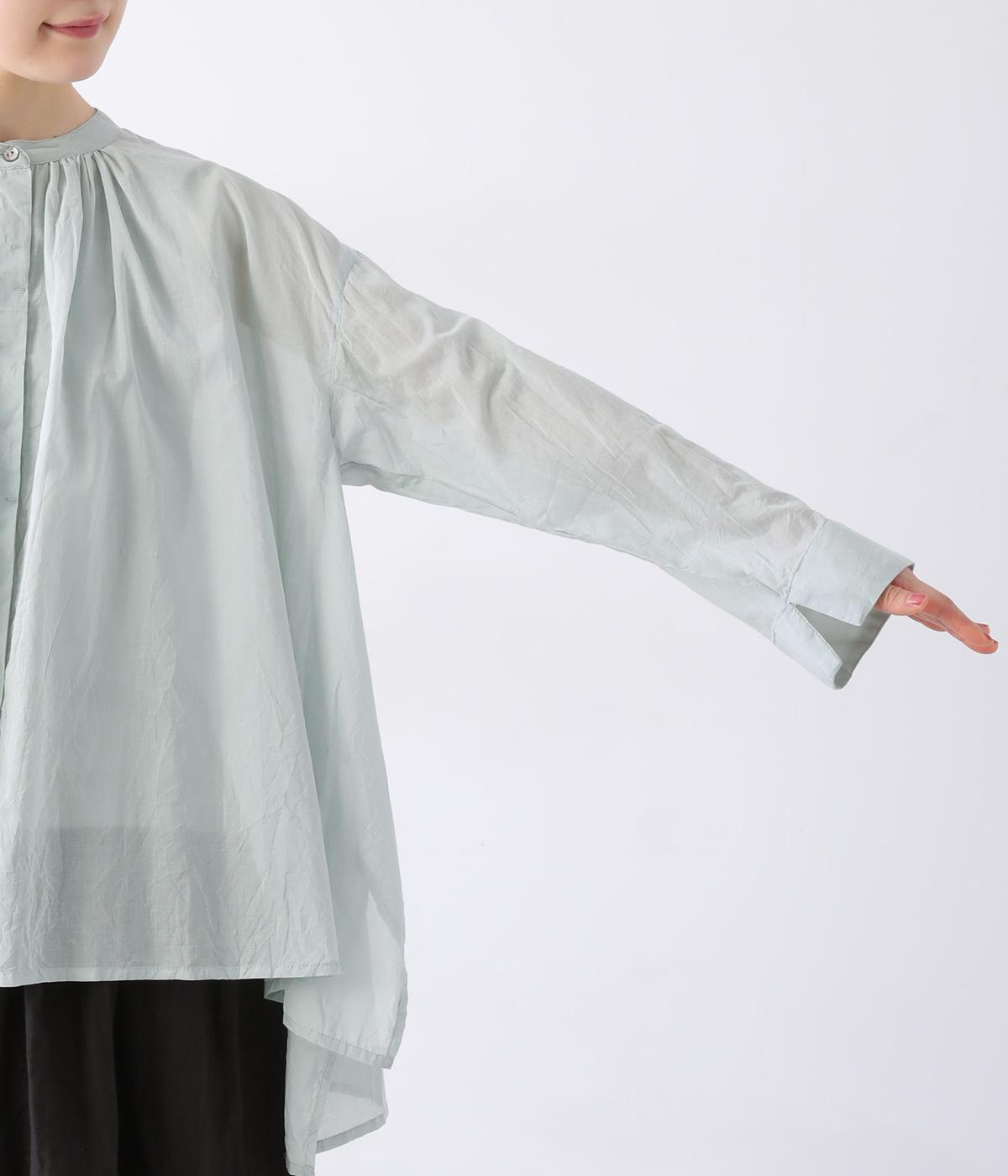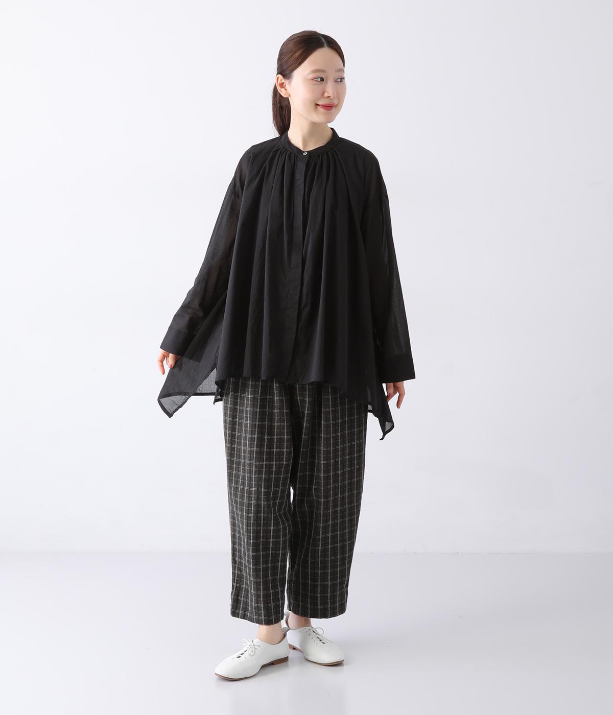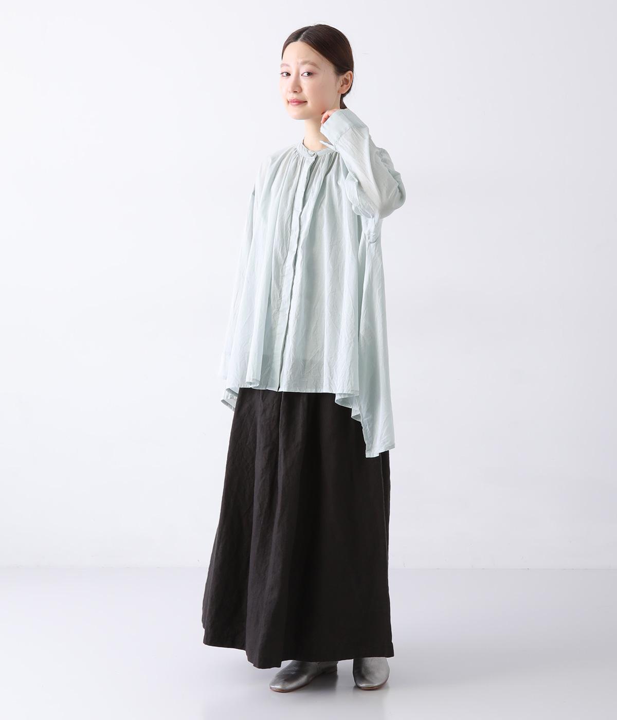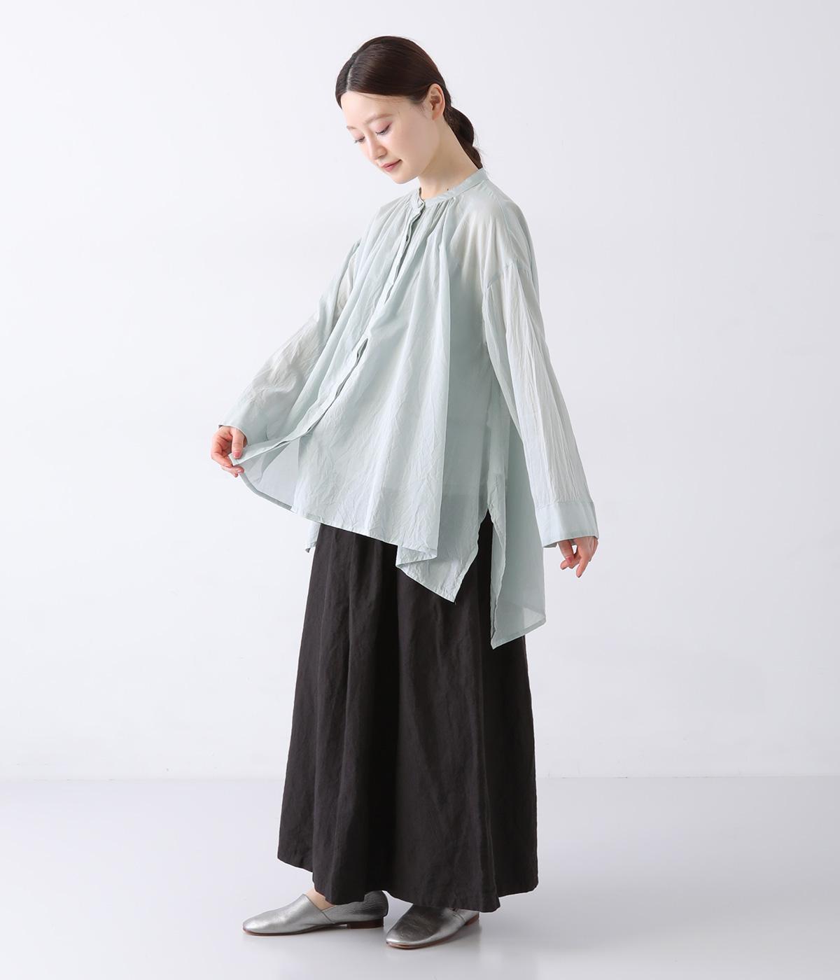 環境にやさしいオーガニックコットンを使用したボイル生地。やわらかな心地よい肌触りと通気性のよさが特徴です。ほんのりと透け感があり、ボリュームシルエットも軽やかに見せてくれます。