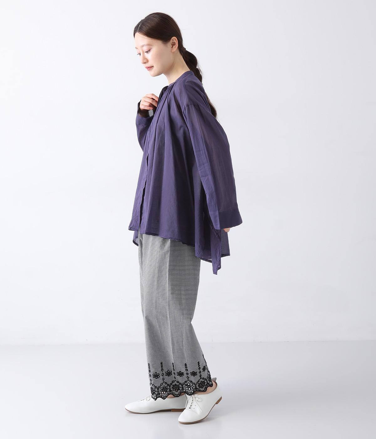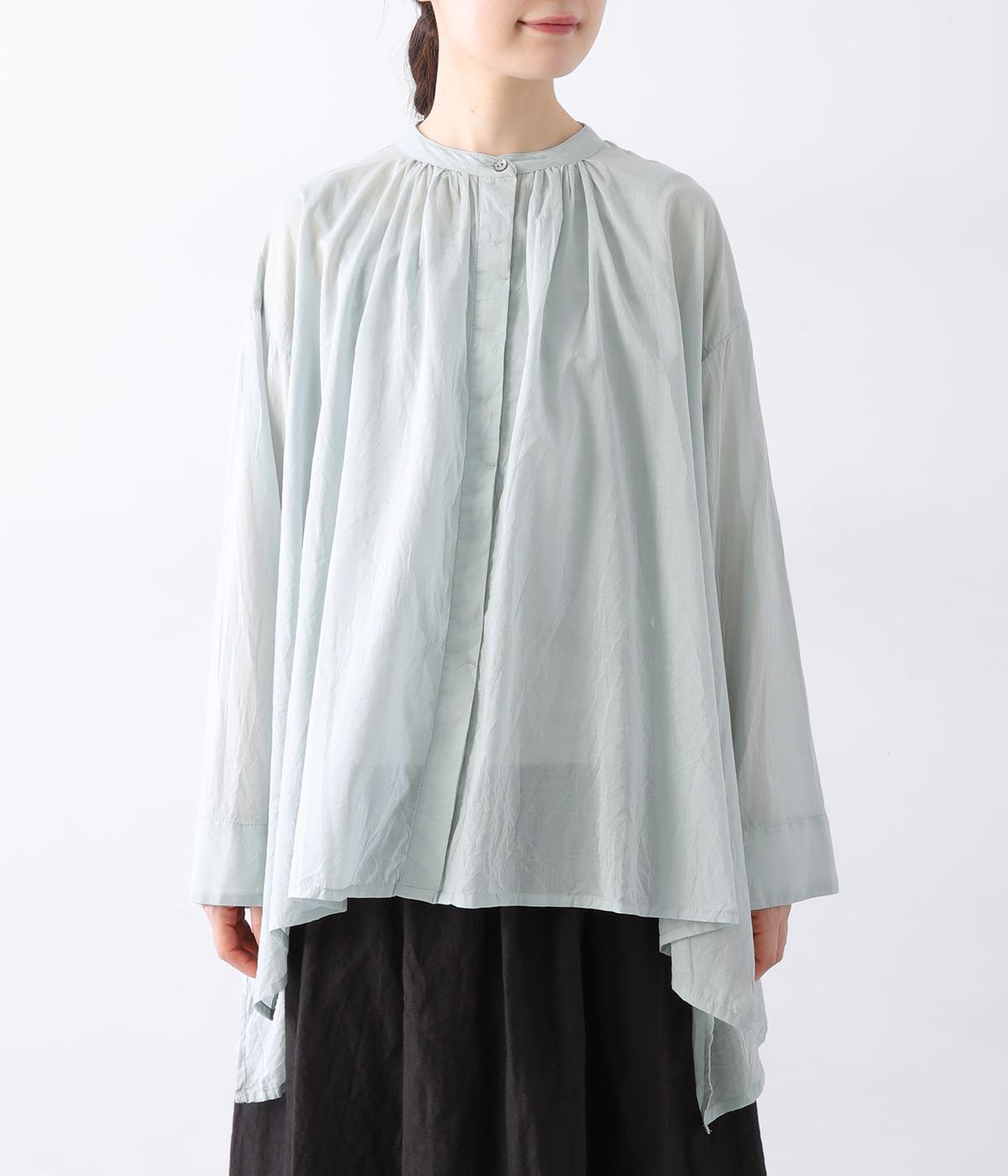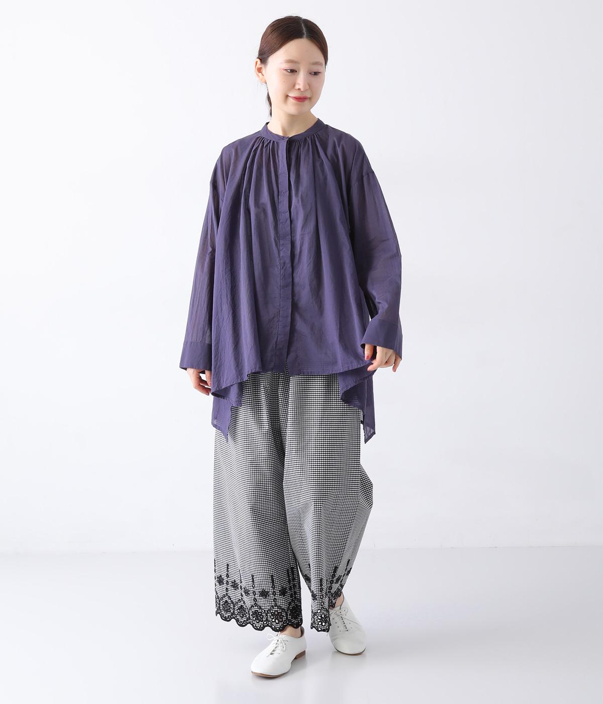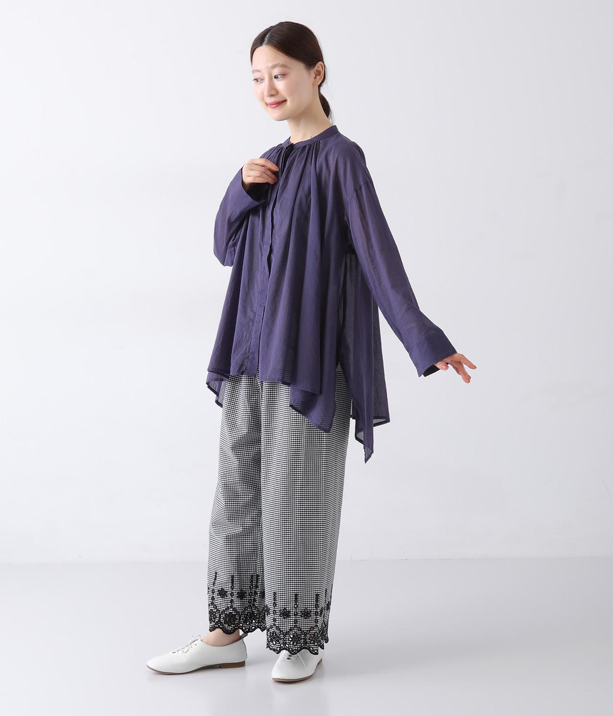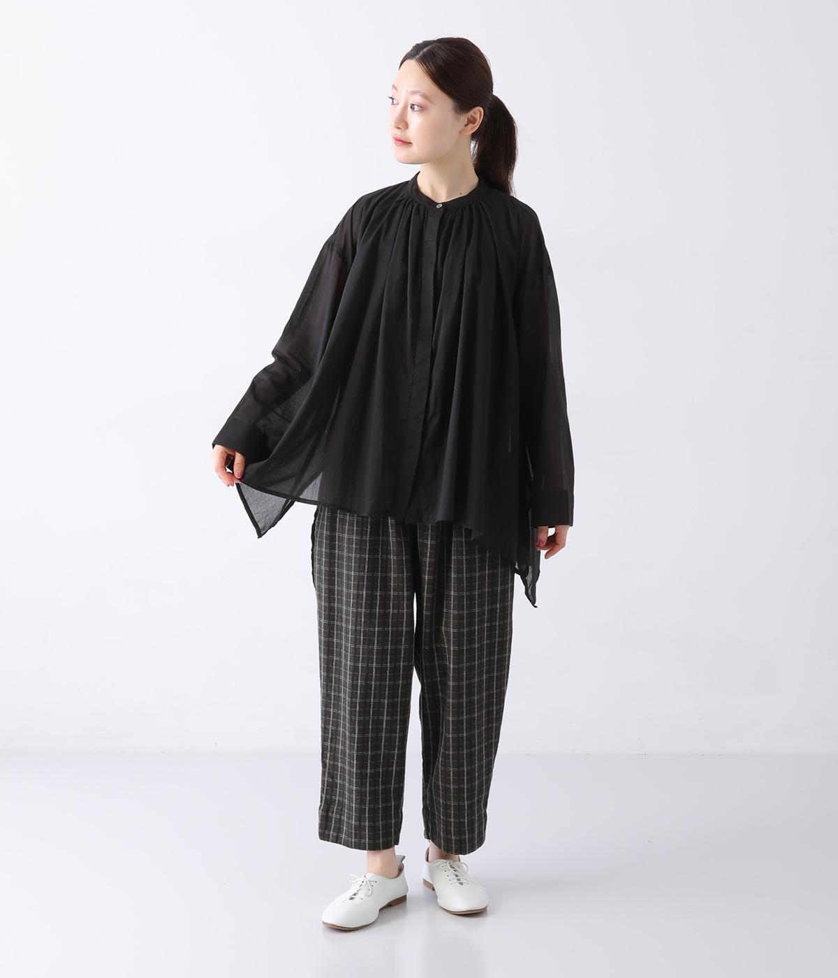 環境にやさしいオーガニックコットンを使用したボイル生地。やわらかな心地よい肌触りと通気性のよさが特徴です。ほんのりと透け感があり、ボリュームシルエットも軽やかに見せてくれます。