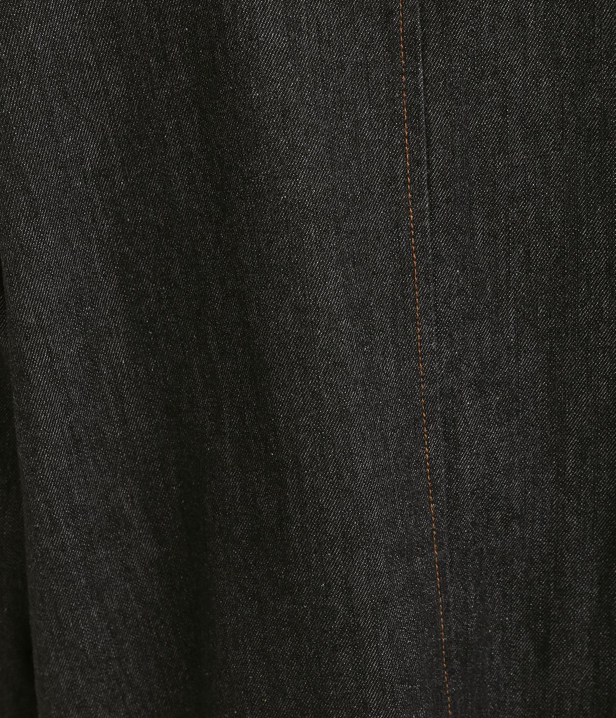 ほどよい肉感がありながらもやわらかな風合いを持ち、着心地にこだわったデニム生地を使用しています。着込むほどになじんでいき、風合いや色合いの変化をたのしめるのも魅力です。
