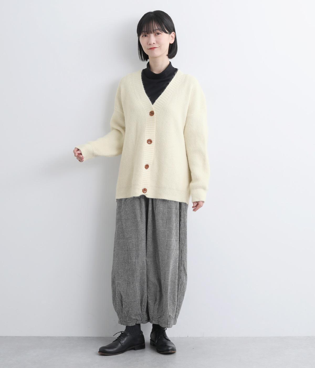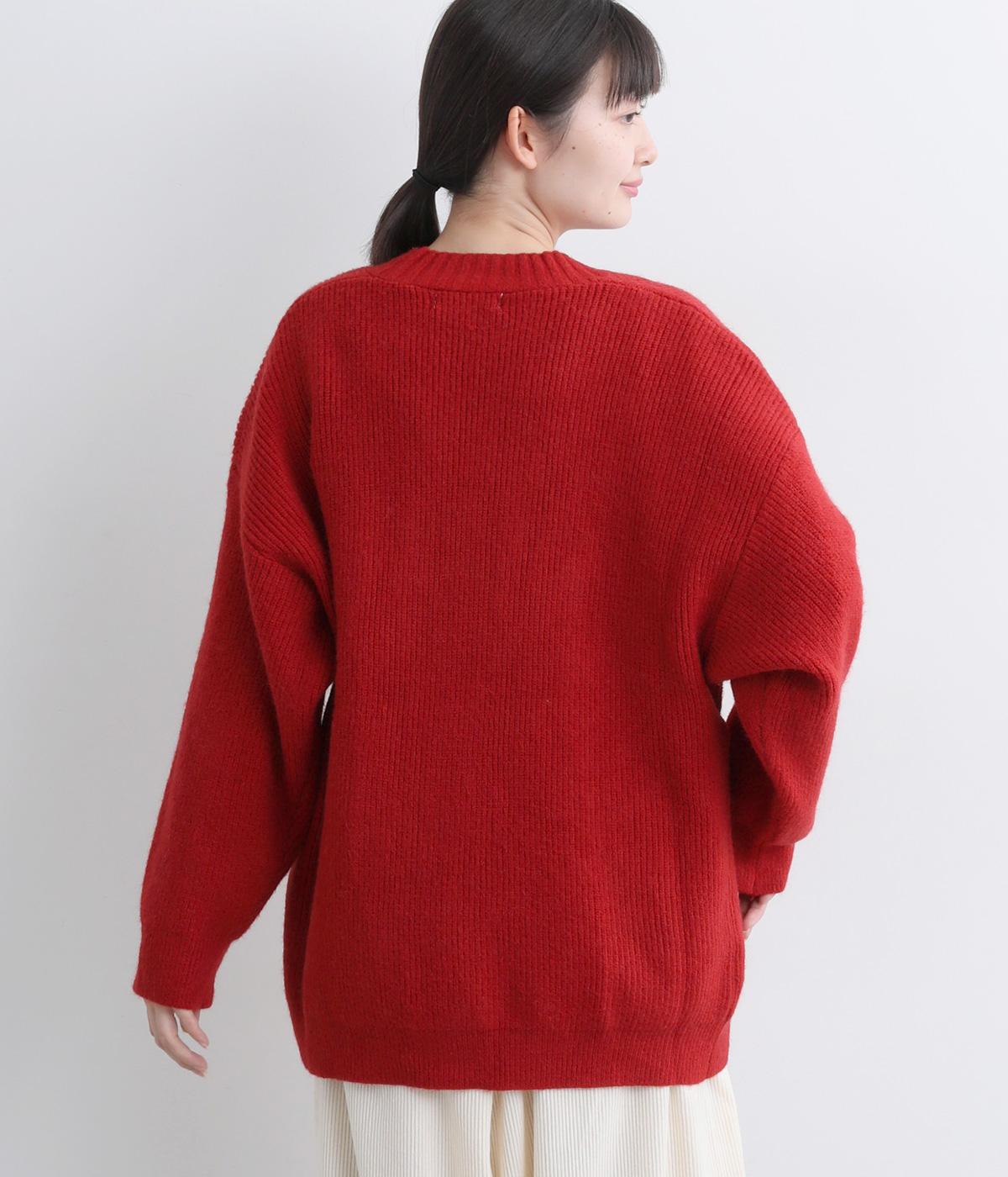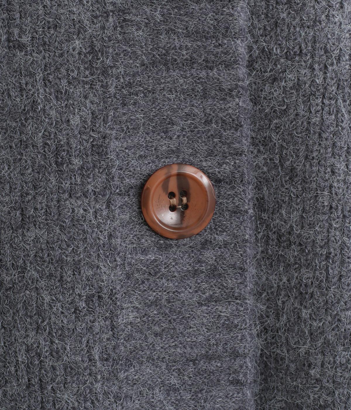 ゆったりとしたシルエットに、太めのリブがアクセントを添えるオーバーカーディガンです。フロントの大きめボタンが存在感を放ち、ナチュラルな印象に仕上げています。首元をすっきりと見せる深めのVネックと、ヒップラインを覆う丈感で、どんな服ともバランスよくレイヤードできる、万能アイテムです。