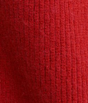 ふんわりと空気をふくんだようなやわらかい風合いのニット素材です。ソフトな肌触りでチクチクしにくく、軽やかな着心地です。ほどよく肉厚で、やさしい起毛感が見た目にもあたたかみを添えます。