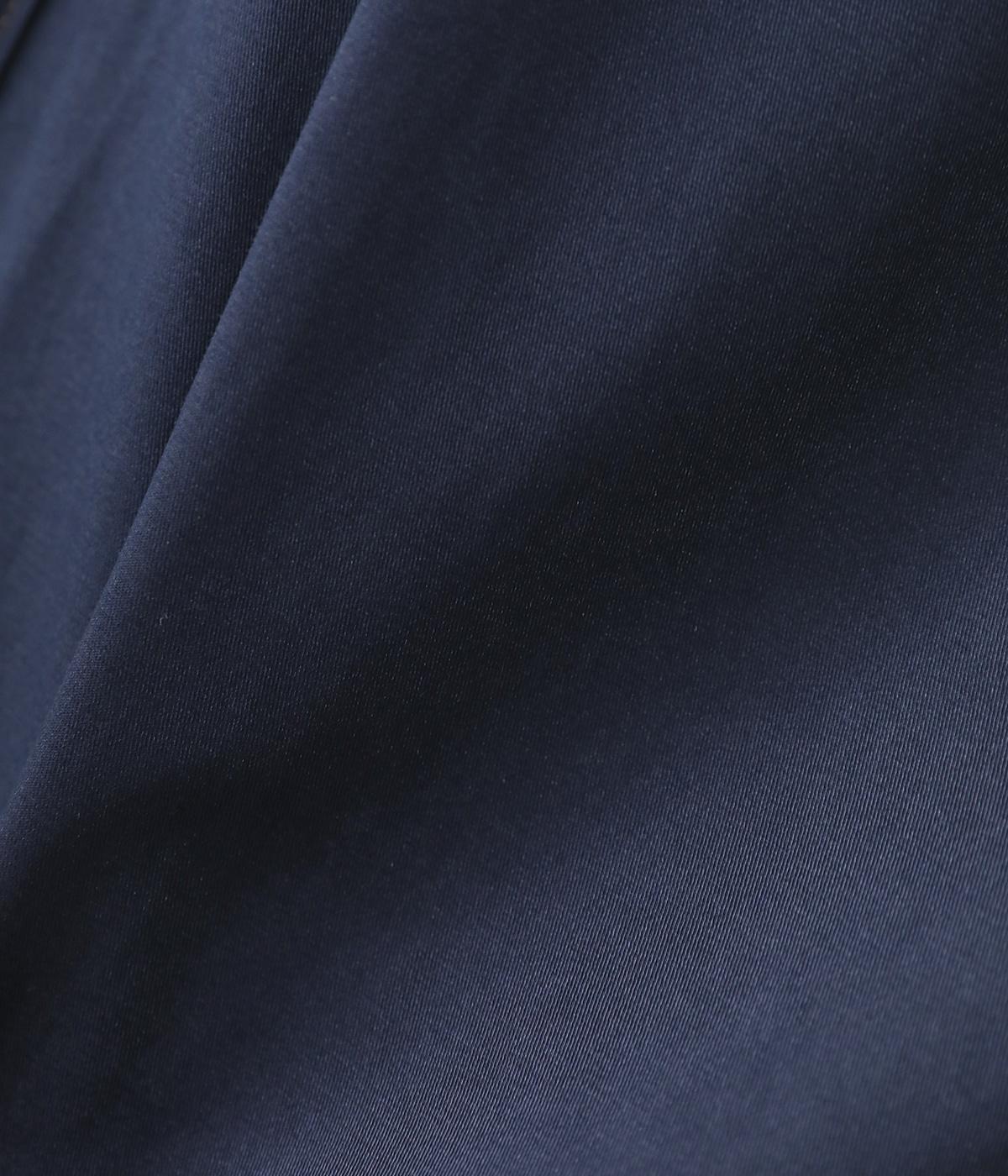 冬まで着用できるしっかりとした厚みのあるポリエステルコットンツイル素材で仕立てています。トレンチコートを思わせる上品な表面感で、カジュアルすぎないのが魅力です。