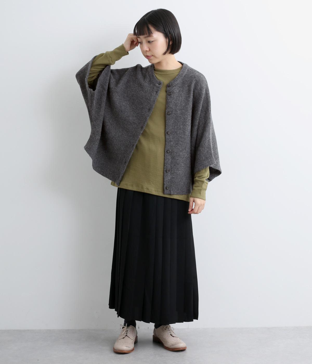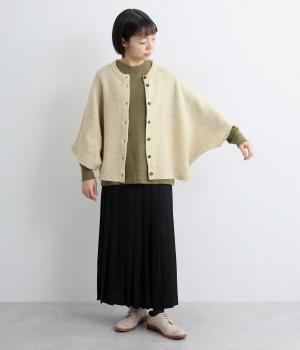 見た目も着心地もリラクシーなドルマンスリーブのカーディガン。動くたびに生地もふんわりと揺れ、女性らしさを惹きたてます。ガーター編みのシンプルな編地が、肩ひじ張らないナチュラルな印象を演出。手首の覗く短めの袖丈で抜け感をプラスしました。