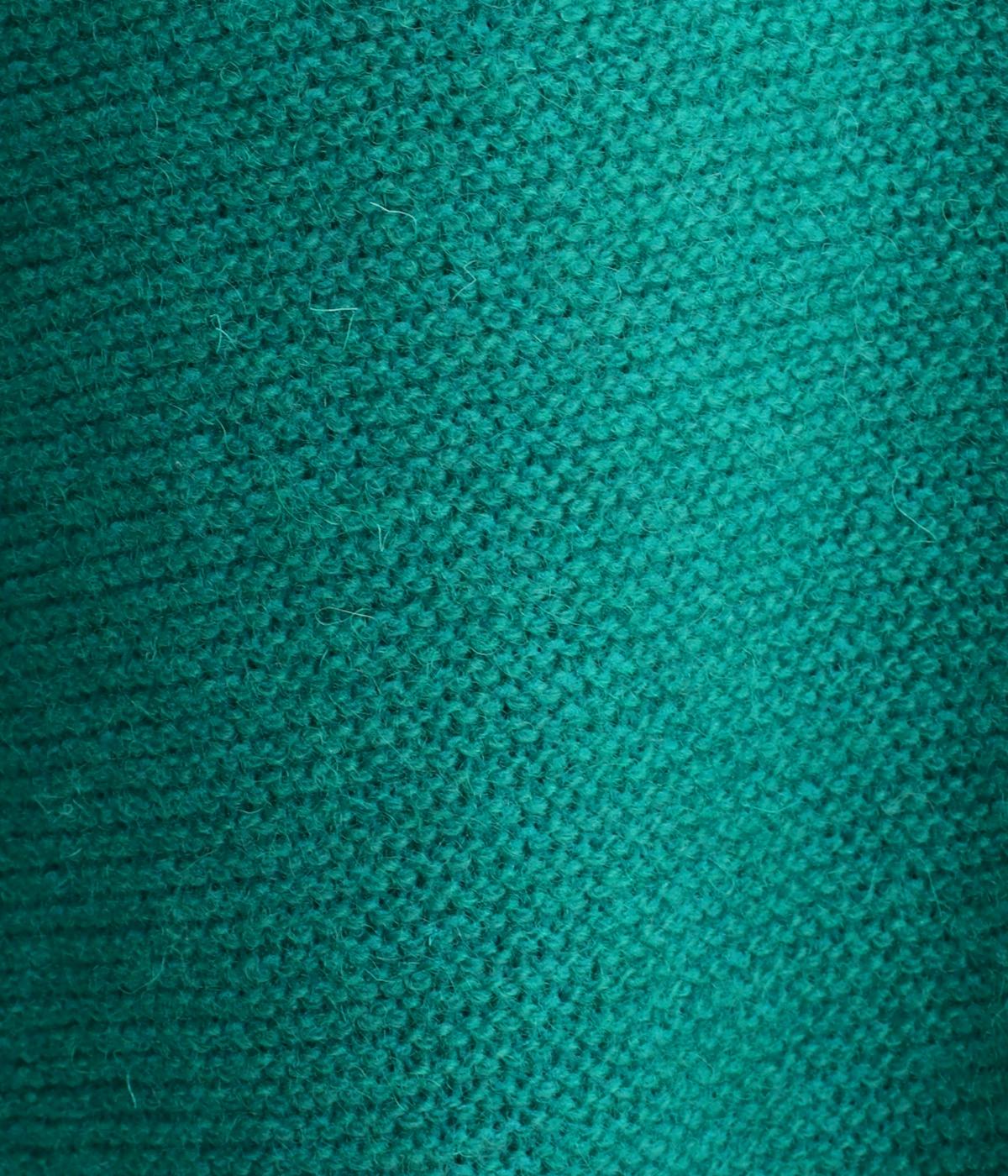 細めの糸でふっくらと編み上げた軽くやわらかなニット生地。ウールをメインにブレンドした糸を使っているので、厚みをおさえながらも保温性が高いのが魅力です。