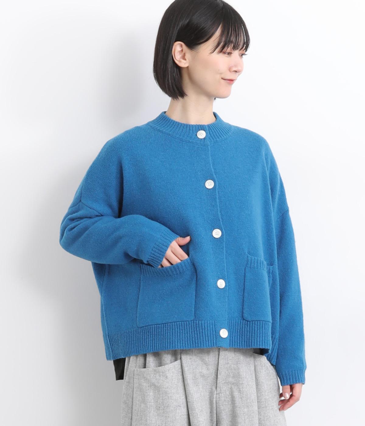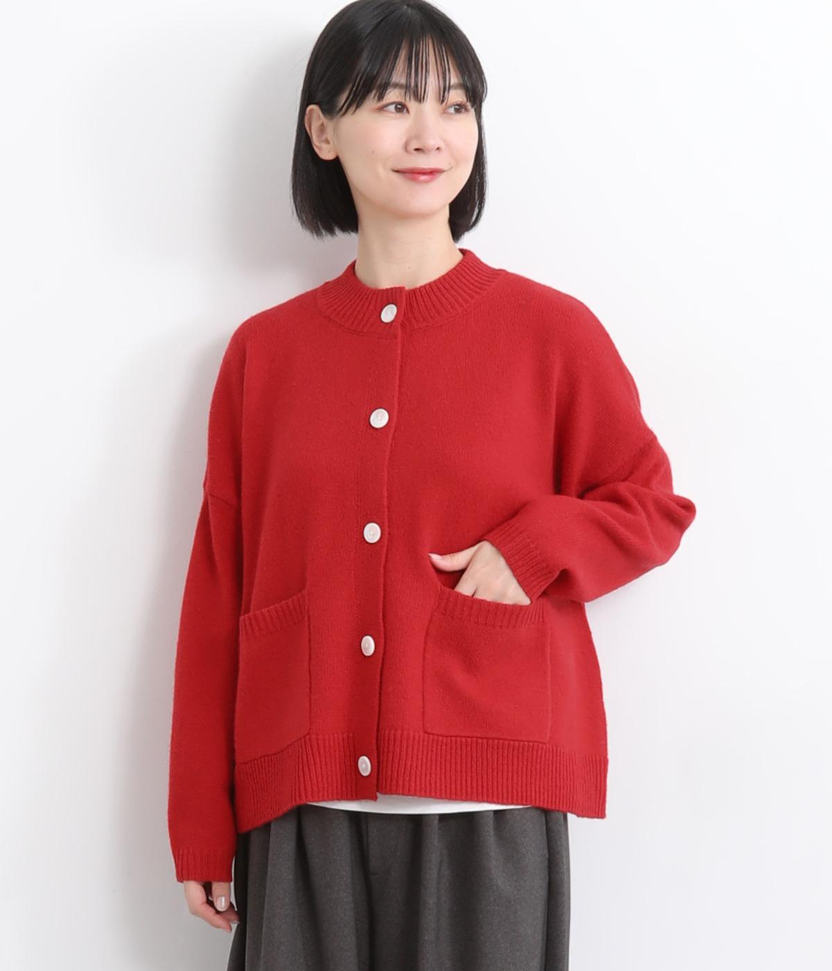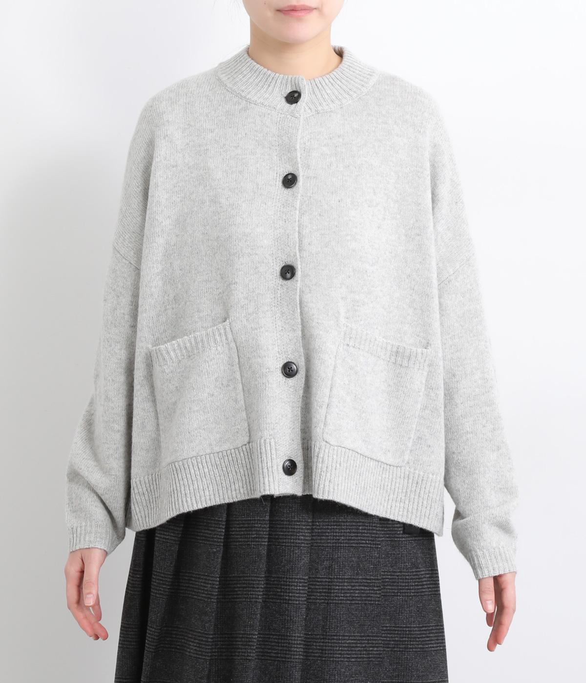大きめのパッチポケットがアクセントのカーディガンです。全体的にふんわりとしたシルエットが女性らしさを醸し、ボタンとのコントラストがカジュアル感を添えています。さまざまなボトムスと好相性でバランスよくまとまります。