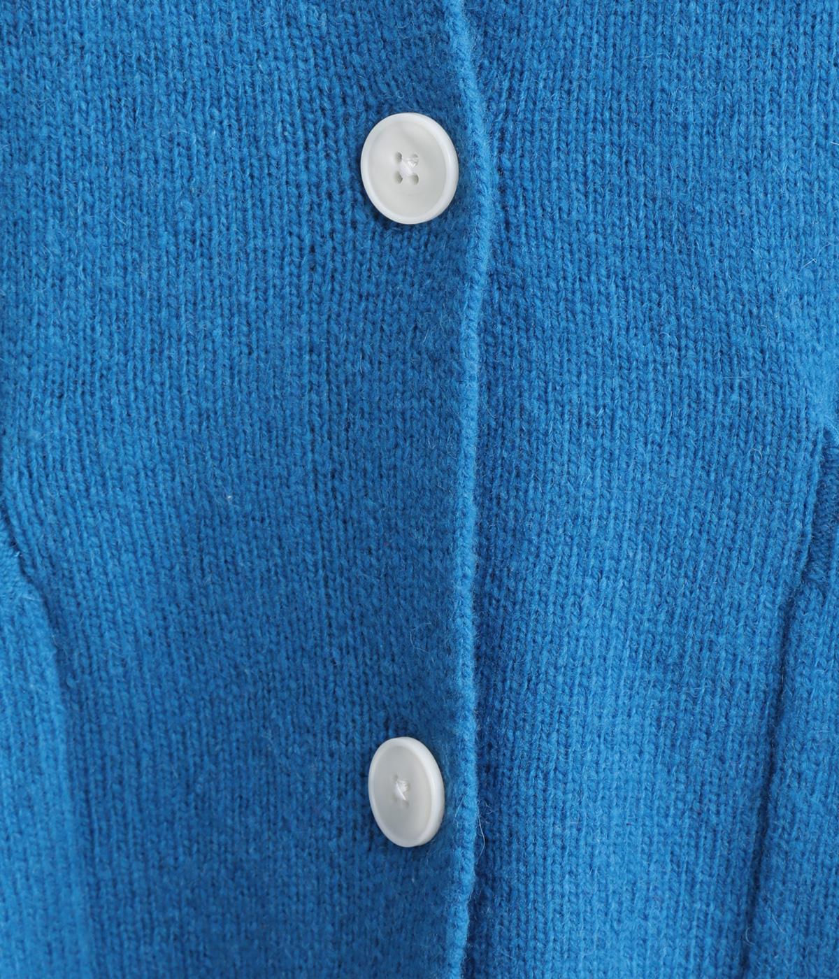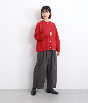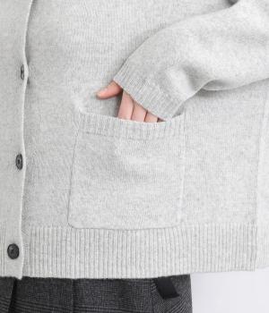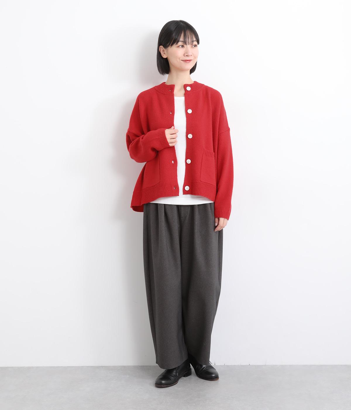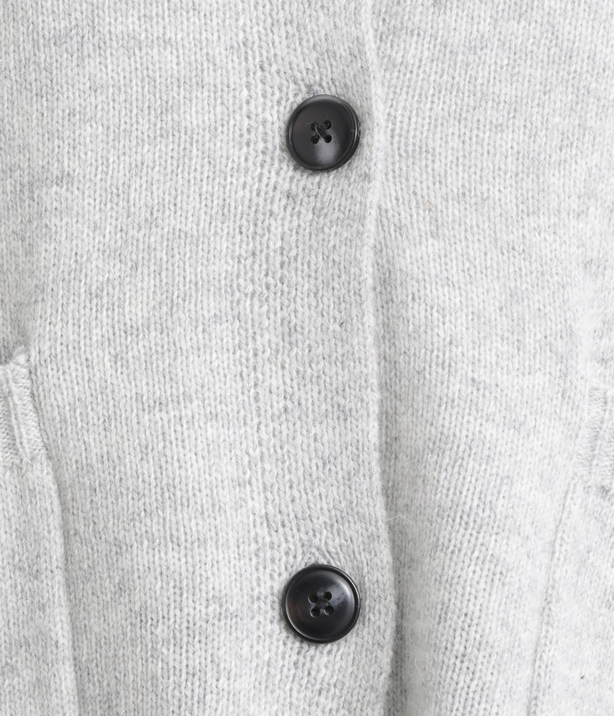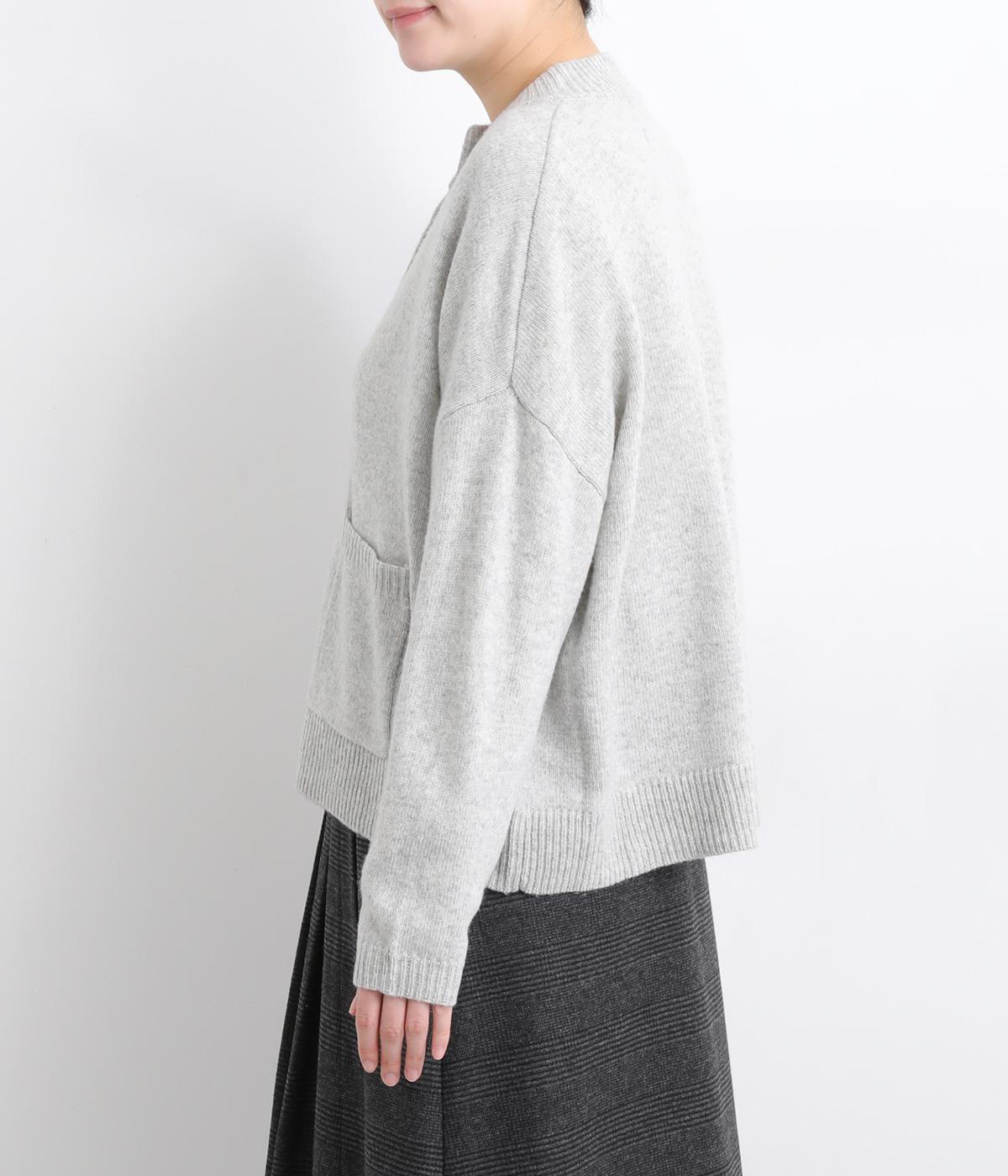 大きめのパッチポケットがアクセントのカーディガンです。全体的にふんわりとしたシルエットが女性らしさを醸し、ボタンとのコントラストがカジュアル感を添えています。さまざまなボトムスと好相性でバランスよくまとまります。
