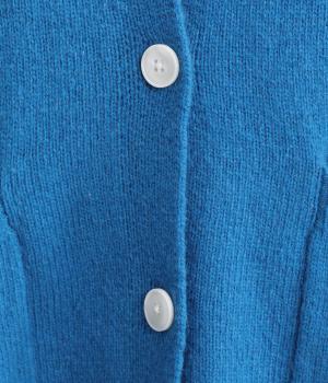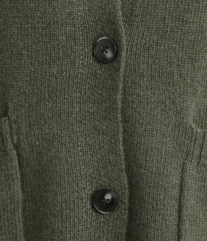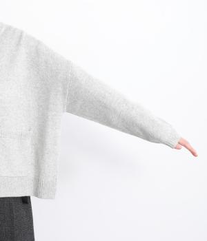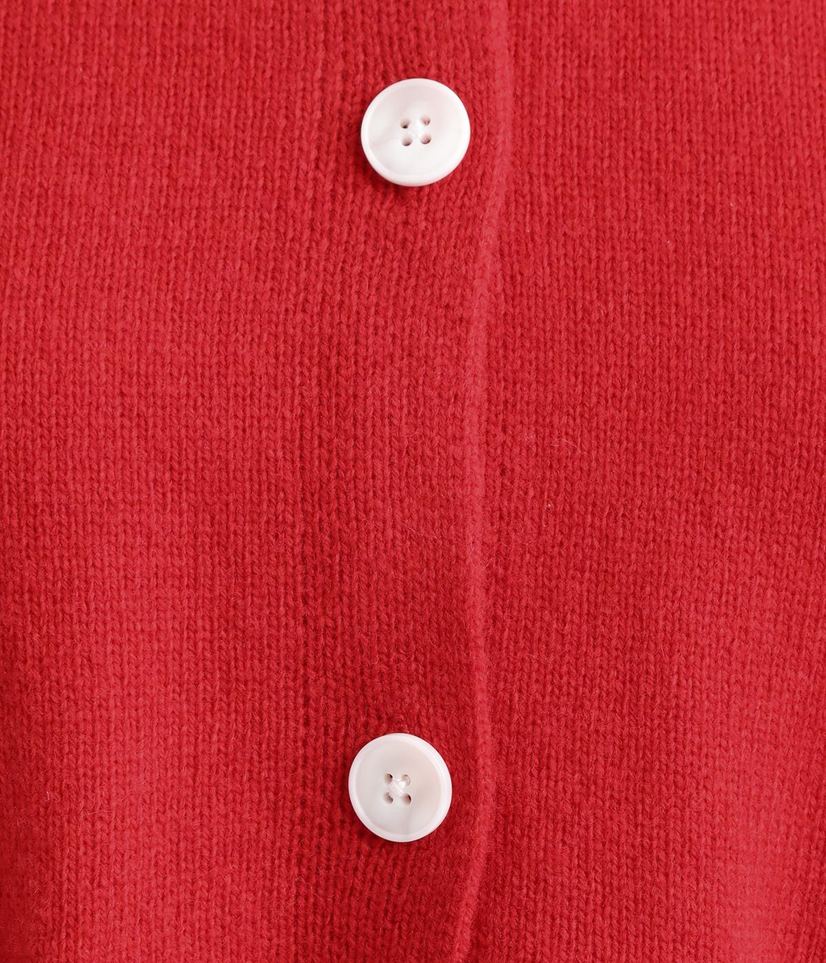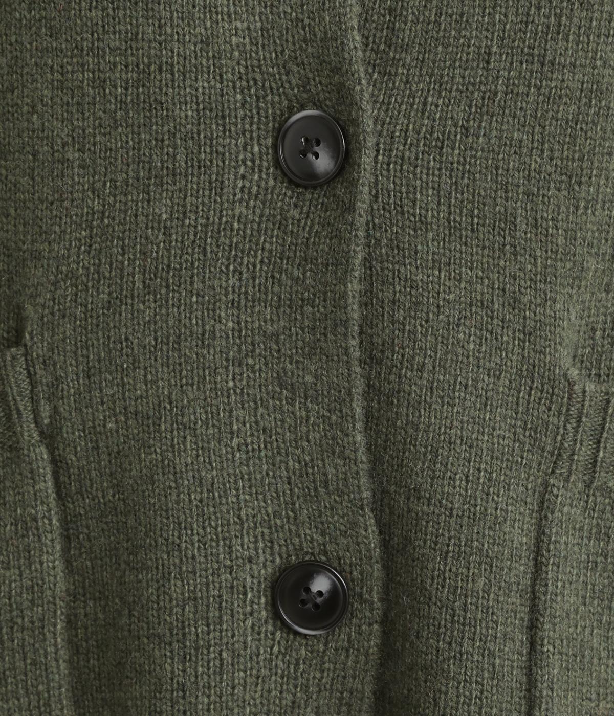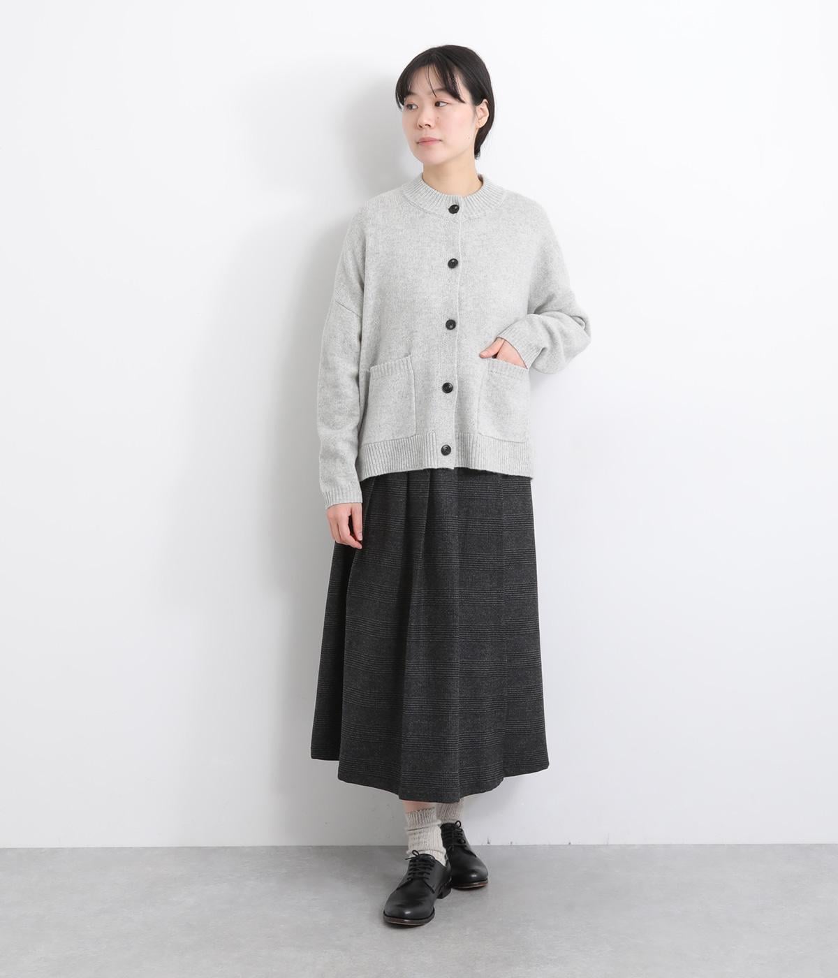 大きめのパッチポケットがアクセントのカーディガンです。全体的にふんわりとしたシルエットが女性らしさを醸し、ボタンとのコントラストがカジュアル感を添えています。さまざまなボトムスと好相性でバランスよくまとまります。