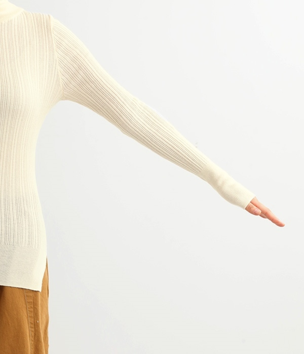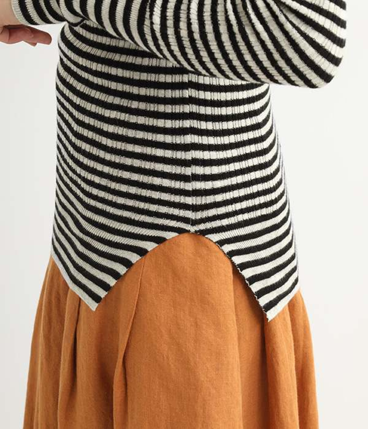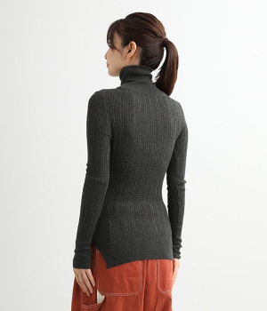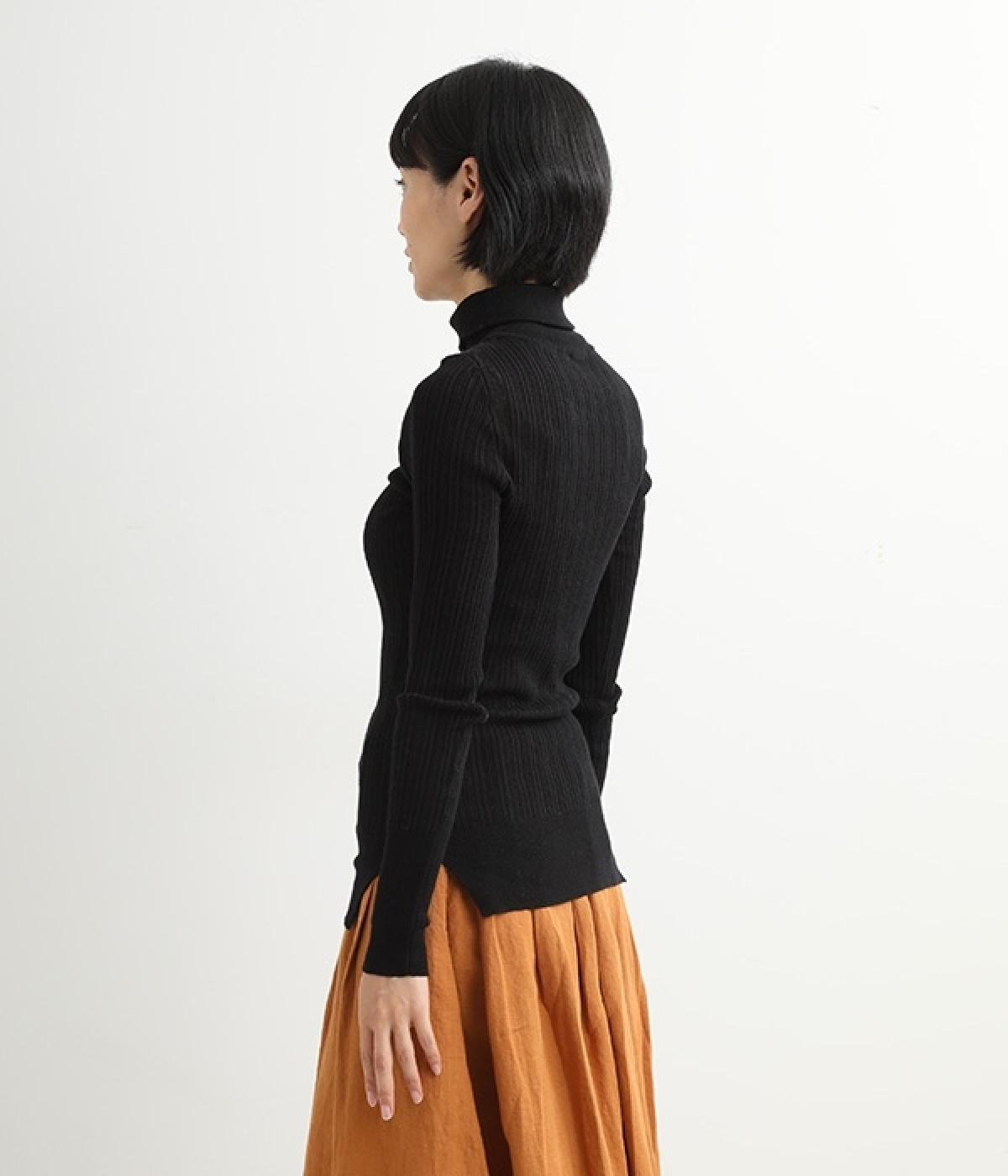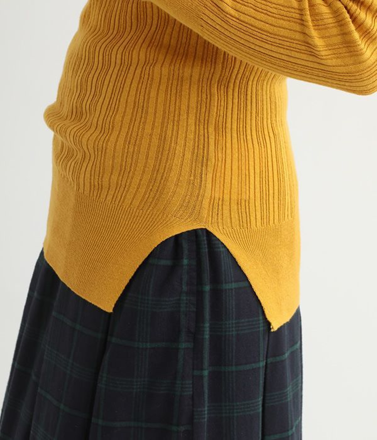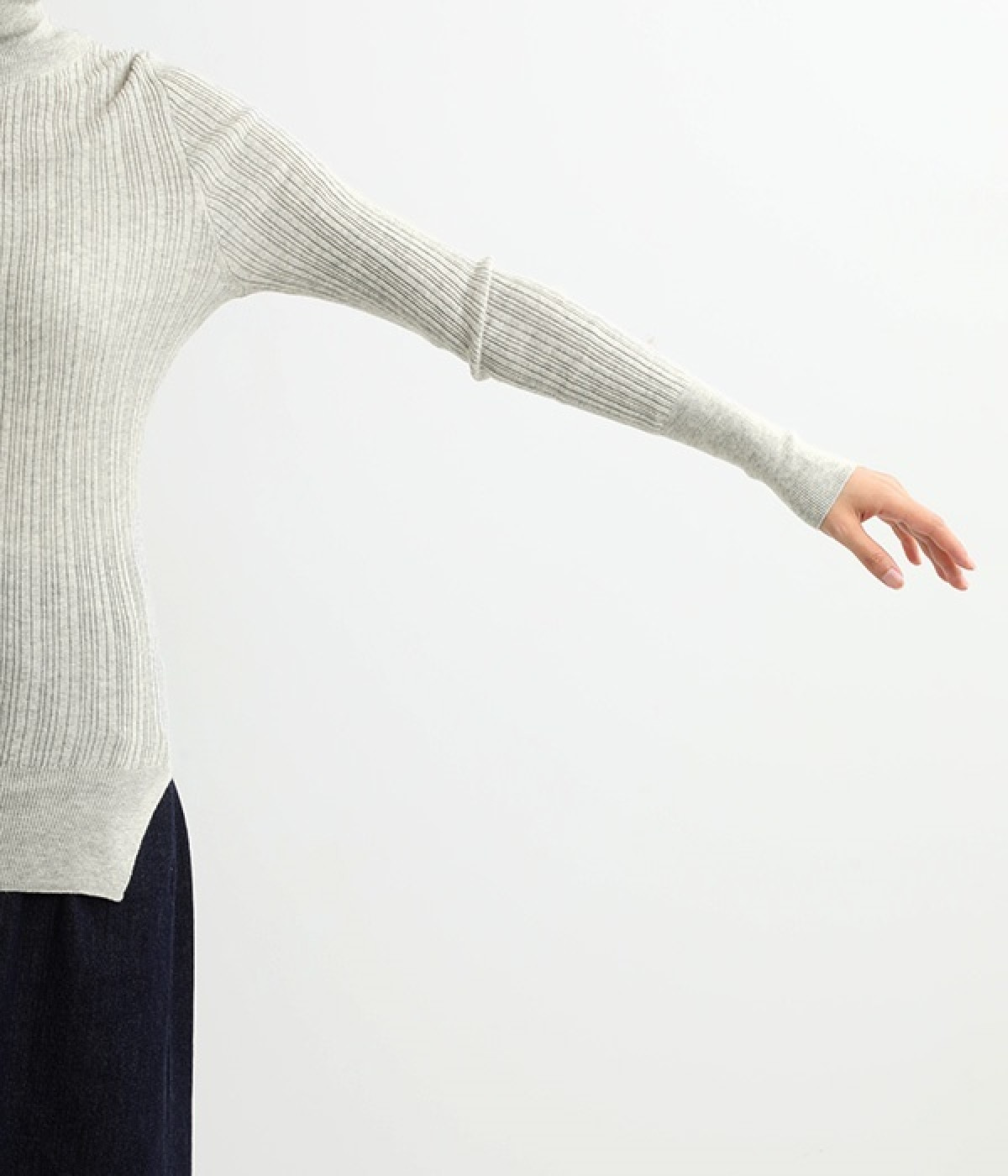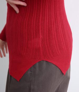 長めの袖と丈感で、一枚で着るのはもちろん、重ね着のインナーにも重宝します。首元や袖から差し色としてのぞかせるのにぴったりです。裾のスリットが動きやすさを出してくれ、心地よく着られます。