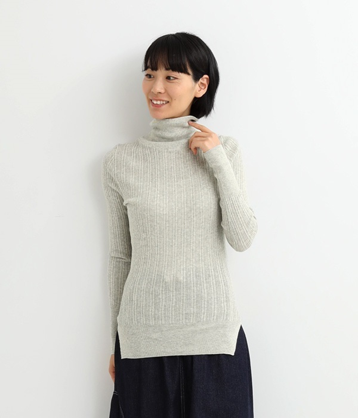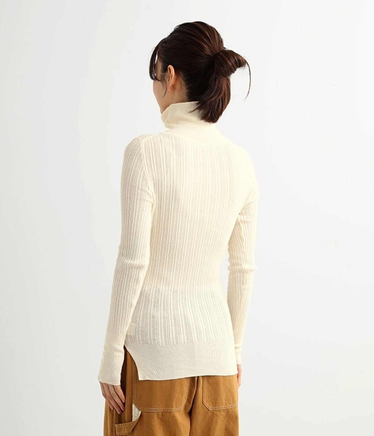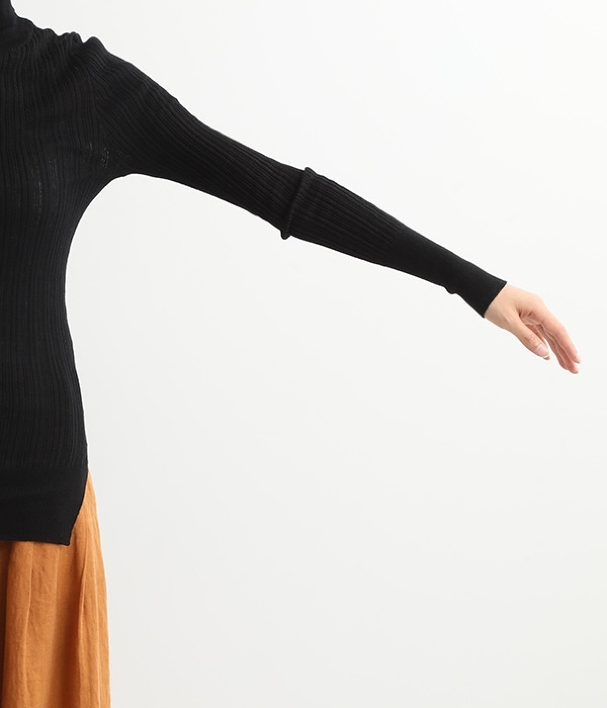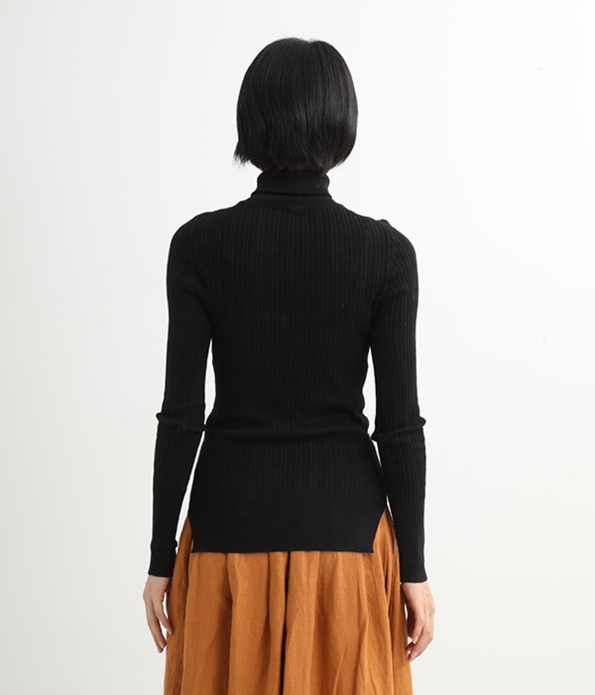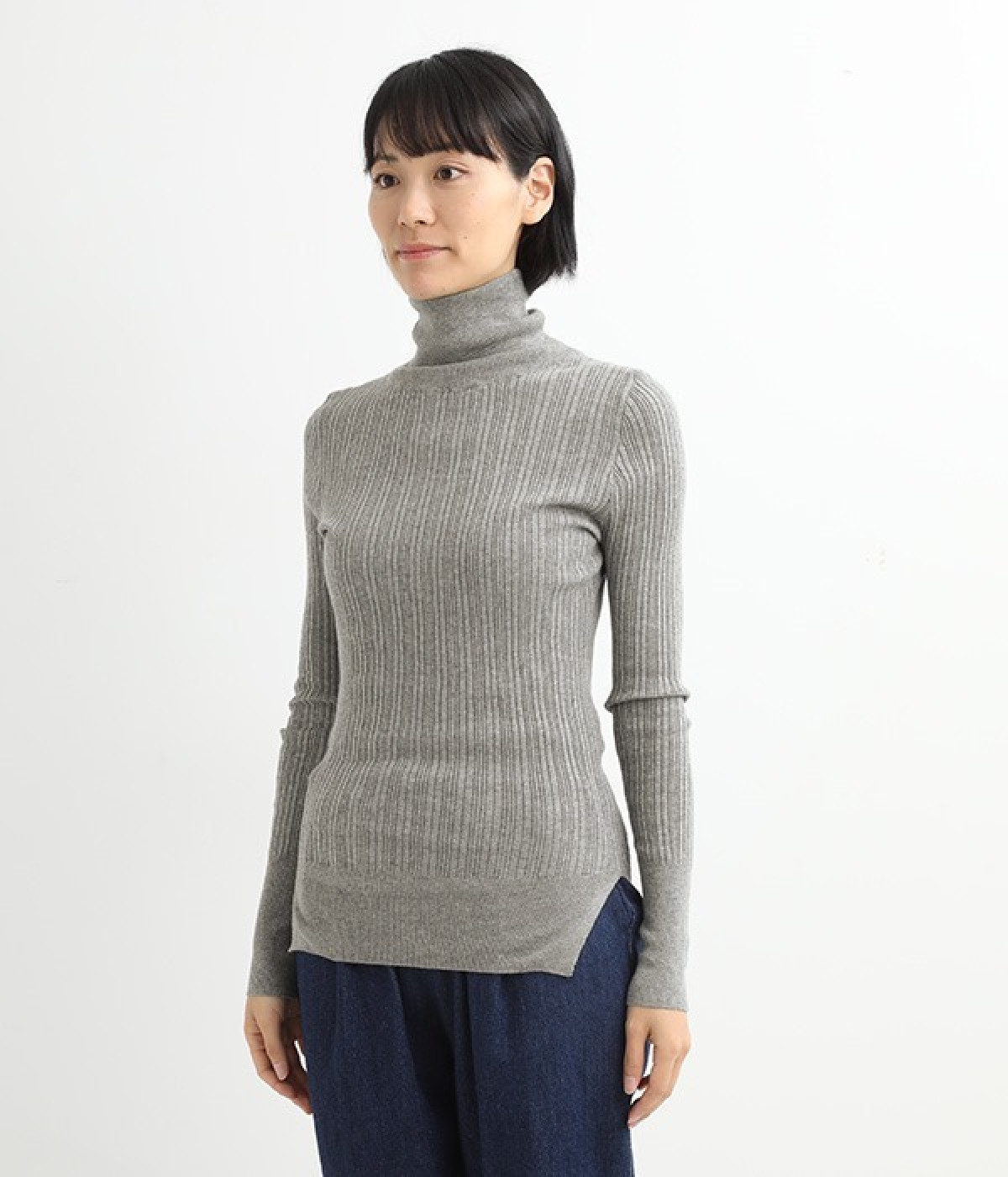 長めの袖と丈感で、一枚で着るのはもちろん、重ね着のインナーにも重宝します。首元や袖から差し色としてのぞかせるのにぴったりです。裾のスリットが動きやすさを出してくれ、心地よく着られます。