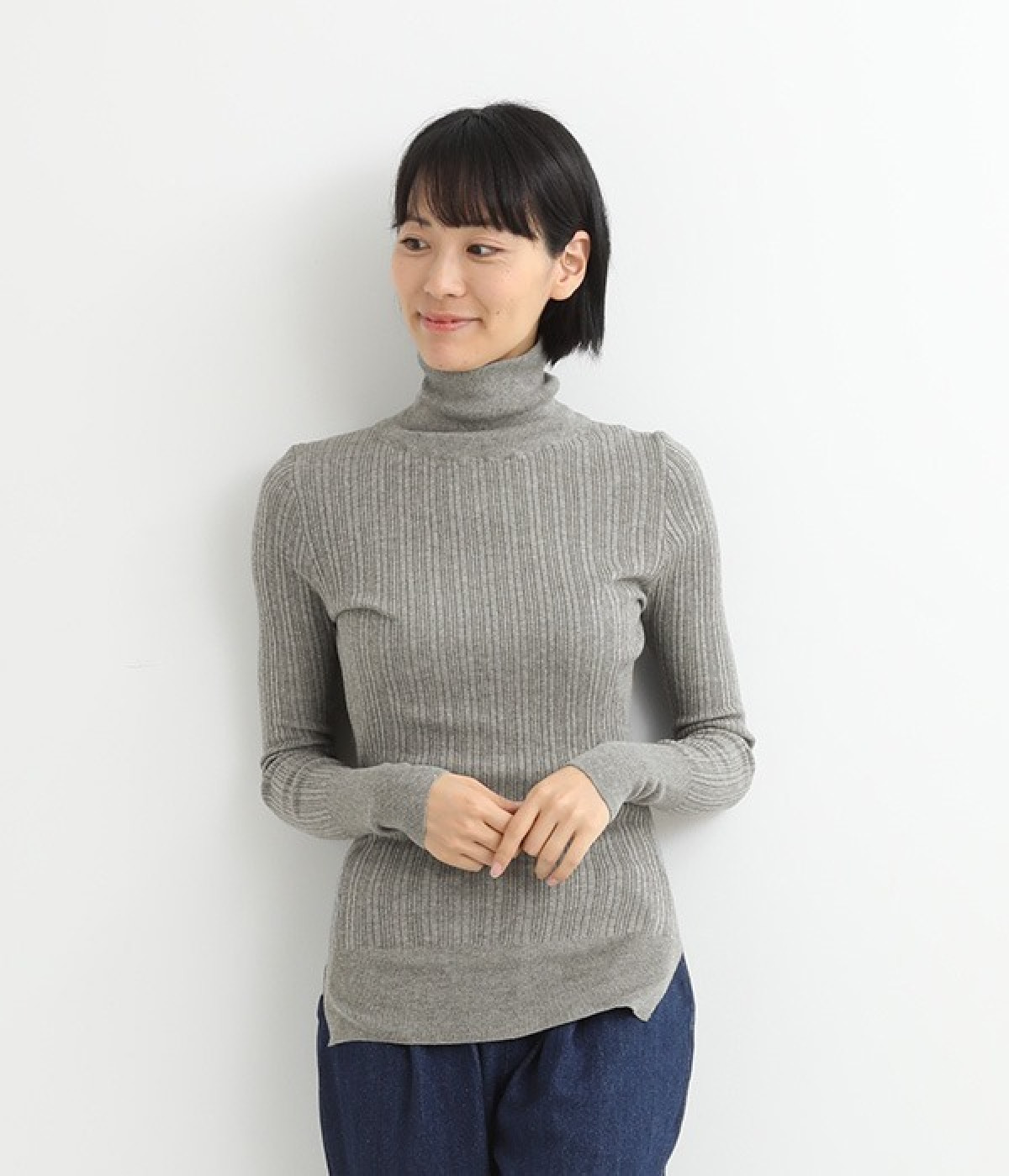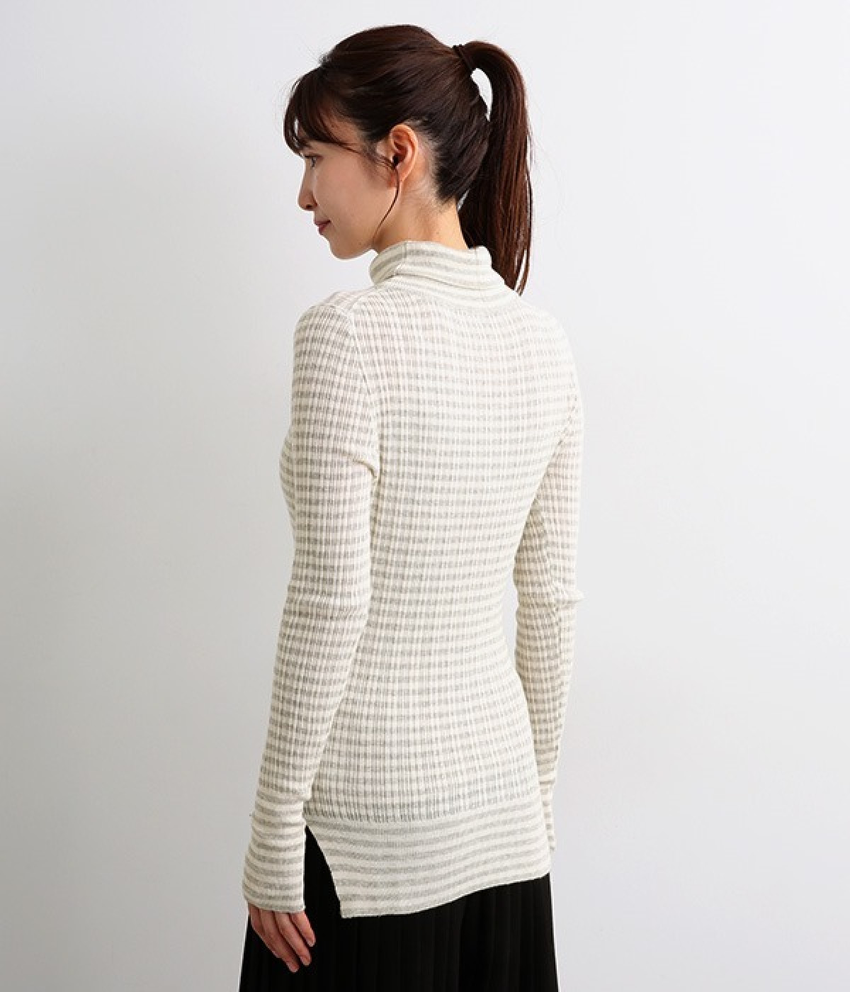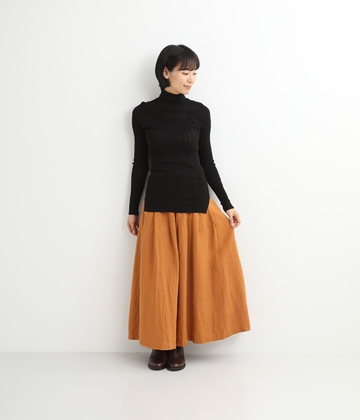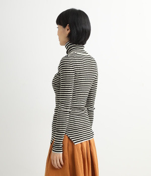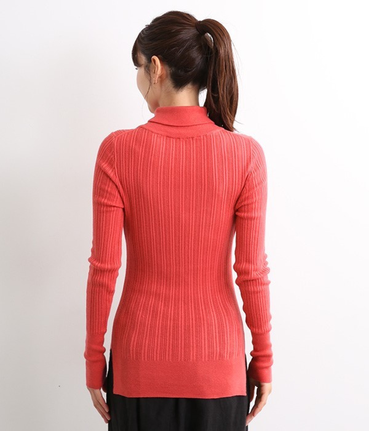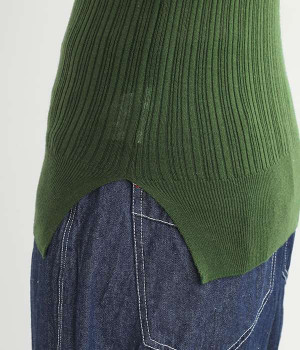 長めの袖と丈感で、一枚で着るのはもちろん、重ね着のインナーにも重宝します。首元や袖から差し色としてのぞかせるのにぴったりです。裾のスリットが動きやすさを出してくれ、心地よく着られます。